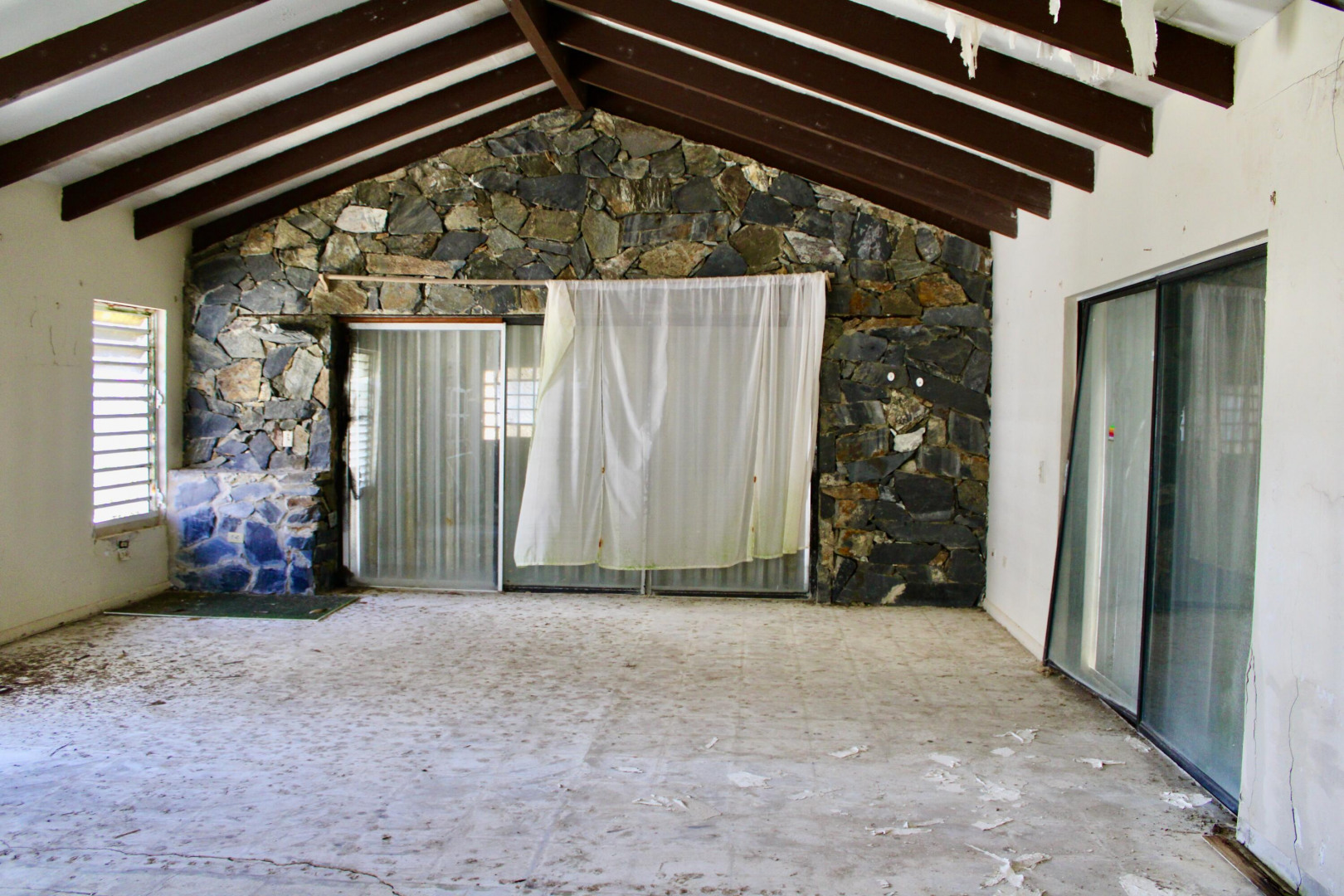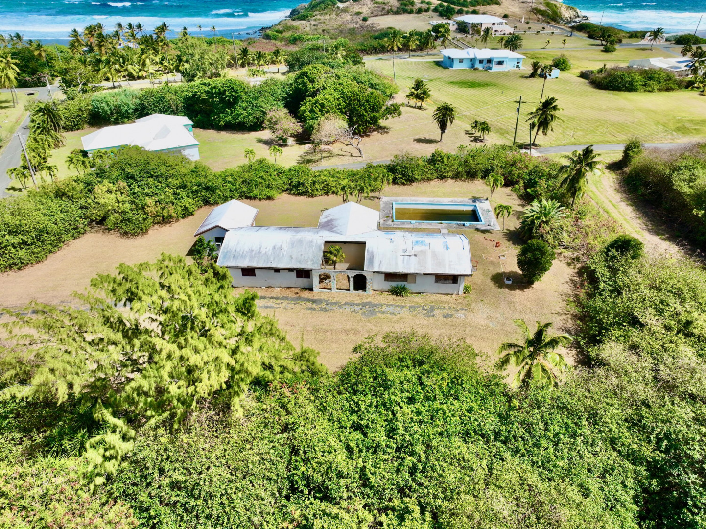 Calling all contractors! Huge 4 bedroom/3 bath home on an acre in Judith's Fancy- St Croix's premier gated beachfront neighborhood. The immense footprint includes a pool surrounded by a large flat yard- perfect for frolicking. Interior feature walls w/ wonderful stonework add character & charm. Bedrooms are nicely spaced out, creating private enclaves throughout the house. Vaulted ceilings w/thick support beams provide structural support & beauty. Do the work and own an amazing property. The fresh breeze and the sound of the sea are included! This property was once home to Audre Lorde, the renowned poet. SOLD AS IS.