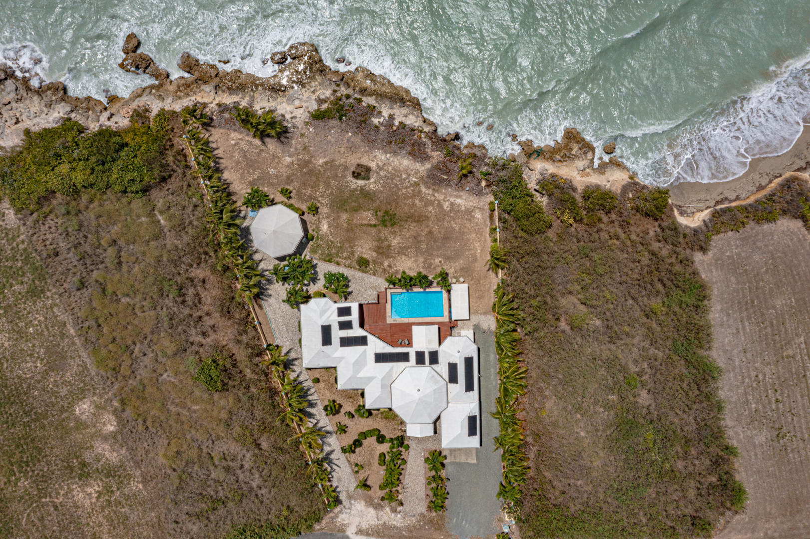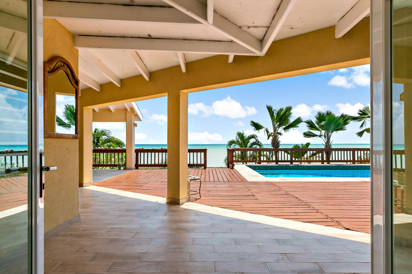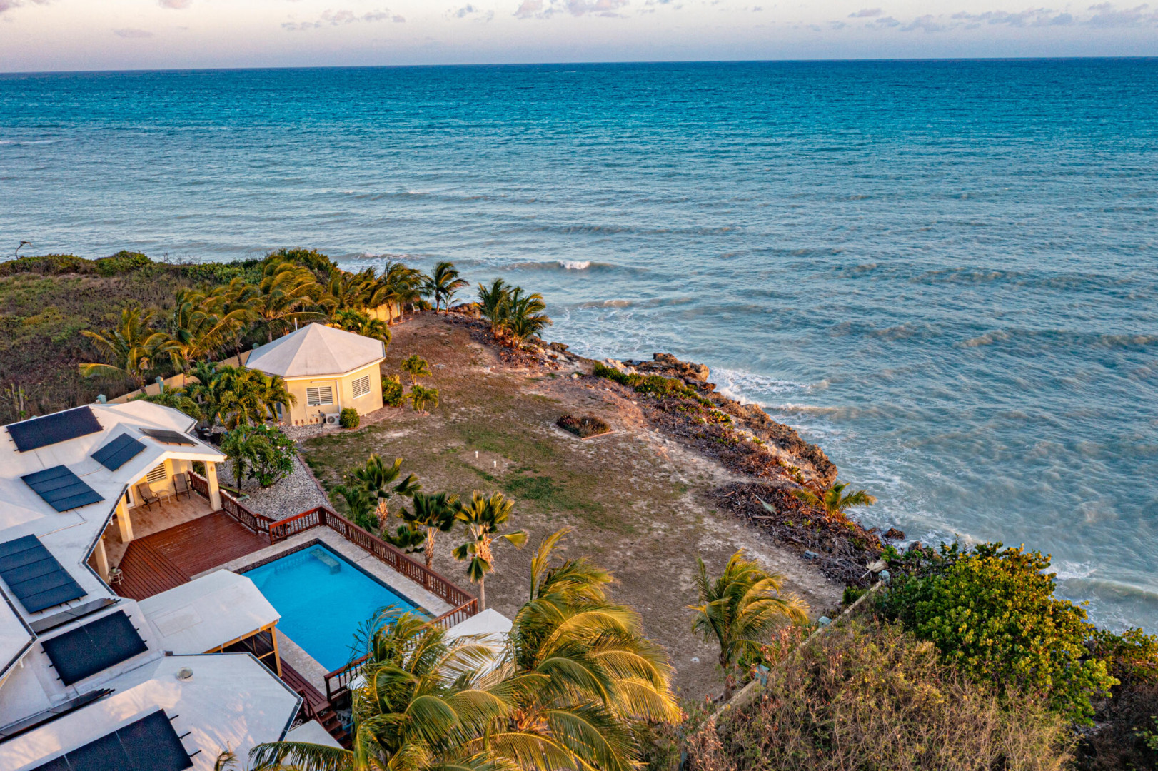 Stunning custom-built waterfront island retreat with pool and solar power, walking distance to two other beaches in the gated neighbourhood that is 2 minutes from the airport. Top rated vacation rental when not lived in by owners. 3 bed, 3.5 bath fully furnished main house and octagon shaped studio cottage just steps from the Caribbean Sea. Carport, two separate palm tree lined driveways, large deck with screened in cabana, formal entrance, impact windows,outdoor shower, and custom tiled pads for dive gear maintenance. All the bedrooms open to pool and deck separately and have ocean views. This allows for tons of privacy for guests and family alike. Each bedroom has ensuite bathrooms. The octagon shaped living room is spacious and provides respite from the sun.Manicured yard lined to the east and west with a graduating 15 pillar concrete wall. Expansive deck with shaded areas when you had enough sun....and loads of room for chaise loungers to soak up the sun. Every room in the house and the cottage has vaulted ceilings. The octagon shaped cottage is completely private with its own driveway, entrance, laundry and kitchen. 30 solar panels and 2 Tesla batteries. An awe-inspiring feature of this amazing residence is seeing turtles swimming in the ocean paradise they call home.