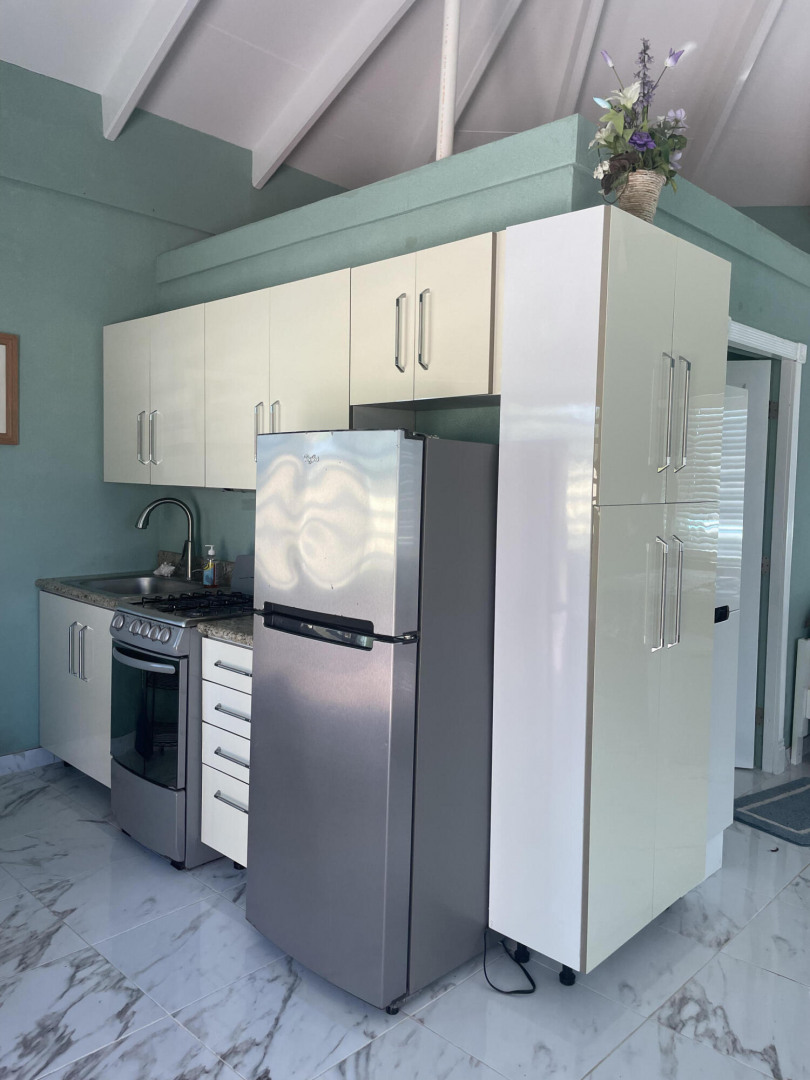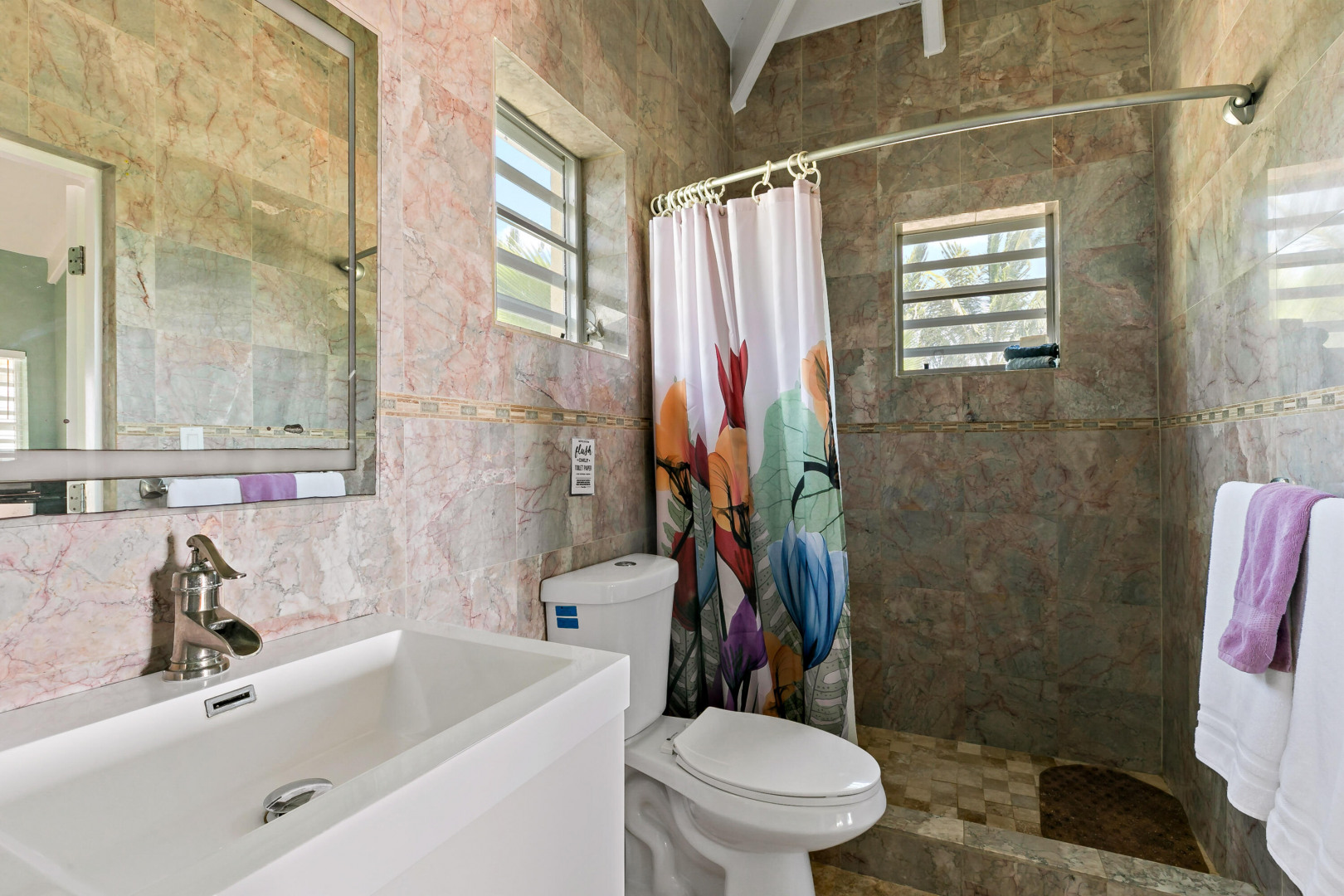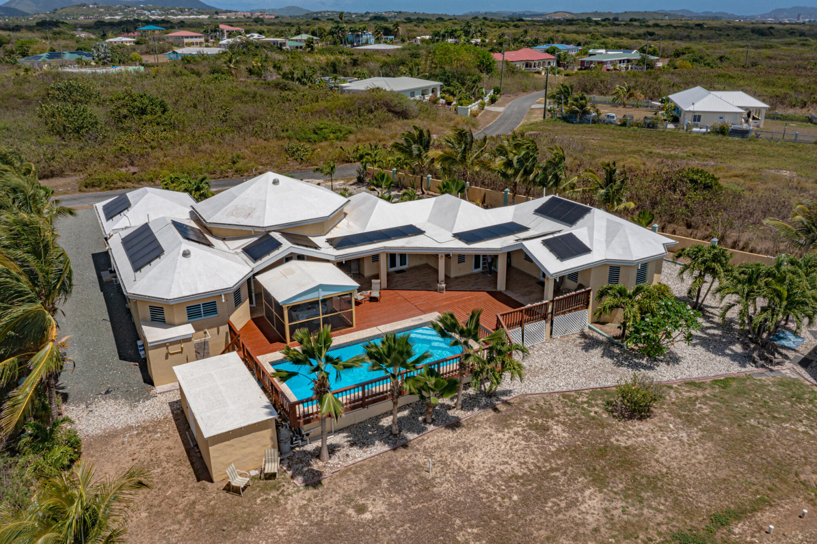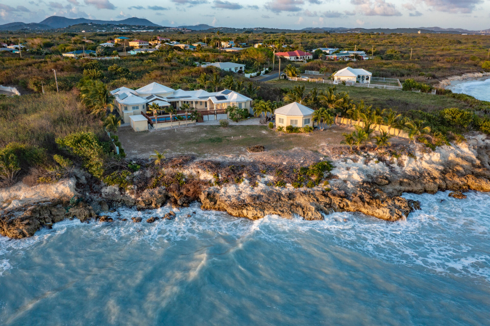 Stunning custom-built waterfront island retreat with pool and solar power, walking distance to two other beaches in the gated neighbourhood that is 2 minutes from the airport. Top rated vacation rental when not lived in by owners. 3 bed, 3.5 bath fully furnished main house and octagon shaped studio cottage just steps from the Caribbean Sea. Carport, two separate palm tree lined driveways, large deck with screened in cabana, formal entrance, impact windows,outdoor shower, and custom tiled pads for dive gear maintenance. All the bedrooms open to pool and deck separately and have ocean views. This allows for tons of privacy for guests and family alike. Each bedroom has ensuite bathrooms. The octagon shaped living room is spacious and provides respite from the sun.Manicured yard lined to the east and west with a graduating 15 pillar concrete wall. Expansive deck with shaded areas when you had enough sun....and loads of room for chaise loungers to soak up the sun. Every room in the house and the cottage has vaulted ceilings. The octagon shaped cottage is completely private with its own driveway, entrance, laundry and kitchen. 30 solar panels and 2 Tesla batteries. An awe-inspiring feature of this amazing residence is seeing turtles swimming in the ocean paradise they call home.