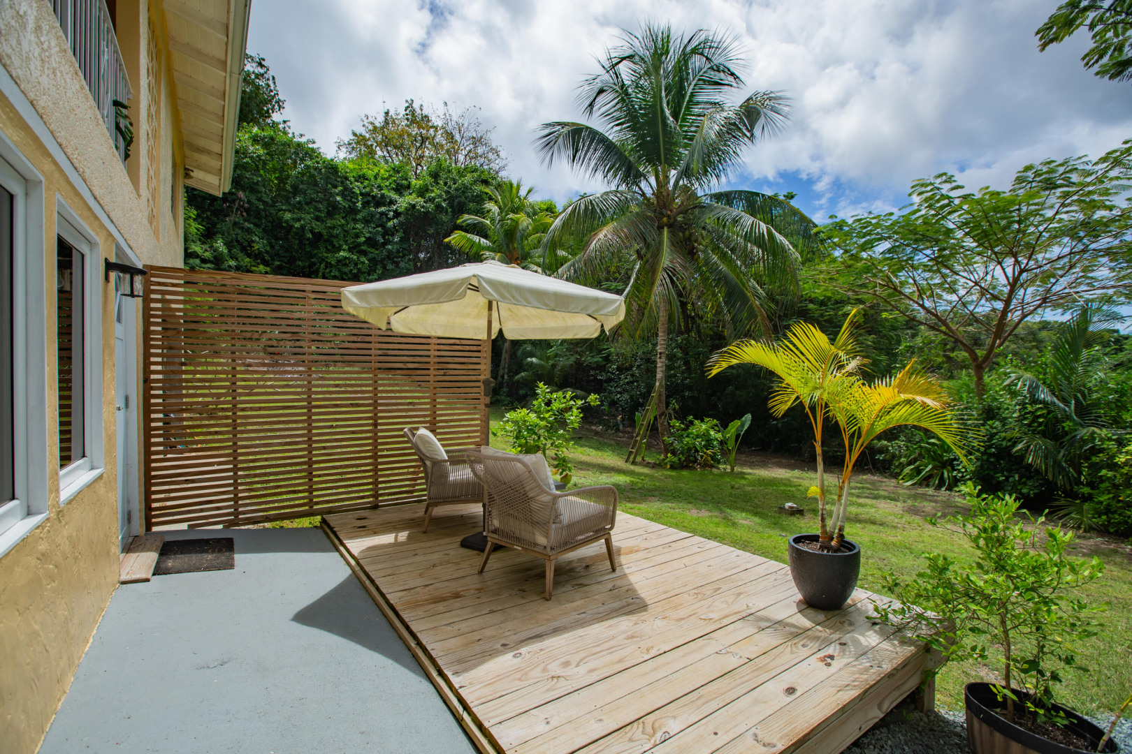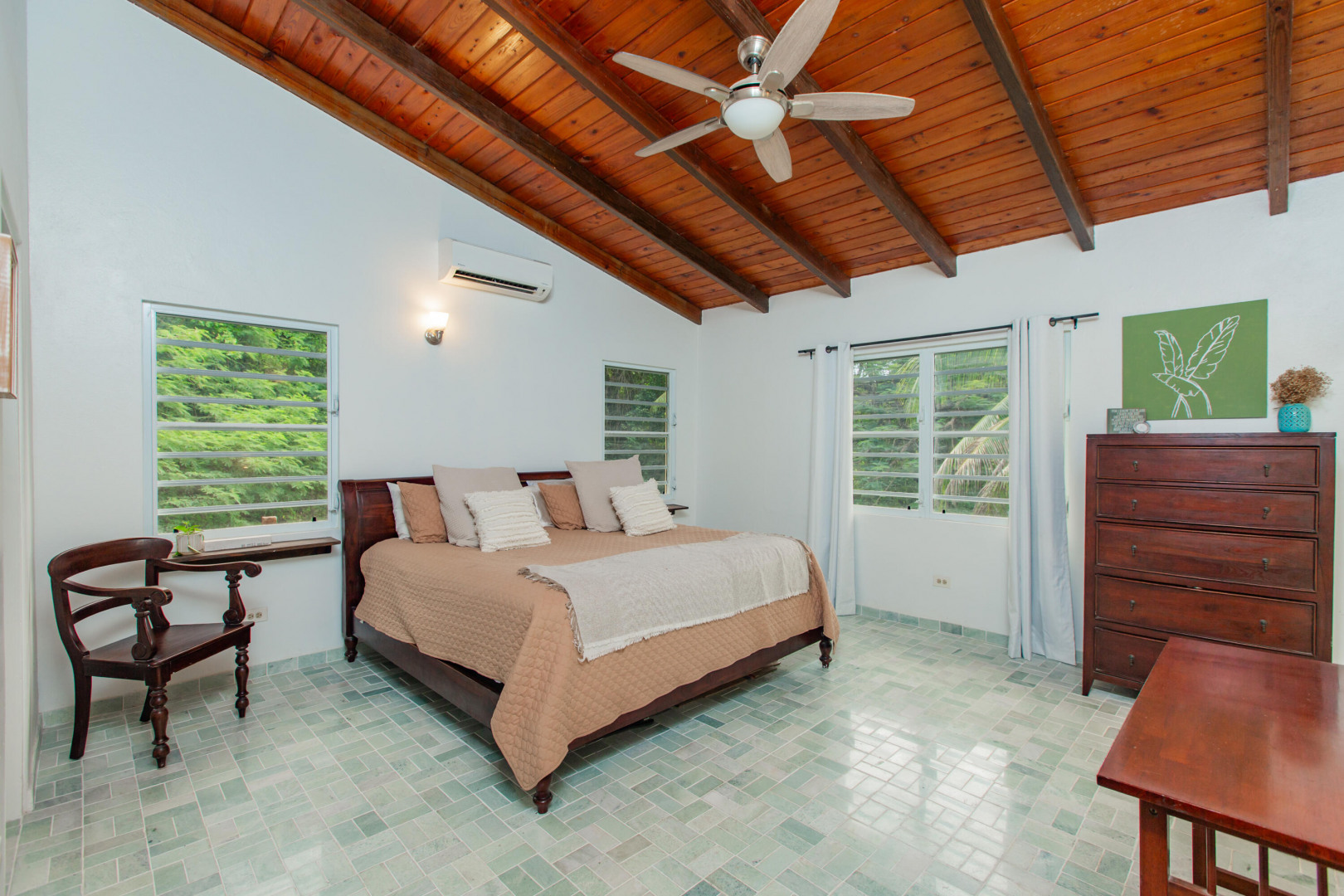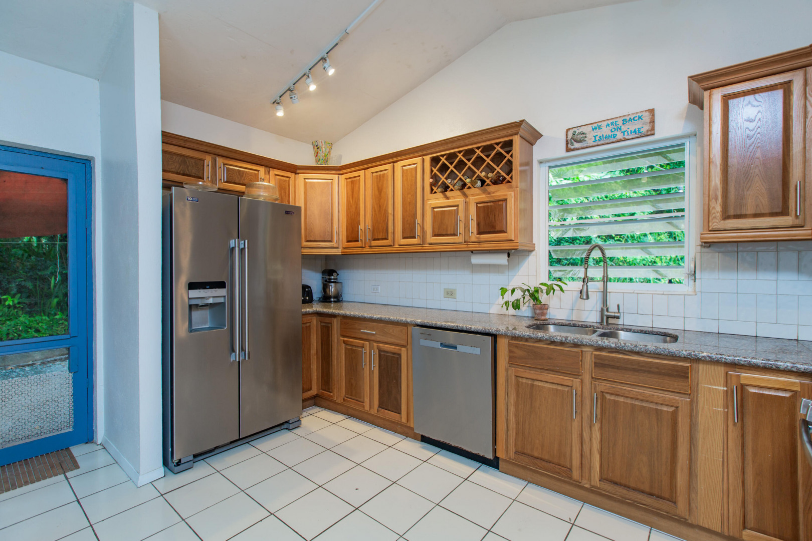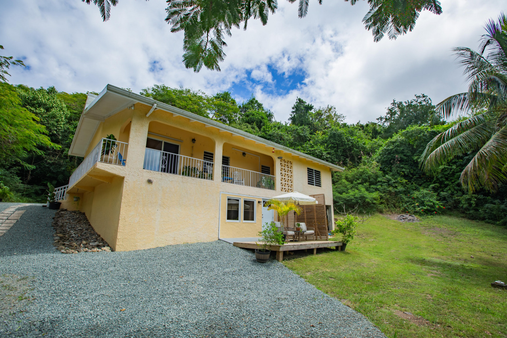 This mid-island oasis truly embodies island life! Tucked away in the hills of La Grande Princess you will find a beautifully updated 3 bedroom 2 bathroom concrete home with an adorable apartment below- nearly 2700 square feet of interior living space! Perfect for a family or make this a wonderful investment property. Gated and fenced, the home offers privacy with lush landscaping and conveniently located to nearby beaches and shopping. Beautiful vaulted ceilings and lovely natural light greet you as you enter. This spacious home is well appointed with AC in all bedrooms, updated appliances, whole house filtration and gorgeous bathroom updates. Most furnishings will convey. Updated sliders and windows can also be found.The kitchen features granite countertops, stainless appliances, plenty of space for entertaining, a large pantry and laundry room.