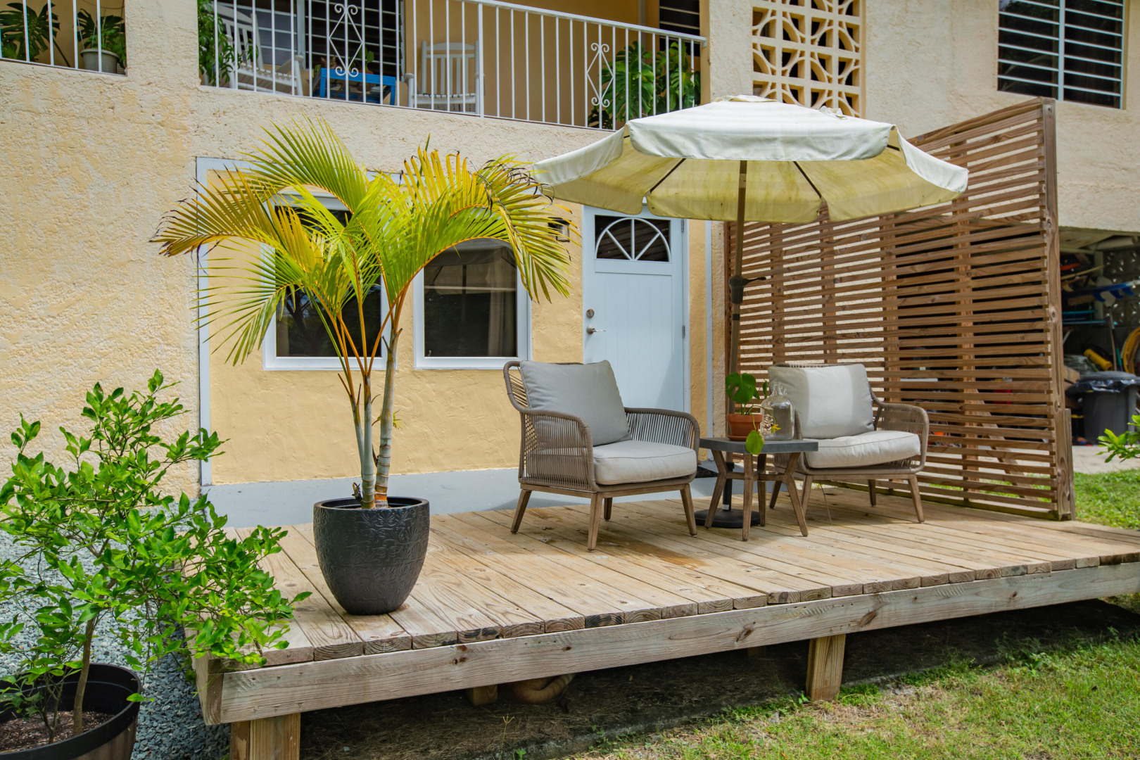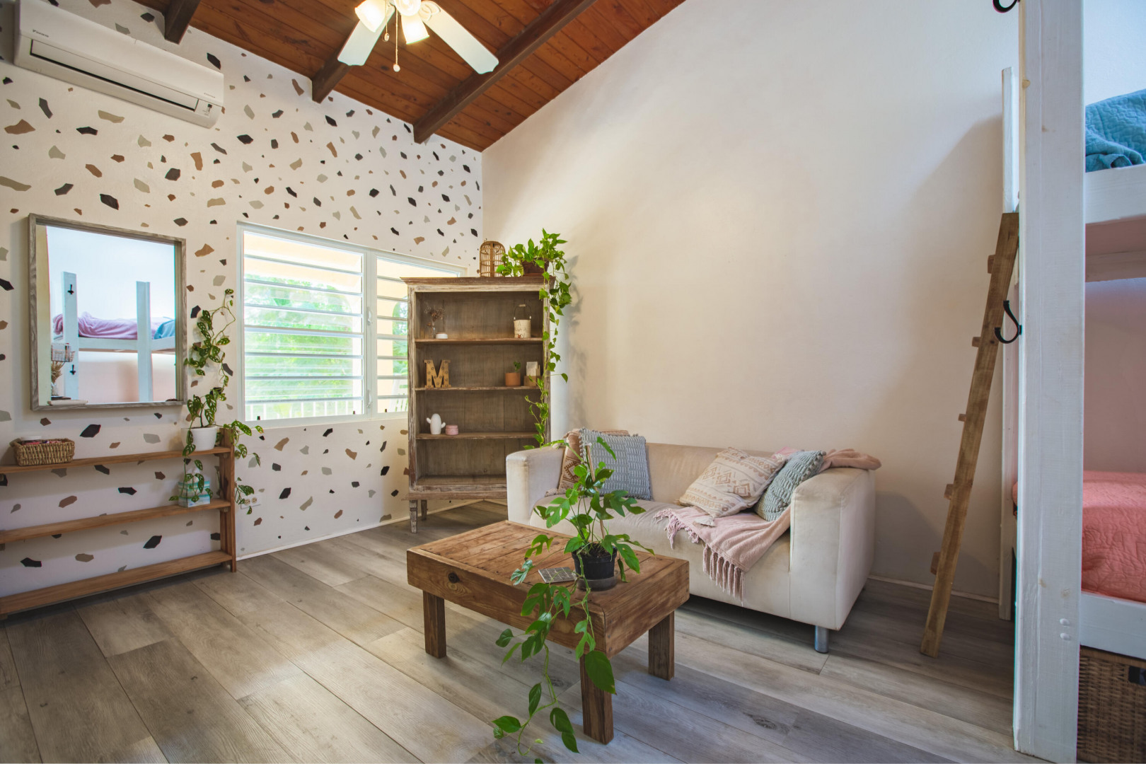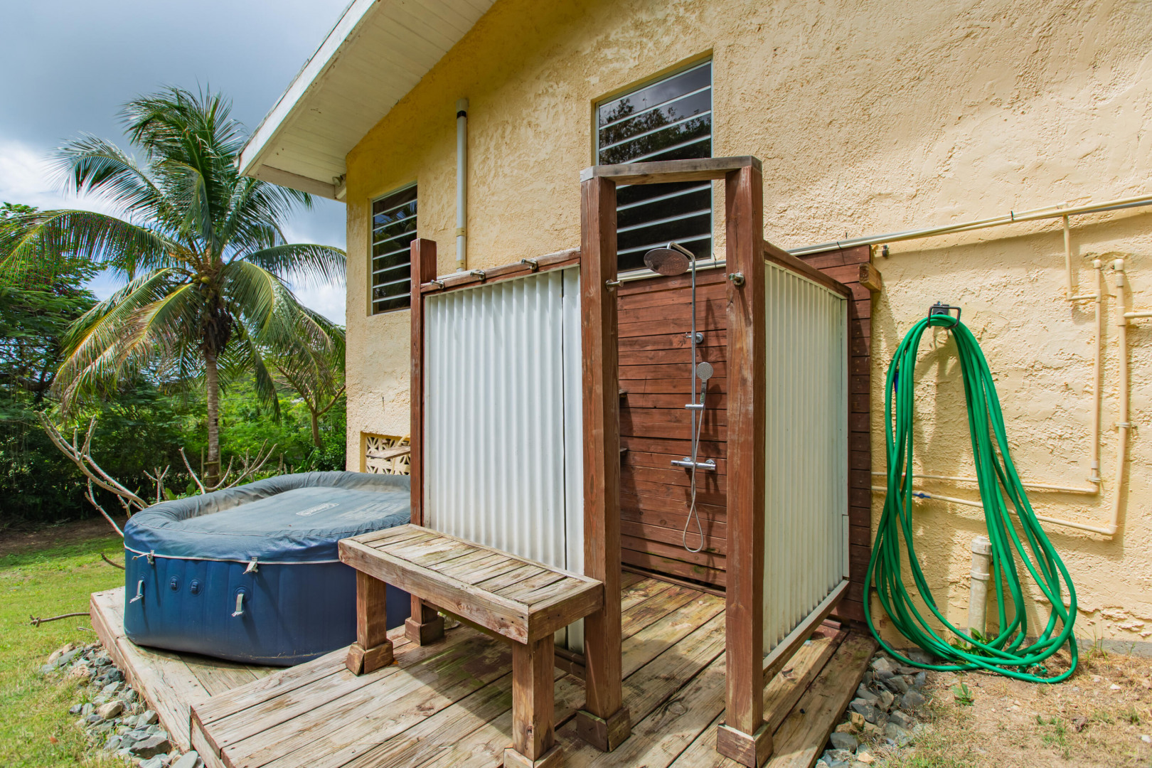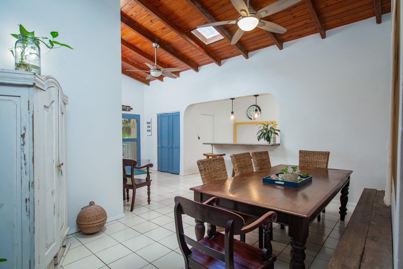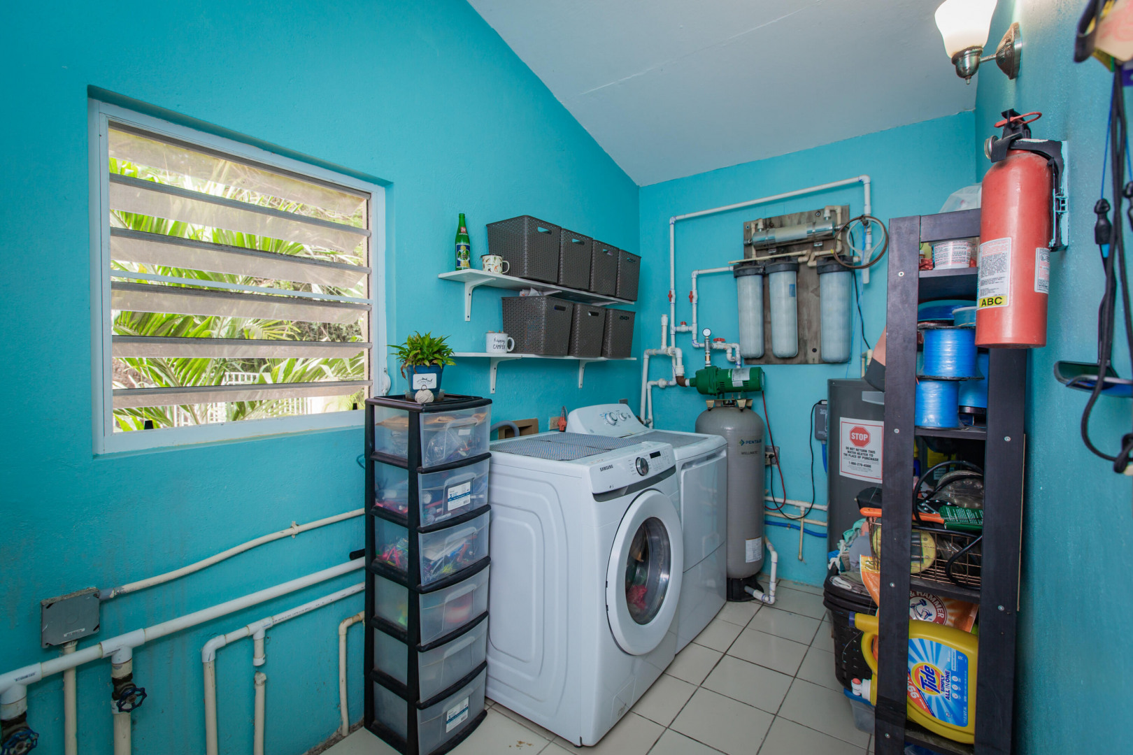This mid-island oasis truly embodies island life! Tucked away in the hills of La Grande Princess you will find a beautifully updated 3 bedroom 2 bathroom concrete home with an adorable apartment below- nearly 2700 square feet of interior living space! Perfect for a family or make this a wonderful investment property. Gated and fenced, the home offers privacy with lush landscaping and conveniently located to nearby beaches and shopping. Beautiful vaulted ceilings and lovely natural light greet you as you enter. This spacious home is well appointed with AC in all bedrooms, updated appliances, whole house filtration and gorgeous bathroom updates. Most furnishings will convey. Updated sliders and windows can also be found.The kitchen features granite countertops, stainless appliances, plenty of space for entertaining, a large pantry and laundry room.
