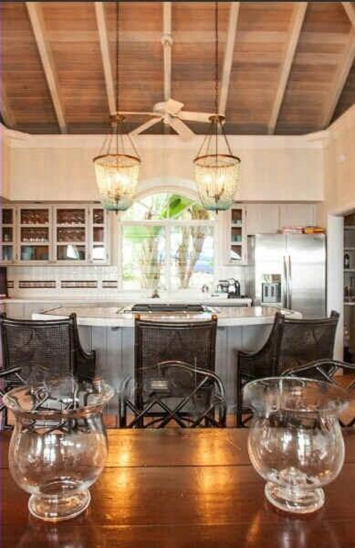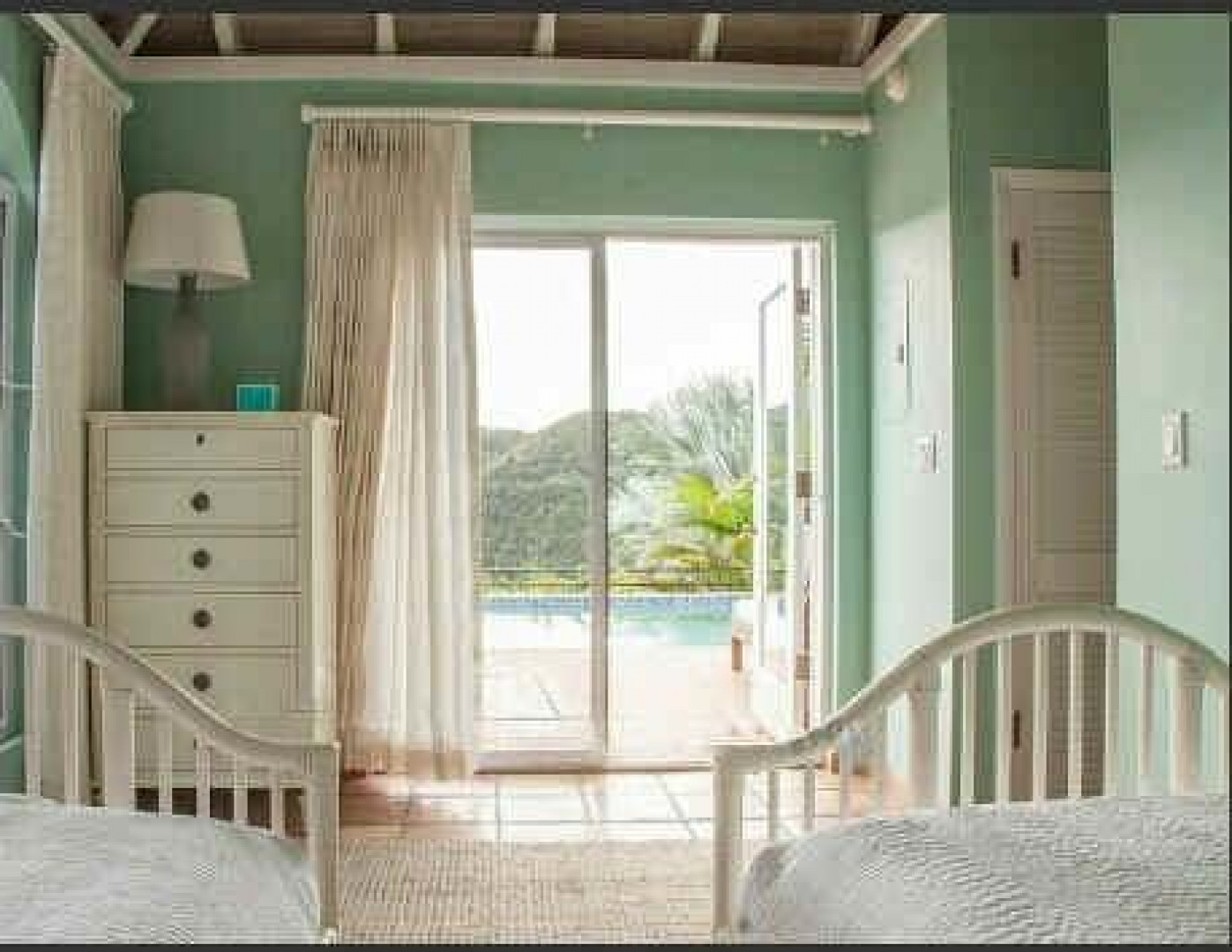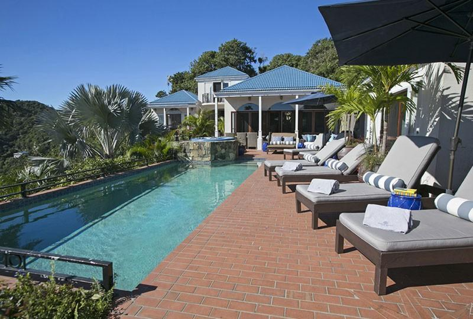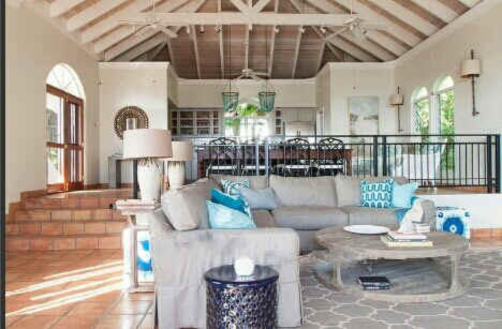 JUST FEATURED IN THE CARIBBEAN JOURNAL ARTICLE ''THIS IS THE BEST WAY TO EXPERIENCE ST. JOHN''. See at http://caribjournal.com/2015/10/16/this-is-the-best-way-to-experience-st-john/ This magnificent villa was completely renovated in 2014 with custom mahogany doors and screens, new custom cabinets, counter tops, high end furniture package and fixtures, stainless steel appliances, antique tables, armoires, new TV's and electronics. Perched high on a mountain ridge, 900 feet above sea level, "Mystic Ridge" features dramatic and spectacular views of Sir Francis Drakes Channel, the British Virgin Islands, St. John's East End, Coral Bay and National Park land. A short distance to the North Shore, Coral Bay and Cruz BaFacing into the prevailing south-easterly tradewinds you'll enjoy cooling breezes year round while lounging by the 12' X 32' pool on the spacious brick deck. There is a new fire pit situated on the edge of the deck. The natural stone wall is the perfect back drop with floor cushions and bar stools that give plenty of seating for all to enjoy this cozy space. The remodeled gourmet kitchen, with bar seating for four, includes all stainless steel appliances and a side by side refrigerator/freezer with filtered water and ice dispensers. An antique dining table with rattan chairs with padded cushions comfortably seats eight. Mystic Ridge is 4200 square feet of luxurious living. The villa includes 4 bedroom 4 1/2 baths with a/c, an expansive great room (26'X42'), ideal for entertaining, dining and casual living. The large living space includes a complete entertainment center including 60" TV with custom armoire, expanded digital cable, Phillips DVD/VCR player. Sherwood Tuner/Amplifier with Ipod/Mp3 hookup. Technic indoor speakers, Bose outdoor speakers and wireless DLS complete this electronics package. The outside covered porch has plenty of shaded space for lounging by the pool after a long day at the beach. Enjoy a home cooked meal or a catered dinner at the large outdoor dining table. The table has seating for eight with four large wicker chairs and bench seating with large comfortable pillows. The Master Bedroom amenities include king size bed, vaulted ceiling, multiple louvered windows with double screened French doors, private balcony with seating for two, a/c, ceiling fan, telephone and tiled garden shower. Gaze out to the unspoiled hillside of the National Park while bathing in your indoor/outdoor shower. Double sinks and vaulted ceilings give you a large sense of space. In addition there is a large closet with safe for all your valuables. From the entrance it is just a short walk to the lower staircase which takes you down to the second Master Bedroom which also includes a beautiful king bed with end tables and table lamps for each guest. Multiple louvered windows with double screened French doors, a/c, ceiling fan, and telephone make this quite the retreat. This master suite also includes an indoor/outdoor garden shower with double sinks and large closet for all your island attire as well as a dresser and mirror. A large private balcony awaits you just outside this suite with large wicker chairs to enjoy the view. The upper queen bedroom boasts high ceilings, a romantic mahogany four poster bed and large mahogany detailed armoire, plus double screened French doors, private balcony with seating for two, a/c, ceiling fan, and private bath and has the highest location with a fabulous down island view. The pool suite contains 2 twin beds, double screen French doors, private bath, a/c, ceiling fan, and multiple louvered windows to enjoy the scenic down island view and the refreshing tradewinds. The crystal clear pool awaits you just outside this suite. Buyer and Seller to split VI transfer tax. . .