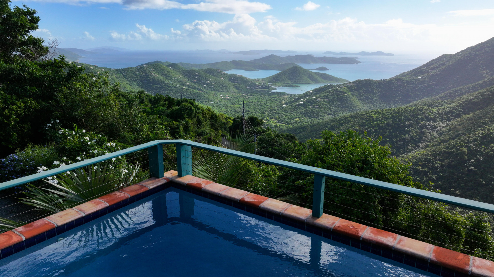 Notre Ciel is situated on a lush 3/4- acre parcel on Mamey Peak perfectly tucked into the mountain side for optimal privacy, dramatic sea views and comfortable trade winds. This well-maintained masonryhome offers two bedrooms, two baths, a loft bedroom, tiled pool deck, masonry pool and a hot tub. Combined with strong short term rental history, newer windows throughout and 2 Telsa power walls- Notre Ciel leaves you yearning for nothing. Buyer to honor all confirmed rental reservations. Buyer and Seller to split stamp tax.