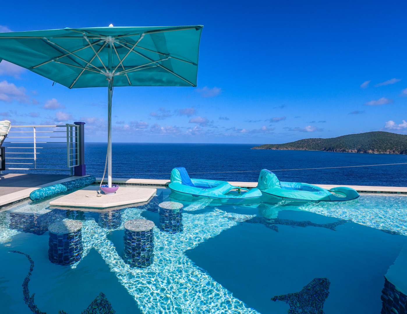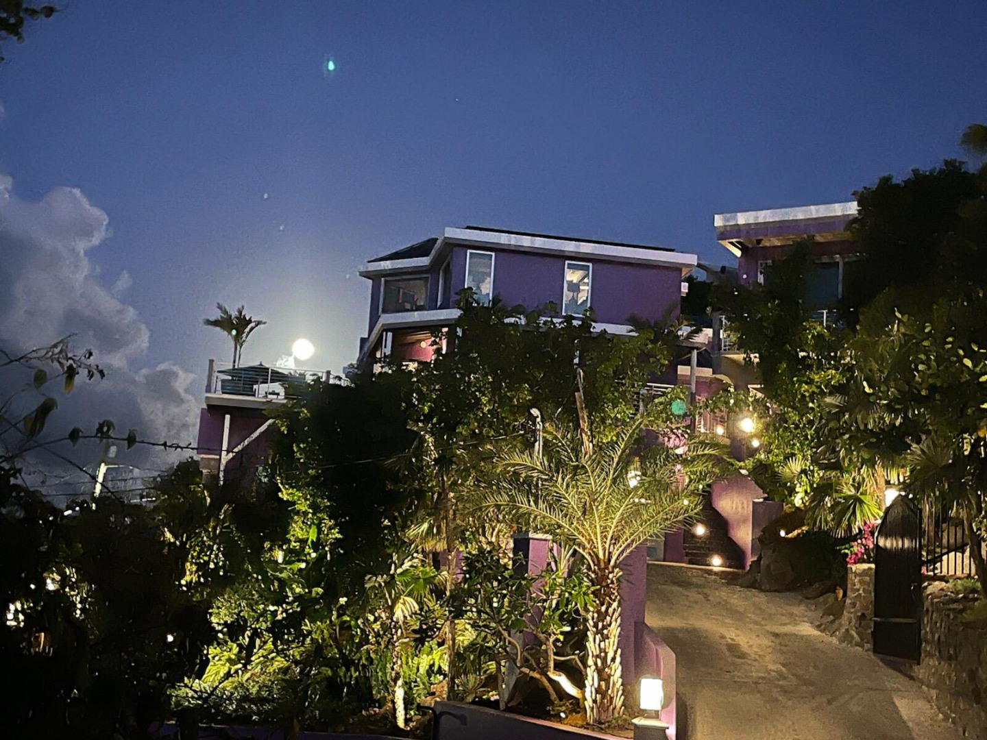 EXQUISITE! Purple Paradise is luxury living at its finest in prestigious Peterborg, St Thomas. Featuring 4 bedrooms, 4.5 bathrooms, 3 custom kitchens, 2 living rooms, and sweeping views of the beautiful ocean view pool and Atlantic Ocean, this custom home is designed with high-end premium amenities, fixtures and landscaping, with a gated/fenced driveway, 2 car garage, 94 solar panels, 6 Tesla batteries, 40KW diesel generator, impact windows, hot tub and heated pool with built-in table and bar stools. Two of the bedrooms are master suites, and the fully equipped gym (4th Bedroom) has a pool table, sauna, shower/bath and kitchen. The modern amenities, along with the professional lighting and tropical landscaping, showcase this property above others. See list of Special Features attached