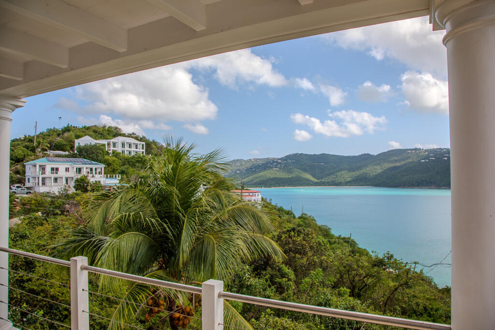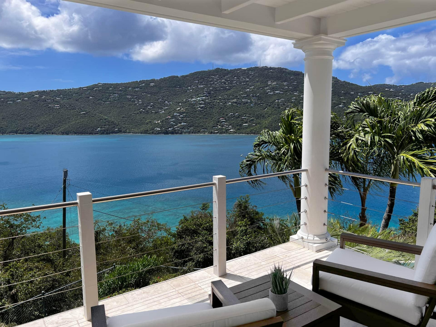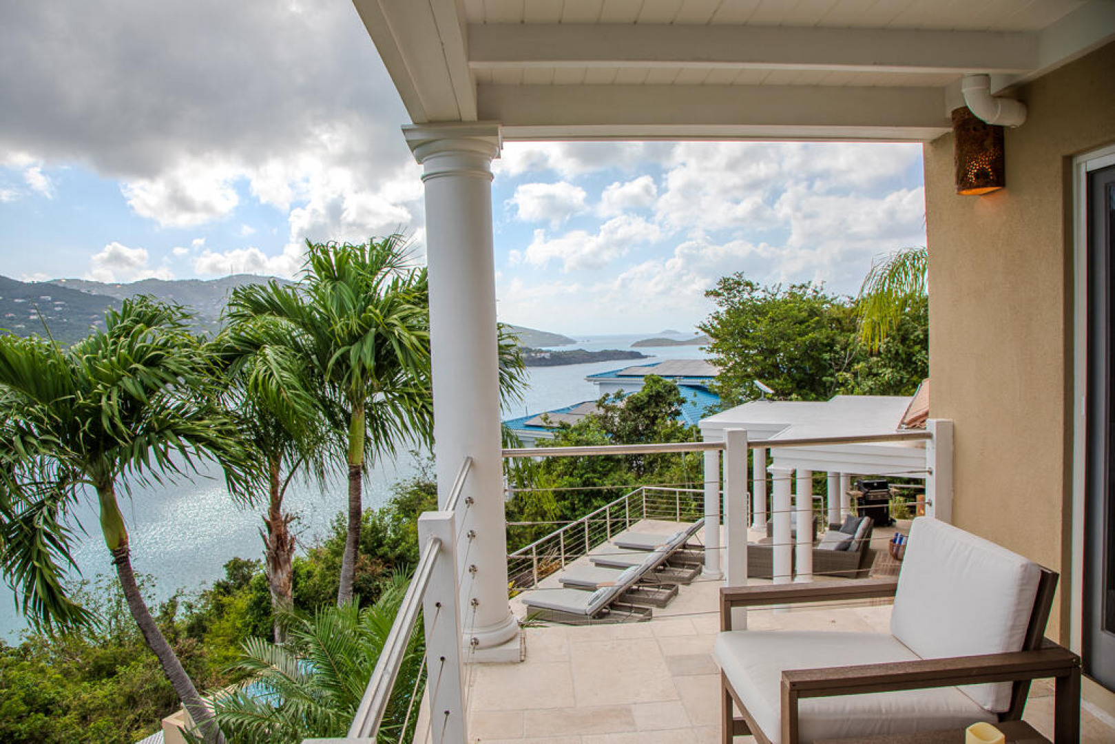 Immaculate and meticulously maintained, ISLAND TIME is an elegantly furnished luxury villa located on Peterborg peninsula. Built on a crest lot, this perch provides magnificent views of world-famous Magens Bay on one side and the serene Atlantic Ocean on the other. The property is comprised of two separate buildings. The Main Pavillion with cathedral ceiling accommodates a large modern kitchen with stainless steel appliances and custom cabinetry. Also in this building are the tastefully appointed living and dining room areas as well as half-bath. The building opens to the covered veranda and pool area through impact glass sliding doors. The second building is two stories, each hosting an identical King Suite with private bath and entrance. See More...Both Suites offer spectacular views of Magens Bay from private covered porches. The first floor suite opens to the poolside lawn and the second floor suite has an additional covered porch facing the Atlantic. The separate buildings allow for versatility, as activity in the Main Pavillion will not interfere with rest and relaxation in the King Suites. Watch the dayboats and mega yachts come in and out of Magens Bay from the sparkling saltwater infinity pool, or try your luck whale-watching from the outdoor Atlantic-view lounge on the northern side of the property. There's no hurry if you're on Island Time...