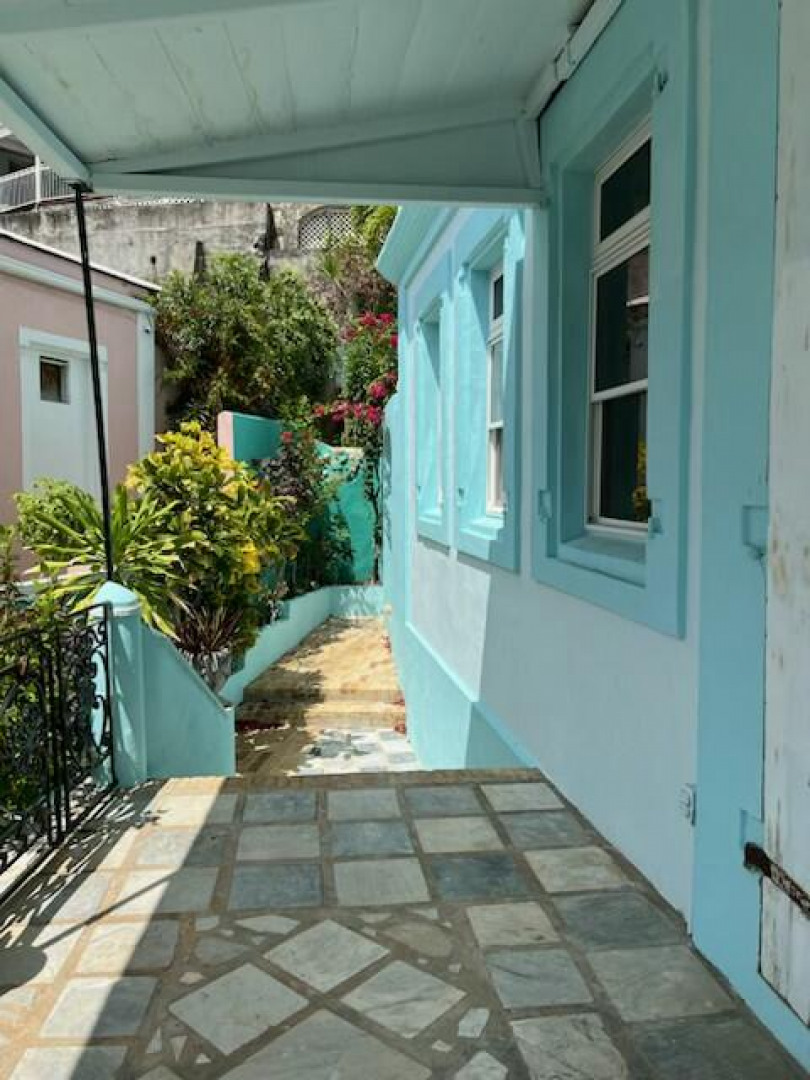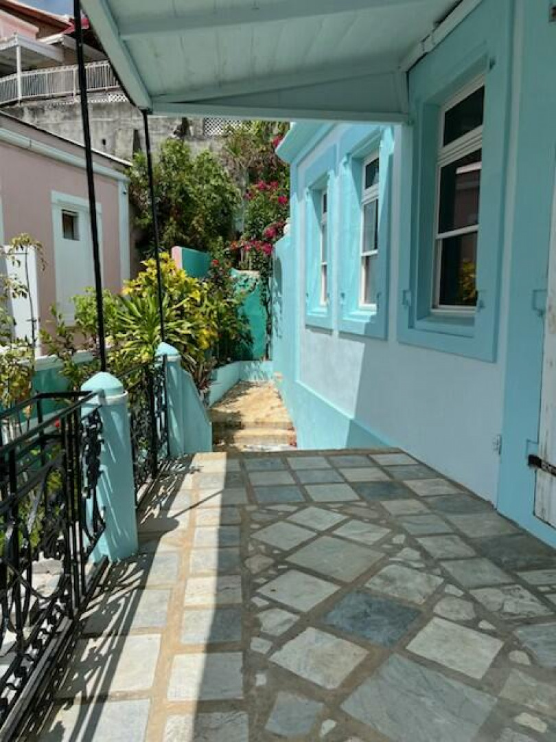 A RARE OPPORTUNITY. Just steps from Main St. in the Heart of St. Thomas, this wonderful masonry building dates back to the 1800s as is evidenced by its historic construction and interior. There are two separate living areas, one above and one below. Live in the upper 2 bedroom, 1 bath unit and rent out the 4+ bedroom, 1 bath unit below or rent out both units together. Also can be a wonderful single family home or corporate building.