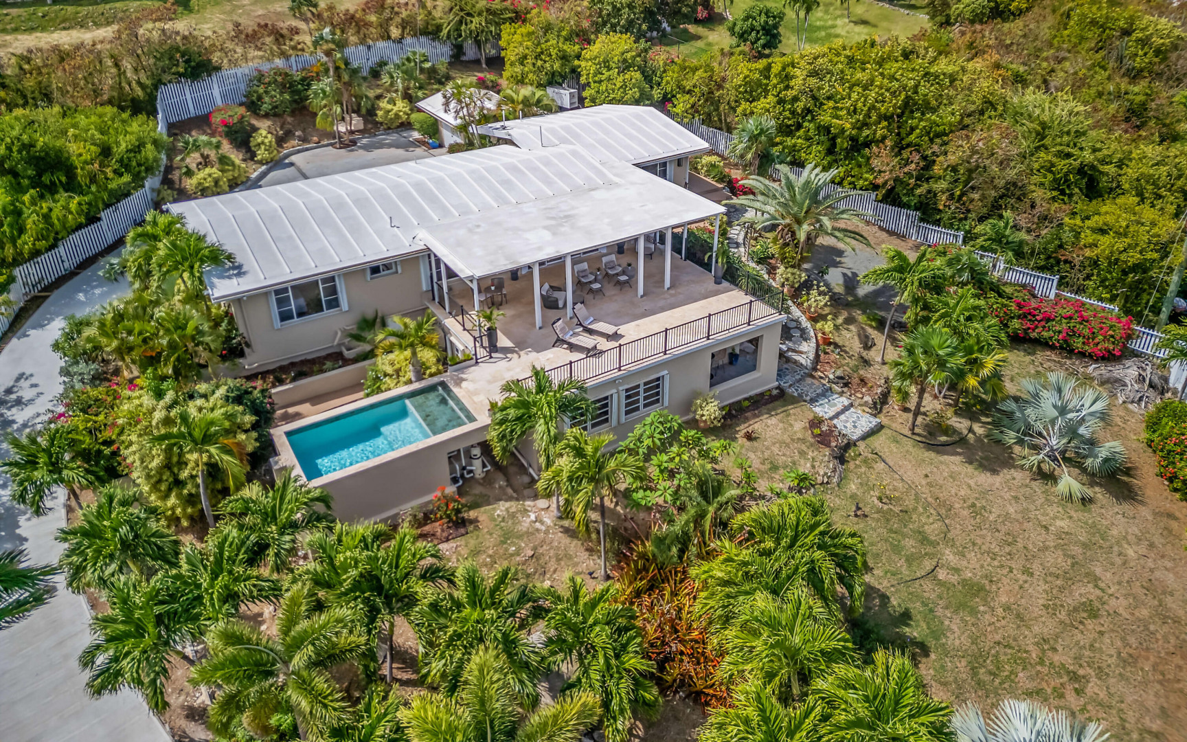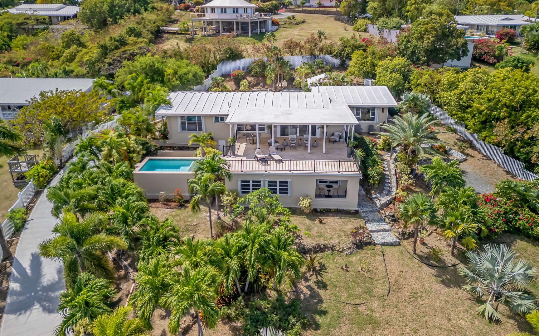 Elegant masonry home, mesmerizing views and just minutes from pristine beaches. This exquisitely remodeled home offers a blend of luxury, sophistication, and island charm. Overlooking the stunning vistas of St. John and the British Virgin Islands, this exclusive sanctuary is designed for the discerning buyer seeking elegance and tranquility. From the moment you arrive, a brand-new private driveway leads you to a masterfully reimagined residence. The main house has central air, 4 bed and 2.5 baths. A generator and a newly constructed saltwater pool. The 1 bed, 1 bath apartment offers a private escape for guests, or additional luxurious living space and/or rental income. Contact us today to schedule a private showing. IMPROVEMENTS