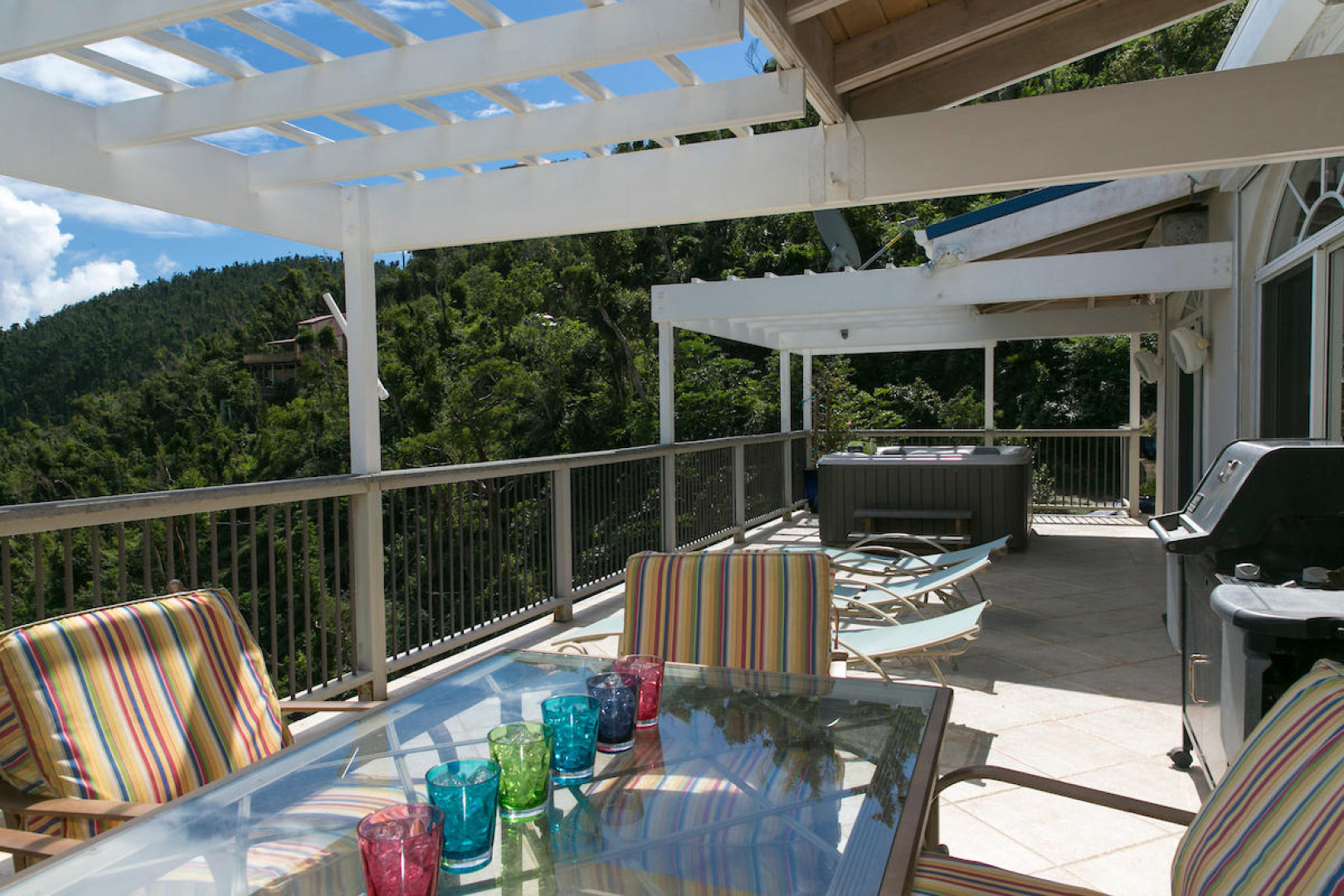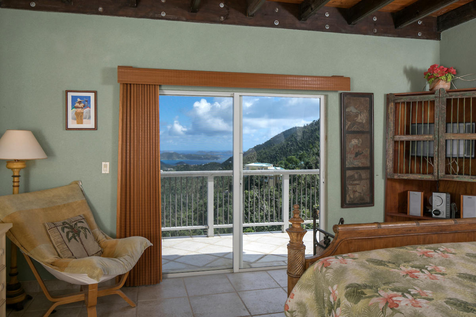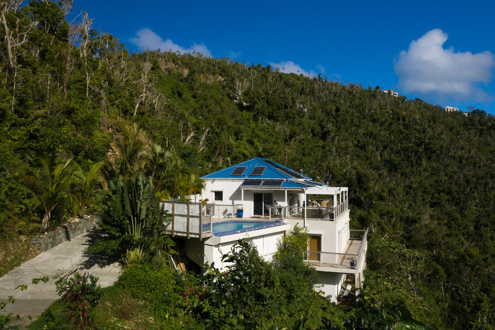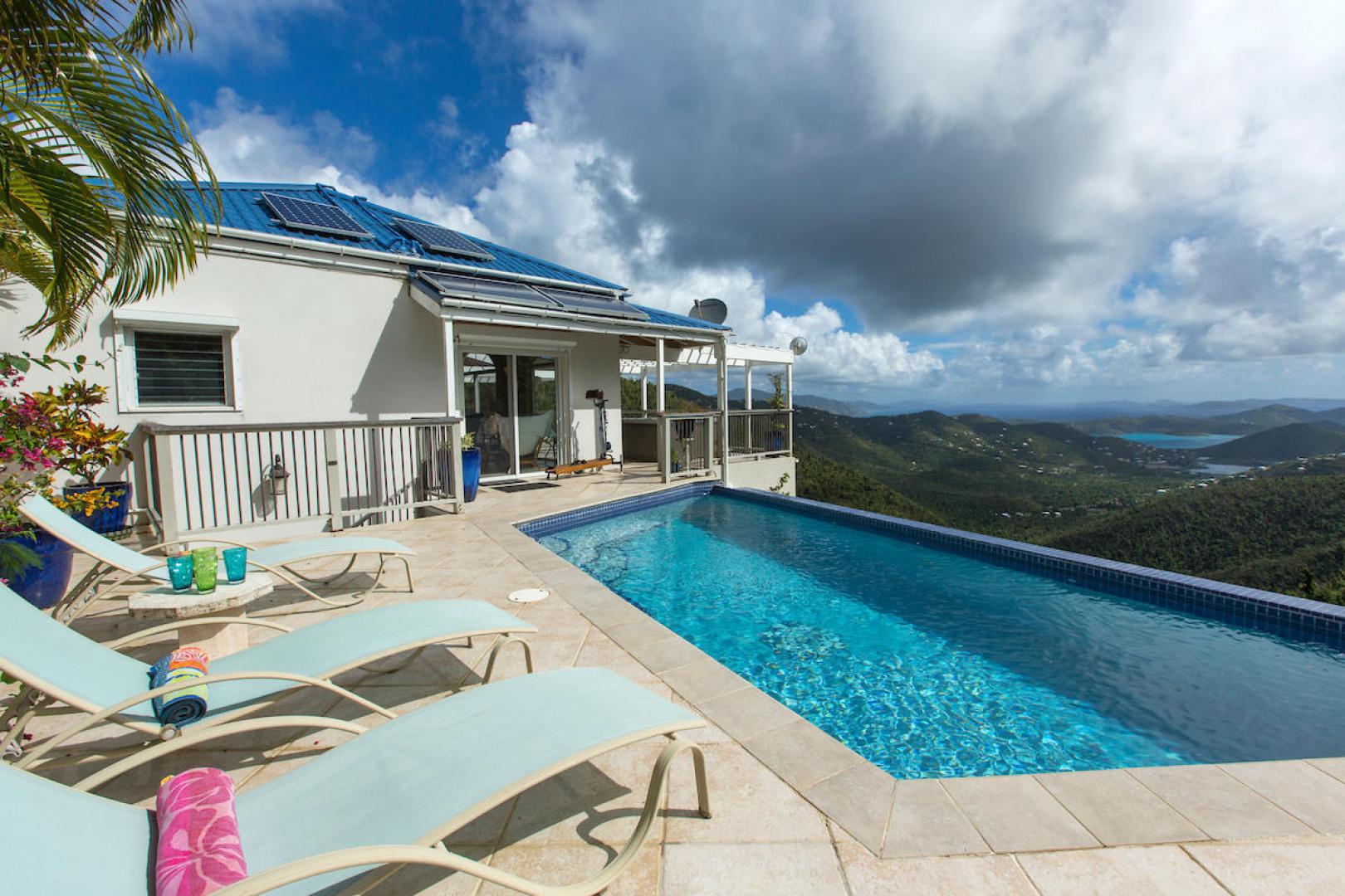 Stunning panoramic down island views from ''Bordeaux Breeze'' perched high on Bordeaux mountain on a spacious 1.03 acre parcel with 2 bedrooms, 3 bathrooms, pool and hot tub. The gourmet kitchen, great room (with pull out sleeper) and full bathroom are located on the main entry level that accesses the pool and hot tub. An internal staircase leads to the lower level with 2 air conditioned bedrooms, 2 bathrooms and the washer/dryer and storage areas. Currently used as a private residence but has been a successful short-term rental in the past and could easily be again. Centrally located with easy access to Cruz bay town, Coral bay restaurants & shops and North shore beaches. *Buyer & Seller to equally split the costs of the transfer tax.10 solar panels located on the roof charge the Tesla wall batteries & send power back to the grid Hot water panels provide domestic hot water Collectors circulate & heat the pool water The villa sustained no hurricane damage in the 2017 storms All windows & doors have hurricane shutters