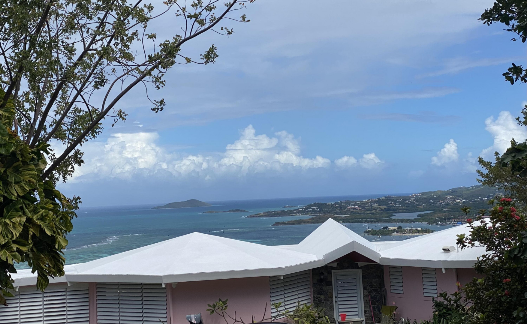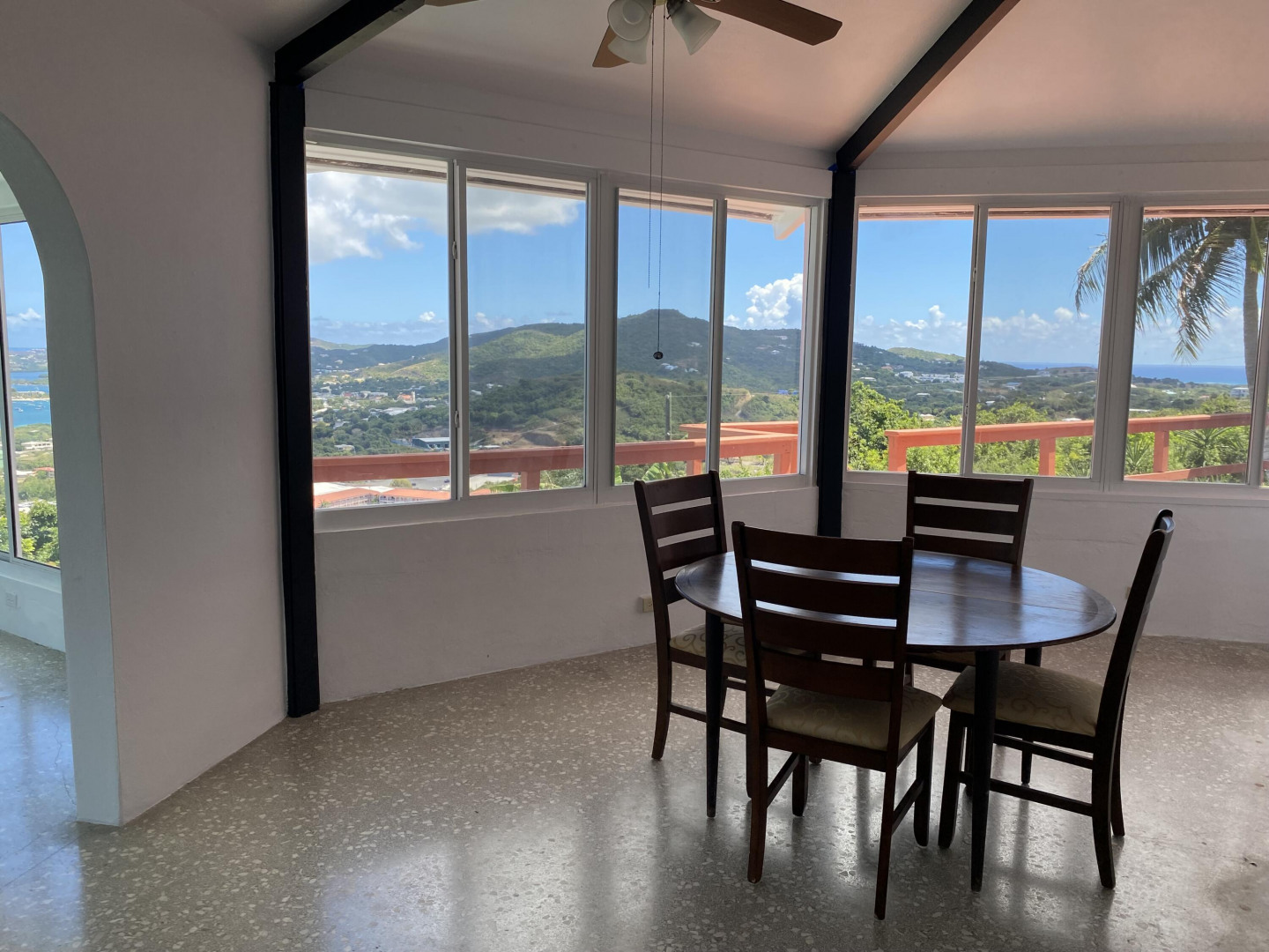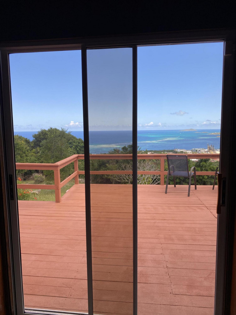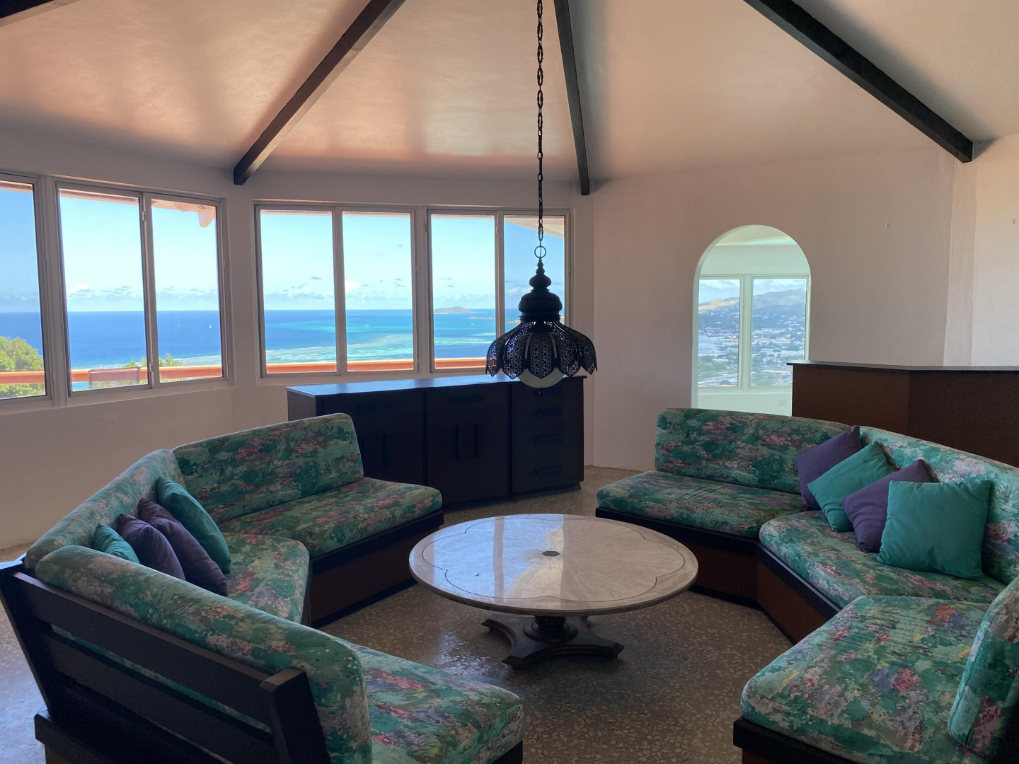 Mid island home with wide sweeping views of Christiansted, Buck Island, down island and to the south. Main house 3 bed room 3 bath. 1 bed room guest house and pool with pool room and bath. Pool deck has covered area with wet bar. 2 decks upstairs. Below the house large enclosed storage area.