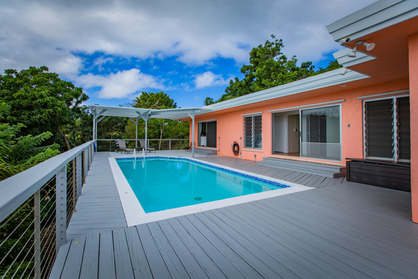 Spectacular views to the east & south from this custom built 3-bedroom, 3-bath plus studio apartment, hilltop home located on the Northshore. This amazing property meticulously maintained by owners also features updated kitchen, pool, re-painted wrap-around pool deck, remodeled studio apartment located below (perfect for guests or vacation rental), net-metering w/ 8KW solar system, back-up generator, large picture windows for those amazing views, vaulted ceilings and tile floors. Extra storage located beneath pool deck. Located minutes away from Salt River & Cane Bay areas for dining, beaching & watersports.