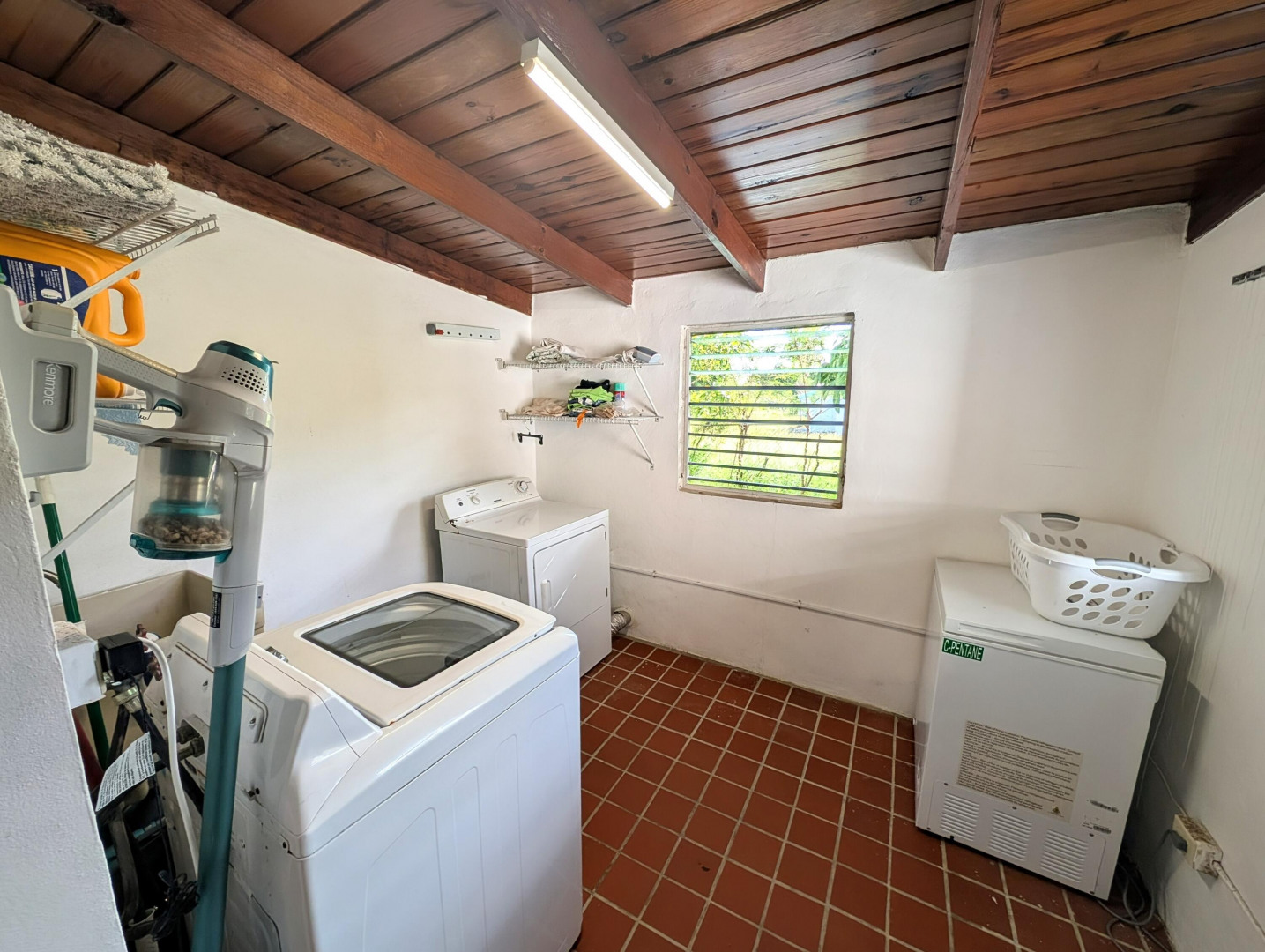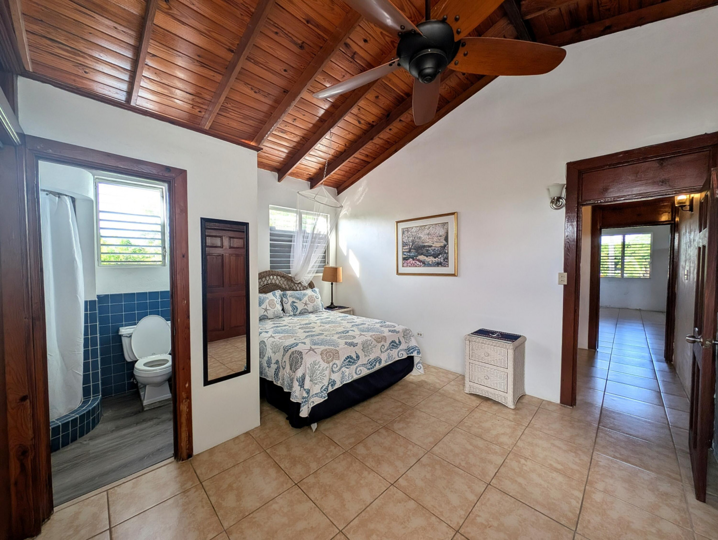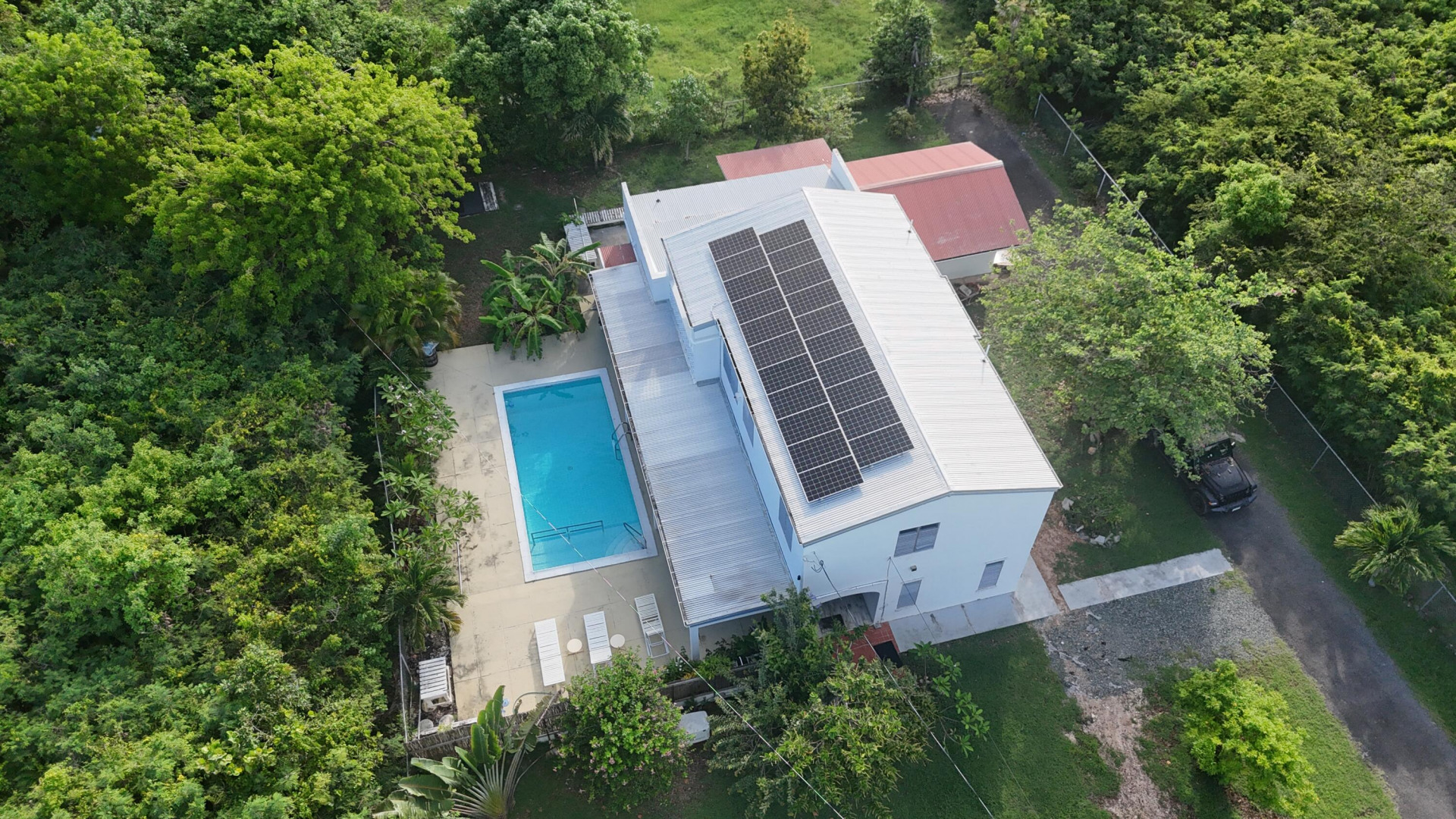 Welcome to your dream island retreat! Nestled just two blocks from the turquoise waters of the Caribbean Sea and only minutes from historic downtown Frederiksted, this beautifully appointed 3-bedroom, 3-bathroom home blends modern sustainability with island charm. Set behind a fully fenced perimeter for privacy and peace of mind, this spacious home offers the ideal blend of comfort and security. Each bedroom features generous natural light and en-suite bathrooms, perfect for families or guests. The open-concept living and dining area flows seamlessly into a modern gourmet kitchen, fully equipped for entertaining. Power outages are a thing of the past thanks to Tesla Powerwalls, ensuring reliable, off-grid-capable energy storage and sustainability.The lush, landscaped yard and pool area provides plenty of room for outdoor lounging, swimming, or gardening.