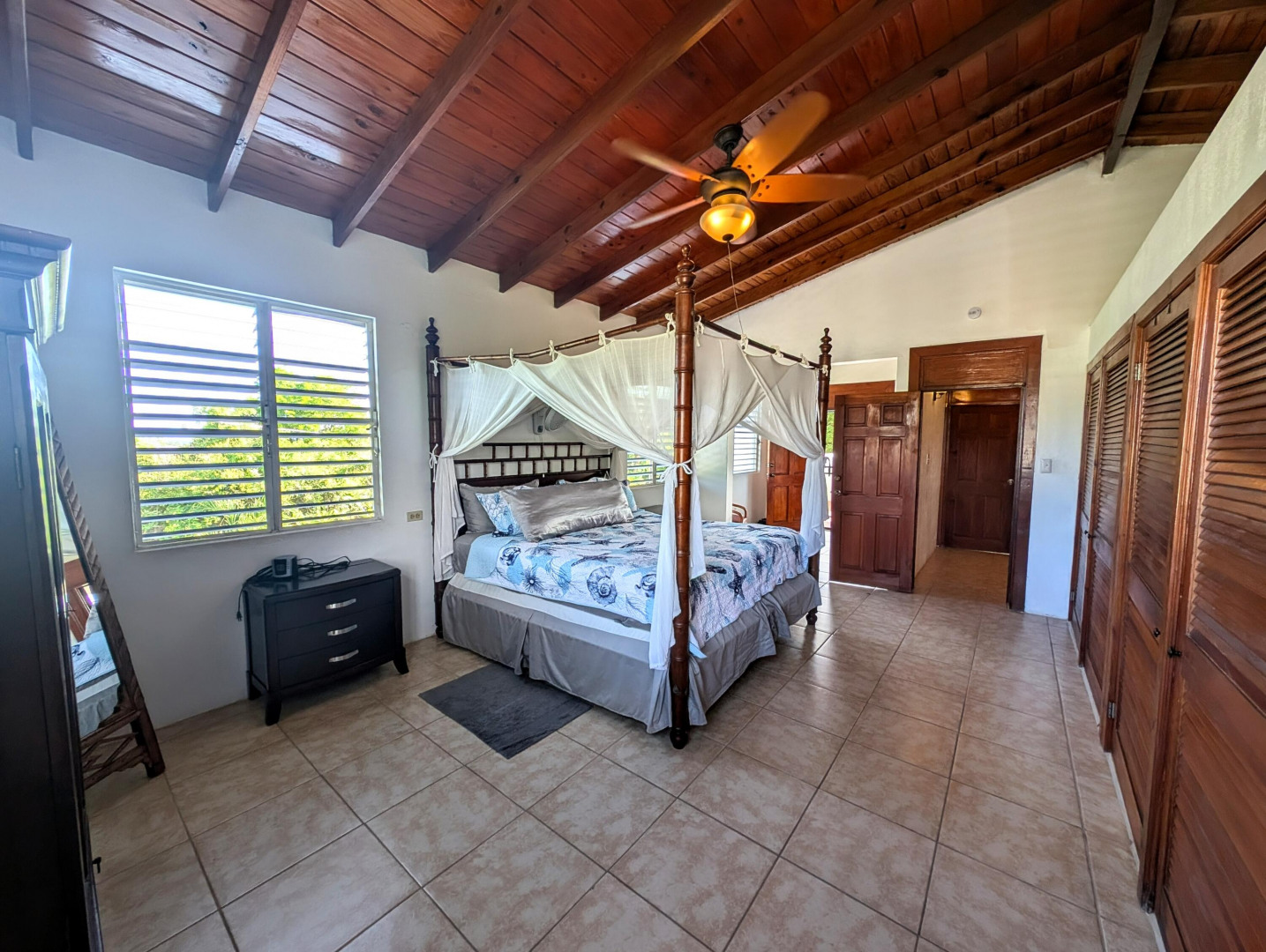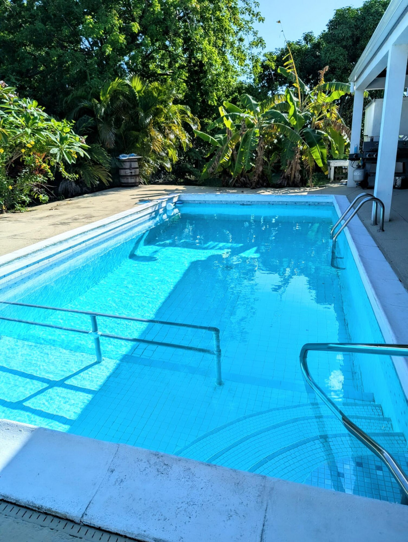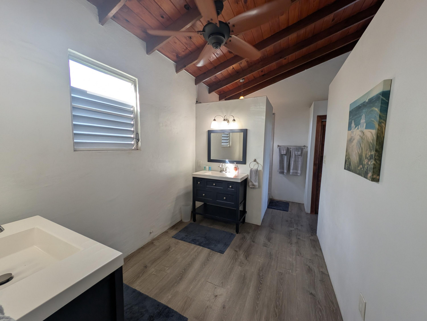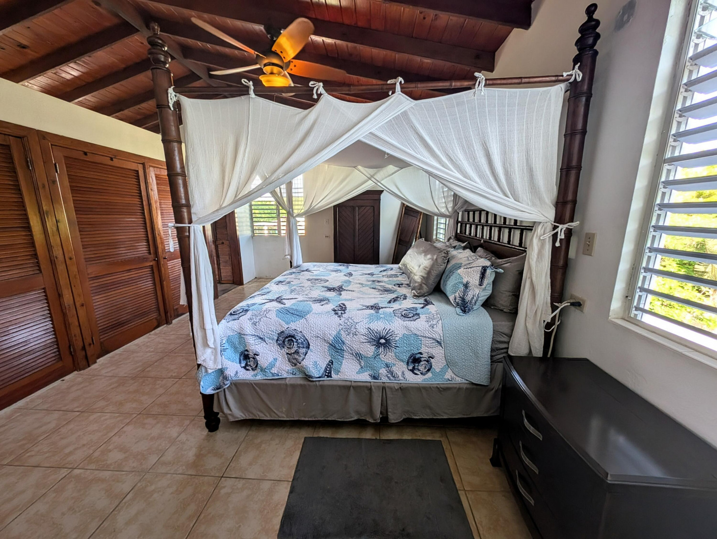 Welcome to your dream island retreat! Nestled just two blocks from the turquoise waters of the Caribbean Sea and only minutes from historic downtown Frederiksted, this beautifully appointed 3-bedroom, 3-bathroom home blends modern sustainability with island charm. Set behind a fully fenced perimeter for privacy and peace of mind, this spacious home offers the ideal blend of comfort and security. Each bedroom features generous natural light and en-suite bathrooms, perfect for families or guests. The open-concept living and dining area flows seamlessly into a modern gourmet kitchen, fully equipped for entertaining. Power outages are a thing of the past thanks to Tesla Powerwalls, ensuring reliable, off-grid-capable energy storage and sustainability.The lush, landscaped yard and pool area provides plenty of room for outdoor lounging, swimming, or gardening.