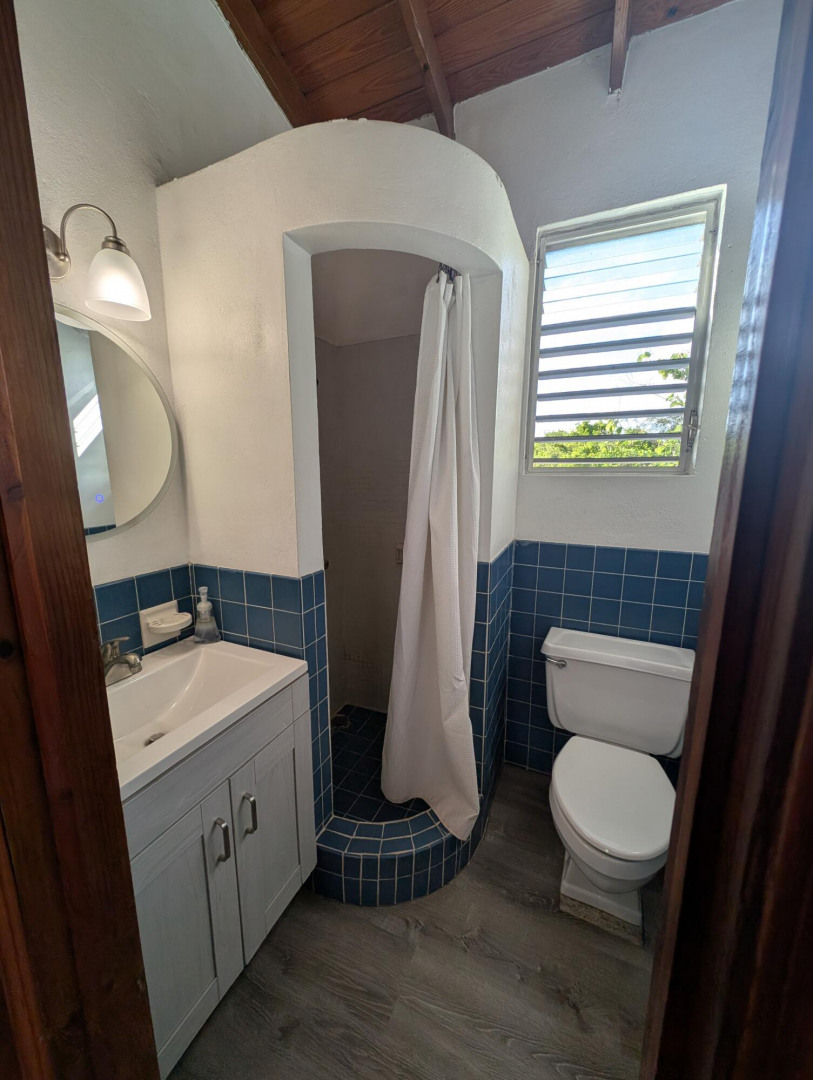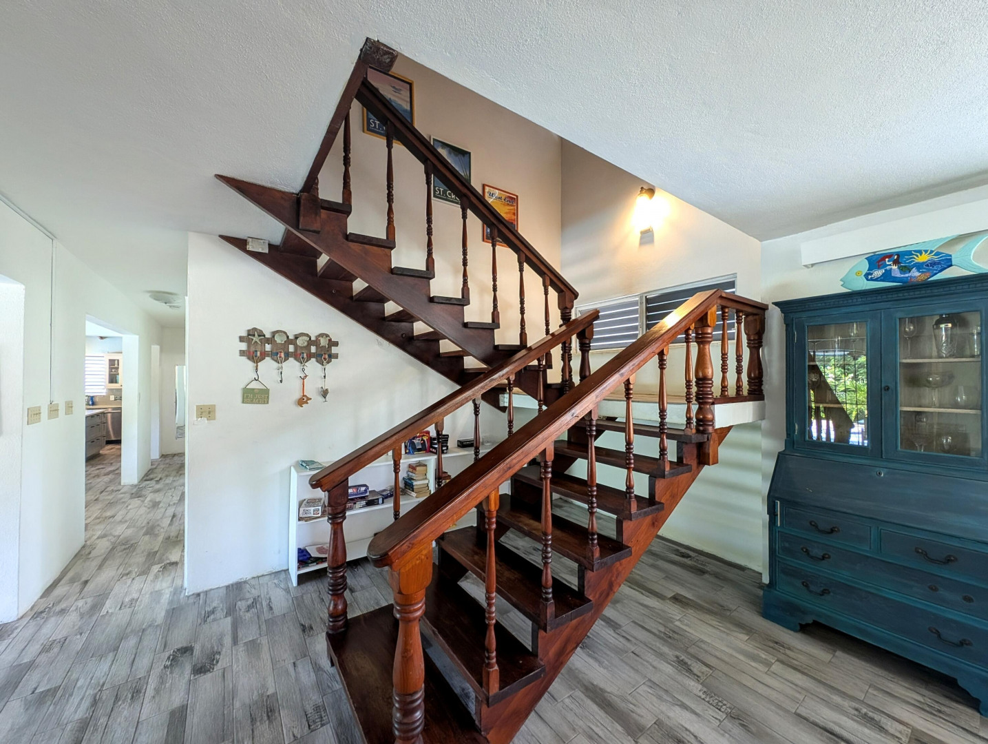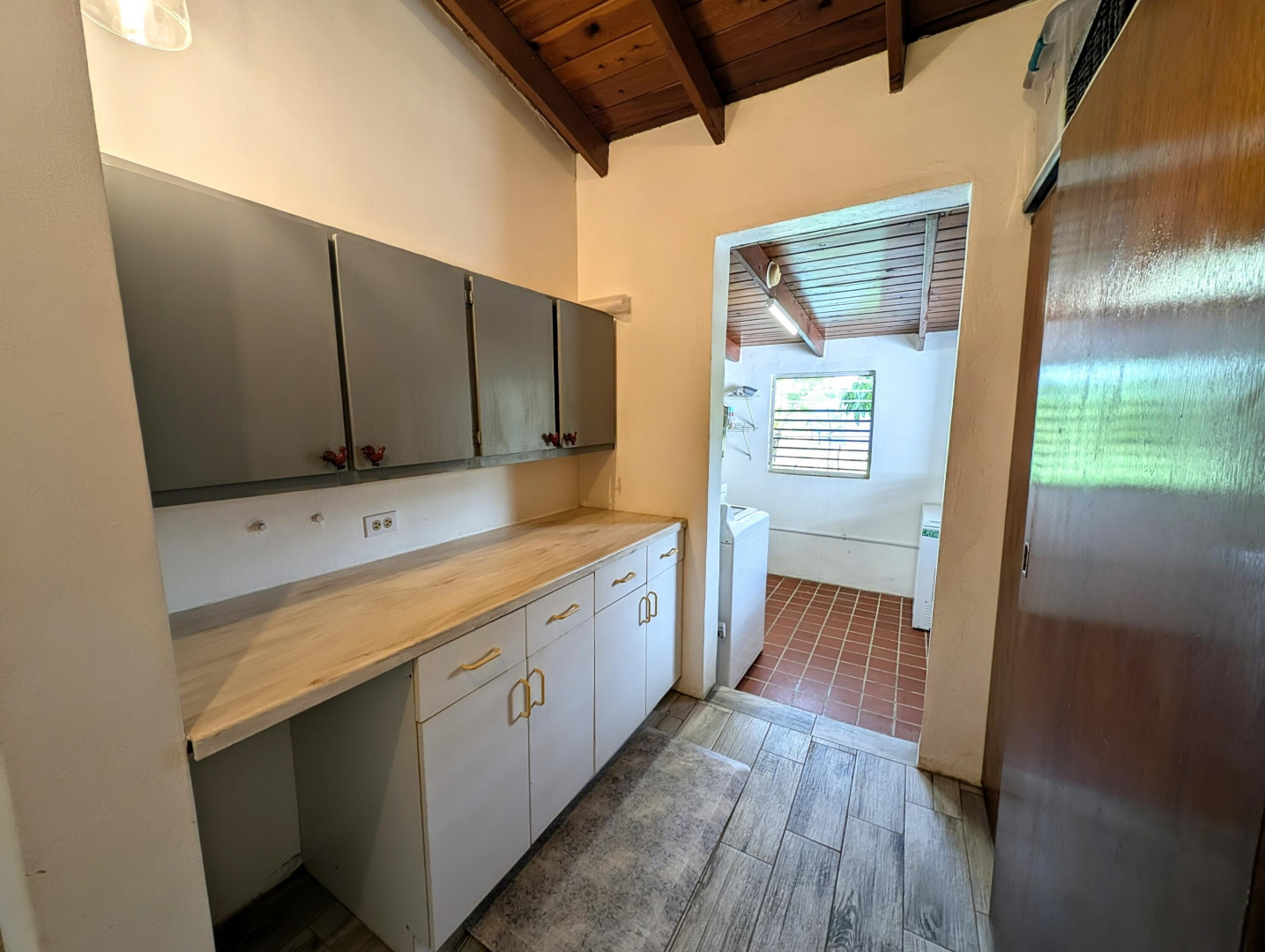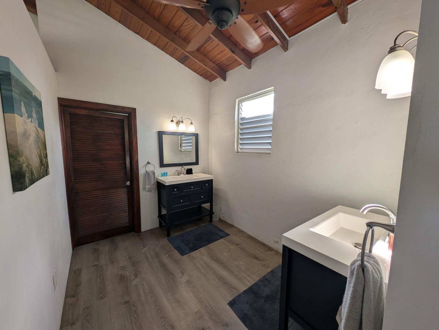 Welcome to your dream island retreat! Nestled just two blocks from the turquoise waters of the Caribbean Sea and only minutes from historic downtown Frederiksted, this beautifully appointed 3-bedroom, 3-bathroom home blends modern sustainability with island charm. Set behind a fully fenced perimeter for privacy and peace of mind, this spacious home offers the ideal blend of comfort and security. Each bedroom features generous natural light and en-suite bathrooms, perfect for families or guests. The open-concept living and dining area flows seamlessly into a modern gourmet kitchen, fully equipped for entertaining. Power outages are a thing of the past thanks to Tesla Powerwalls, ensuring reliable, off-grid-capable energy storage and sustainability.The lush, landscaped yard and pool area provides plenty of room for outdoor lounging, swimming, or gardening.