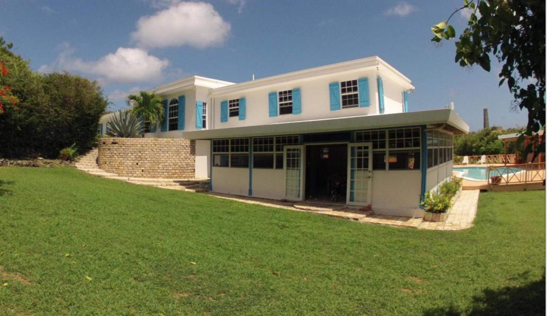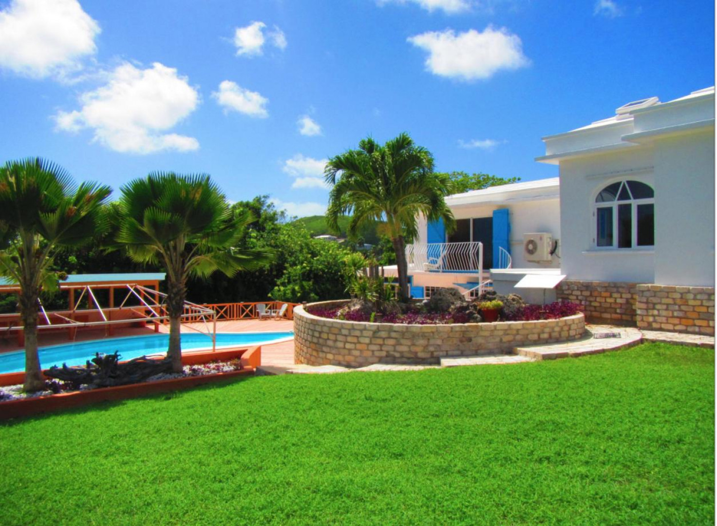 Amazing location, next door to Judith's Fancy Ruins, huge yard, terrific entertainment area around the pool and covered patio area. Patio is lighted for entertaining, extremely large picnic table for family and parties. Inside very large great rooms, granite kitchen counter tops, beautiful tiled floors, lots of space. Easy dreamy lsland living.