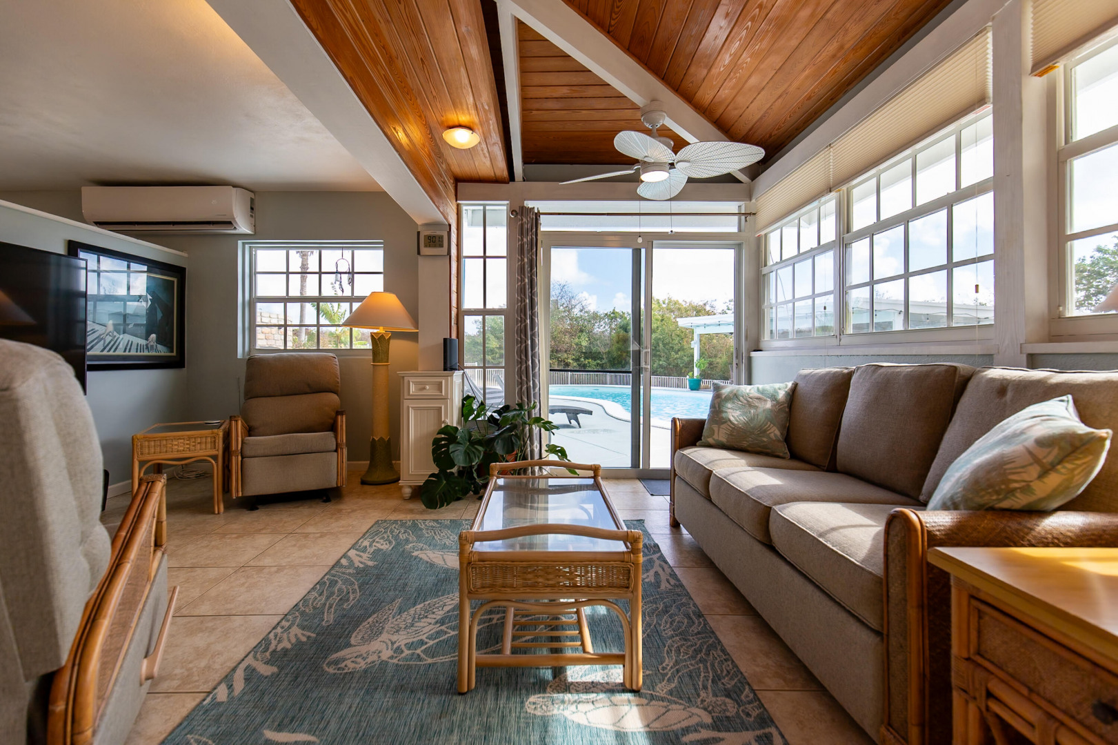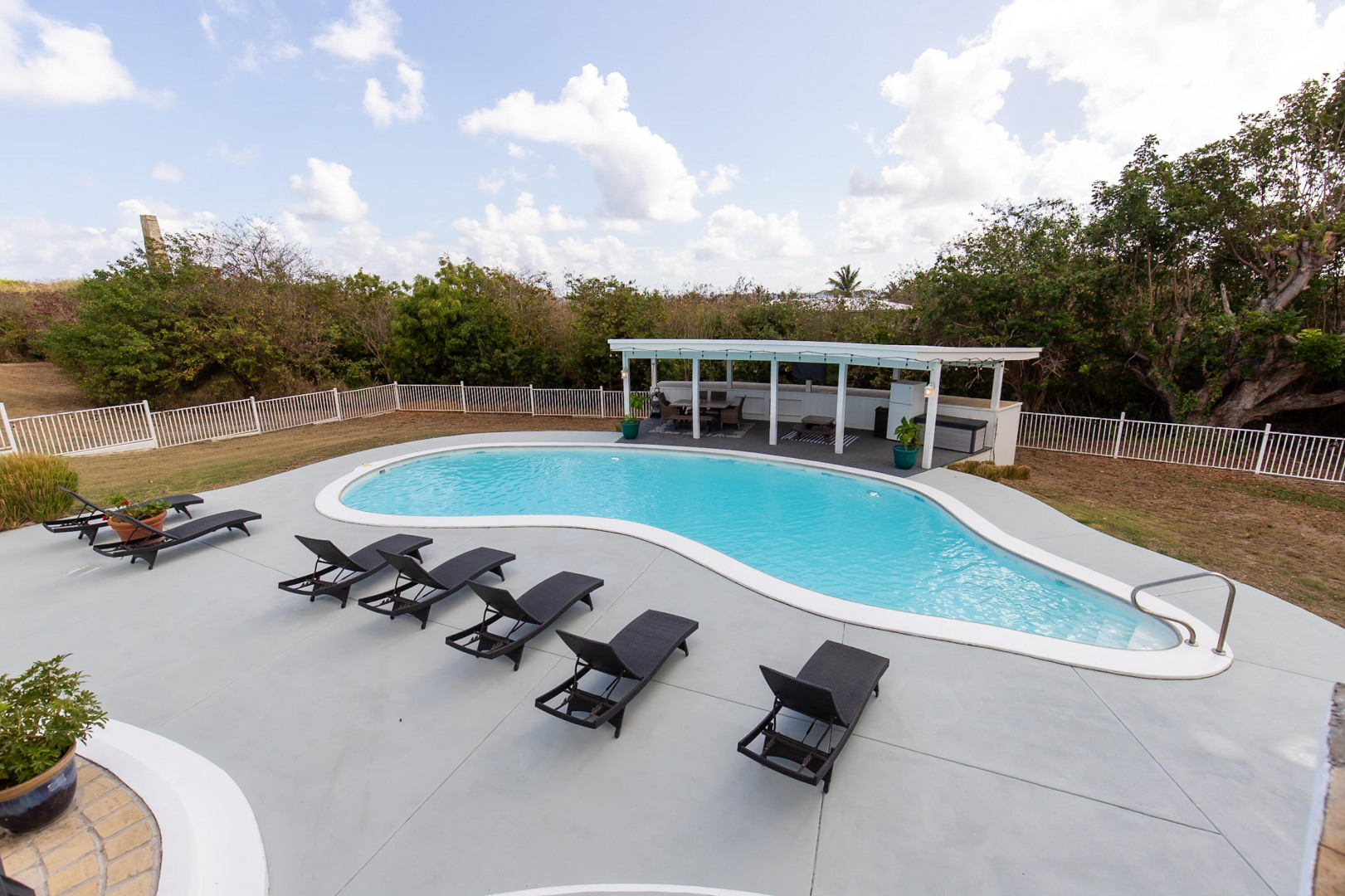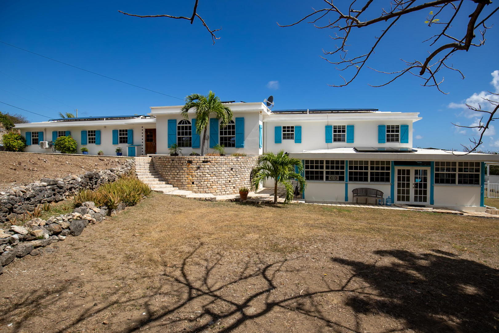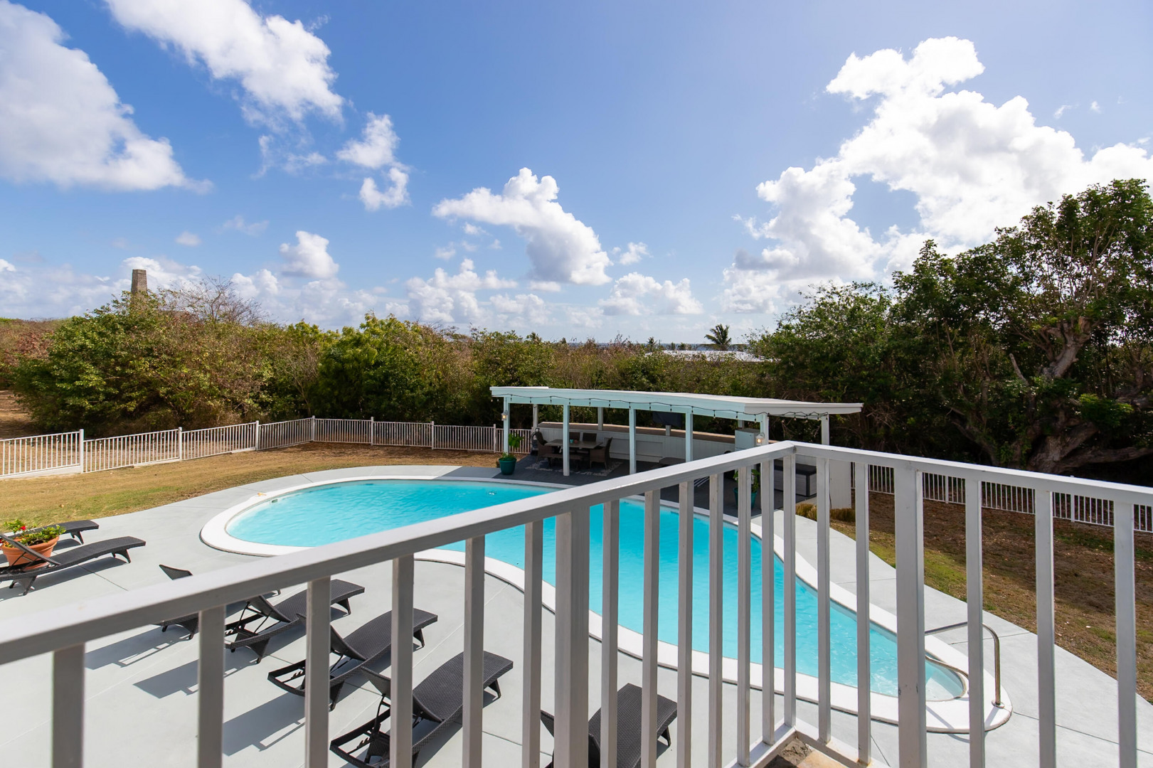 Located in the gated enclave of Judith's Fancy, this elegant estate sits on nearly an acre of lush grounds. The main home features 3 bedrooms/2 baths as well as a versatile bonus office space which provides the perfect setting for remote work, creative pursuits, or a private study, bringing function and flexibility to the home's thoughtful layout. On the lower level you will find a 1-bed, 1-bath poolside apartment--ideal for guests or rental income. Powered by 53 solar panels with 4 Tesla batteries, the home offers sustainable luxury. Outdoor living shines with a pool, sun deck, cabana, and playground. The primary suite is a true retreat, complete with a private balcony overlooking the grounds, ideal for morning coffee or sunset cocktails.Best of all, you're just a short stroll to the turquoise waters of the Caribbean Sea. This is a rare opportunity to own a refined Caribbean sanctuary in one of St. Croix's most sought-after communities.