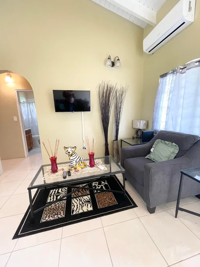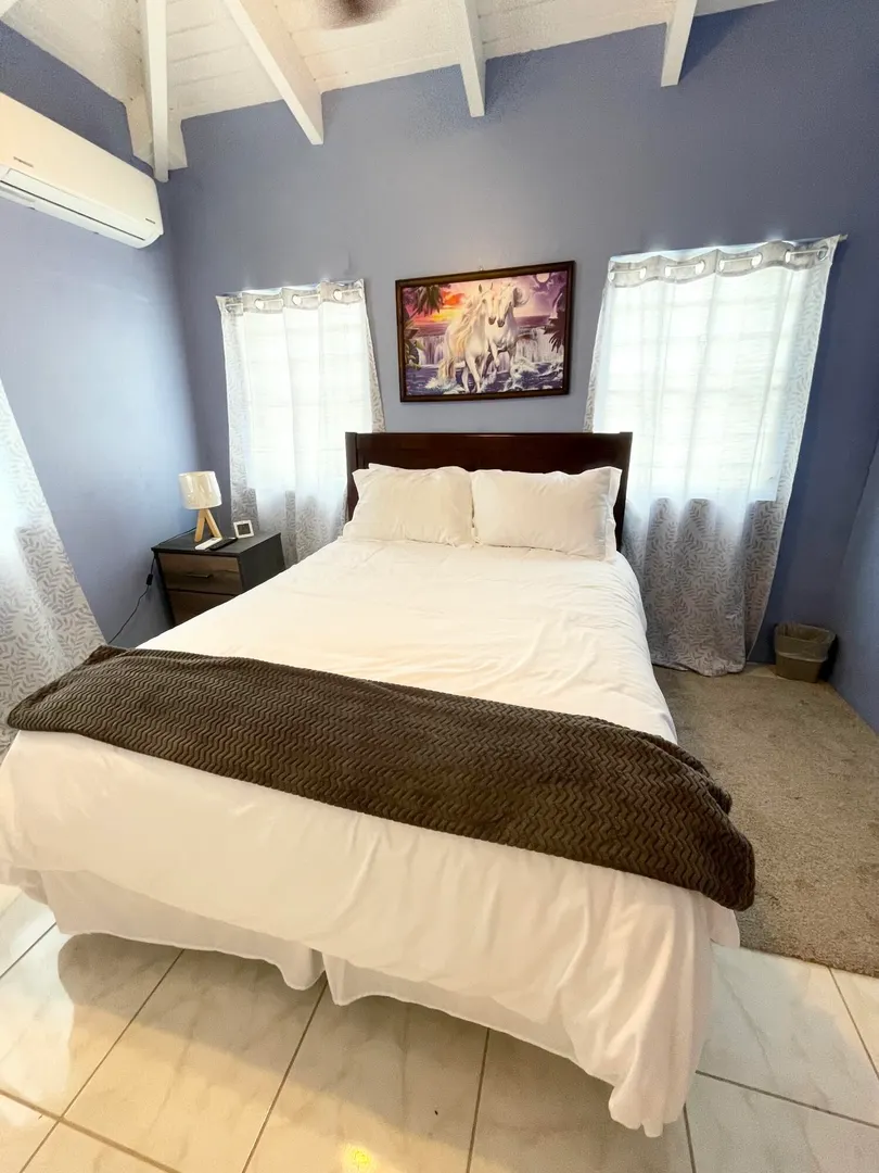 Make this modern 2-bedroom, 1 bathroom apartment your new home. Enjoy the updated kitchen with center island, ACs in the living room and bedrooms, and private front and back porches. It also features a private laundry room with washer and dryer, fenced yard and ample parking. First, last, and security required. No pets.