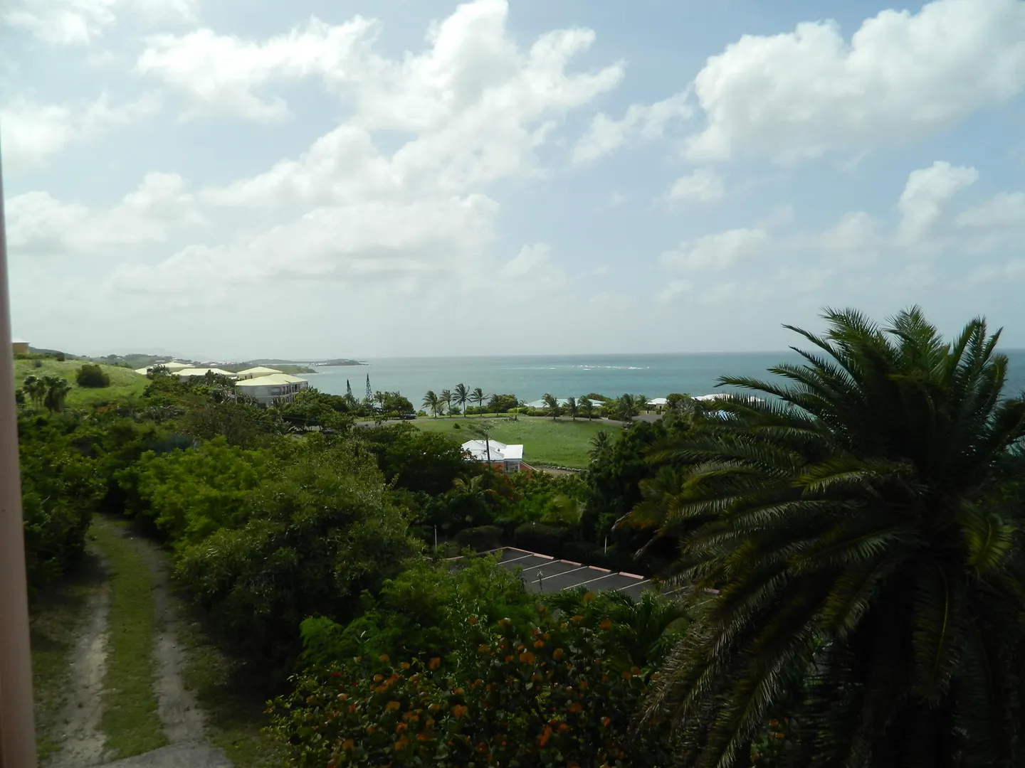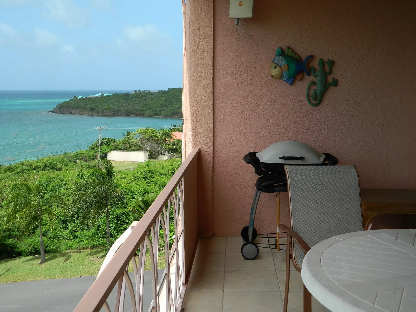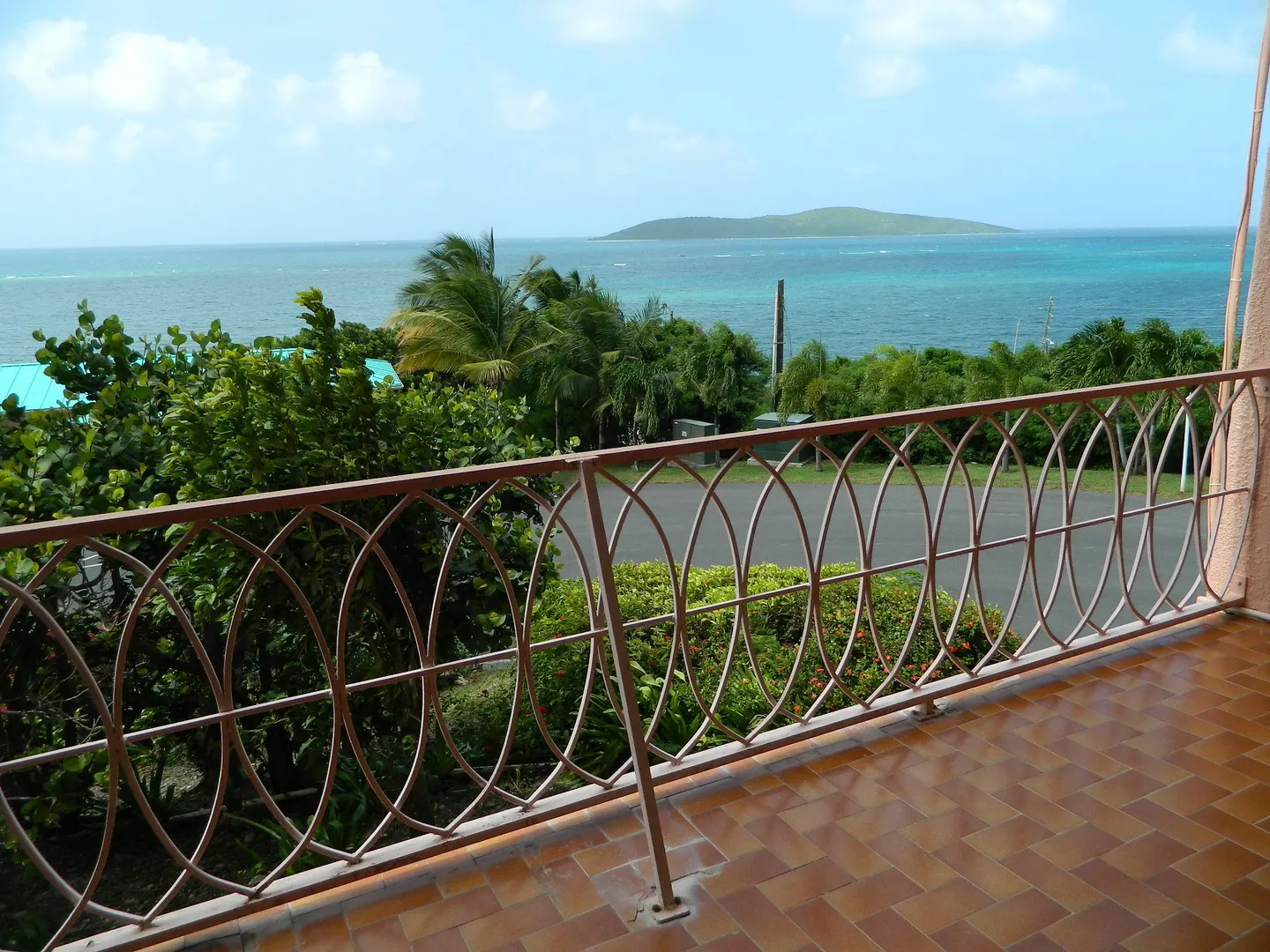 Million dollar view of Buck Island. Spacious 2 bedroom, 2 remodeled baths. Townhouse style with covered patios upper and lower levels to enjoy outdoor living. Upgrades include: Quality tropical style furniture, handpainted faux paint finishes on walls, washer/dryer, two split a/c units, storm shutters. Walk to beautiful pool and restaurant from A Building location. HOA fee includes generator/water/wifi/pest control/full insurance coverage. Owners allowed one small pet. Beaches nearby.