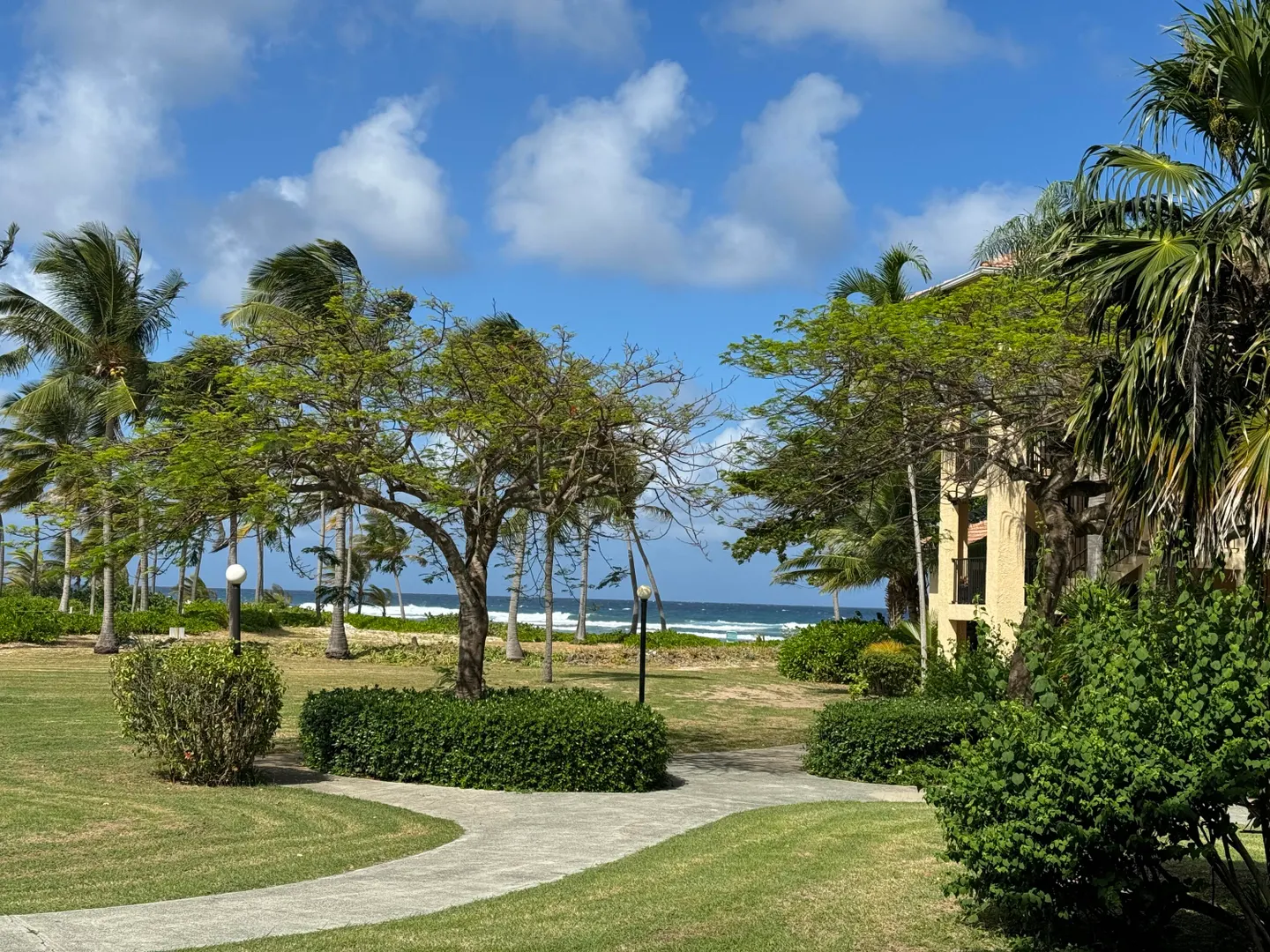 Escape to your own slice of Caribbean heaven! Presenting a wonderful opportunity to own a stunning 2-BR, 2-BA beachfront condo! This meticulously maintained ground floor unit features a spacious open kitchen w/ eat-in bar, dining area, the living room opens onto the covered gallery w/ outside dining to soak up sea breezes and views. The MBR also opens to the gallery & views & has en-suite bath. The guest bedroom also has en-suite bath which doubles as guest bath with access from the living/kitchen area. Each bedroom features ceiling fans and window A/C units for maximum comfort! Pelican Cove is a gated beachfront community with ample greenspace, large pool & sundeck, common area, pool side restrooms, mailboxes and long-term parking area.