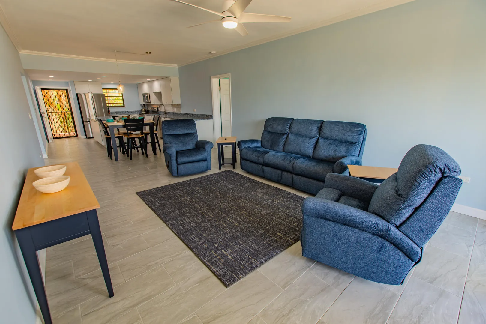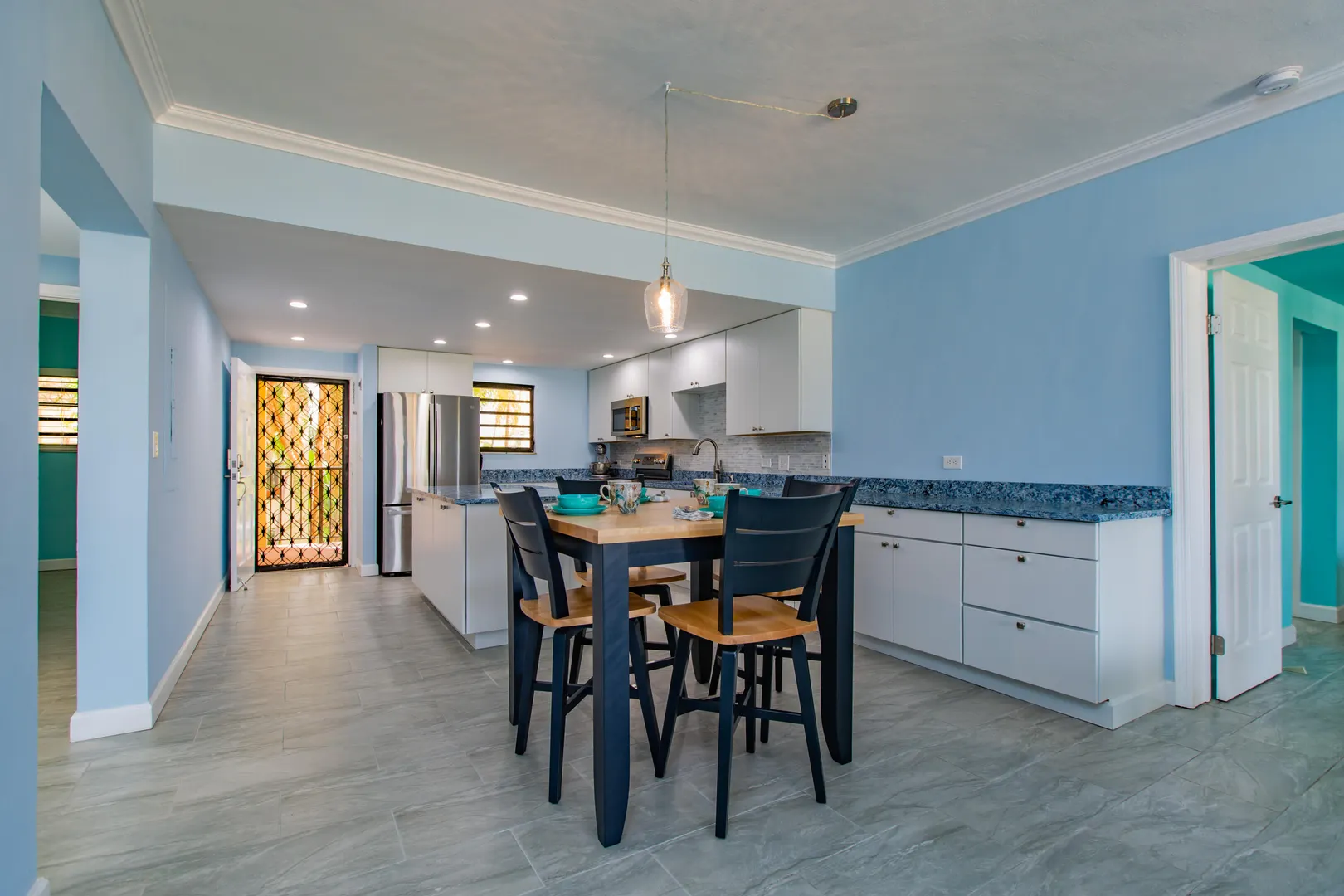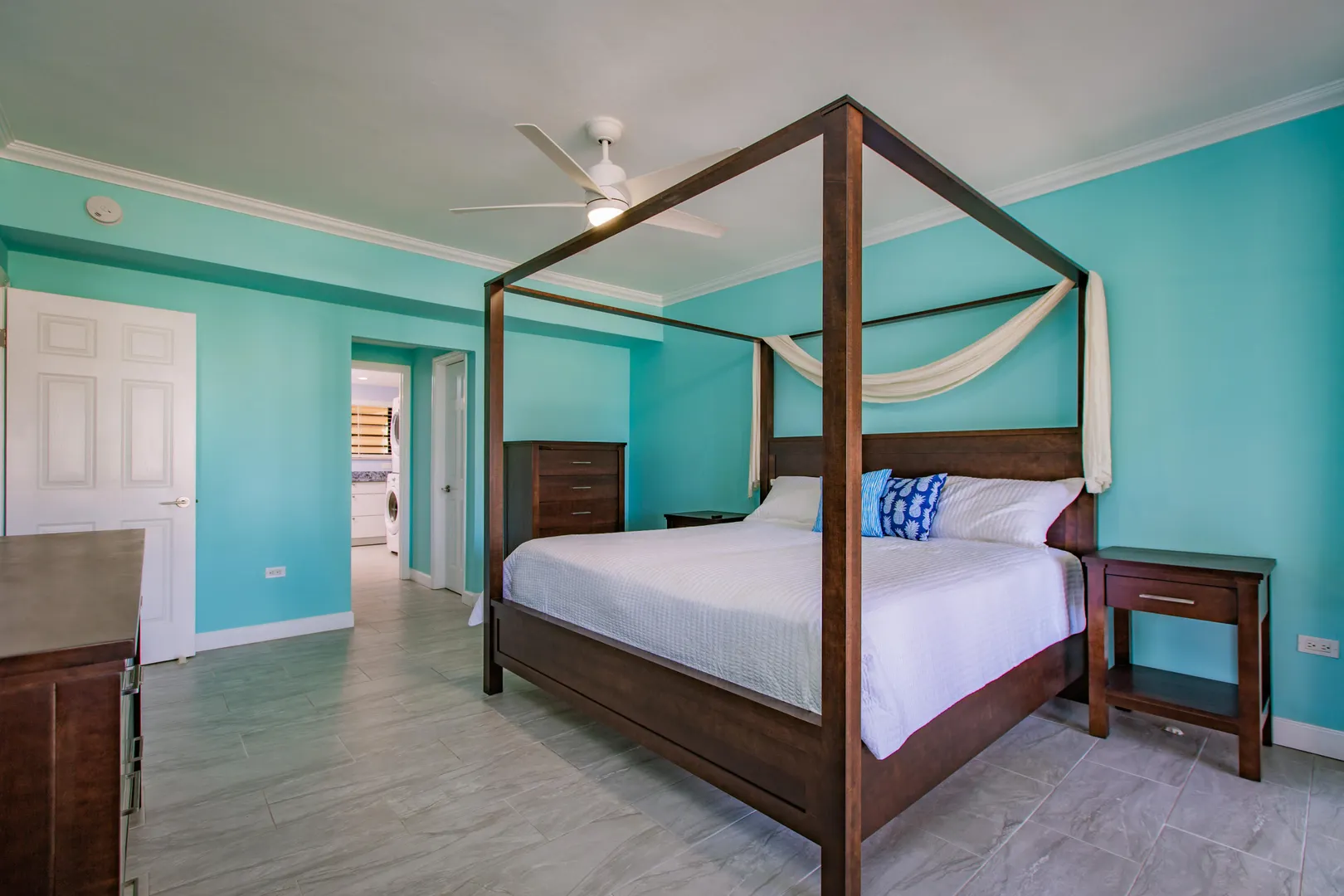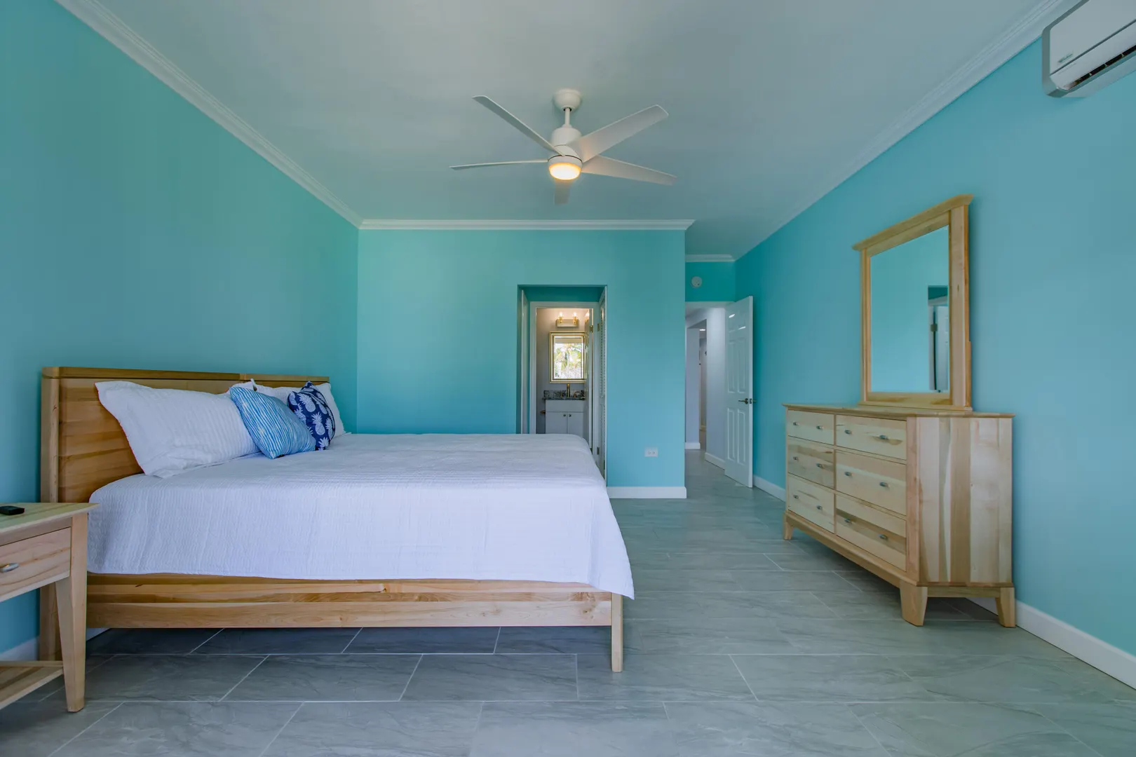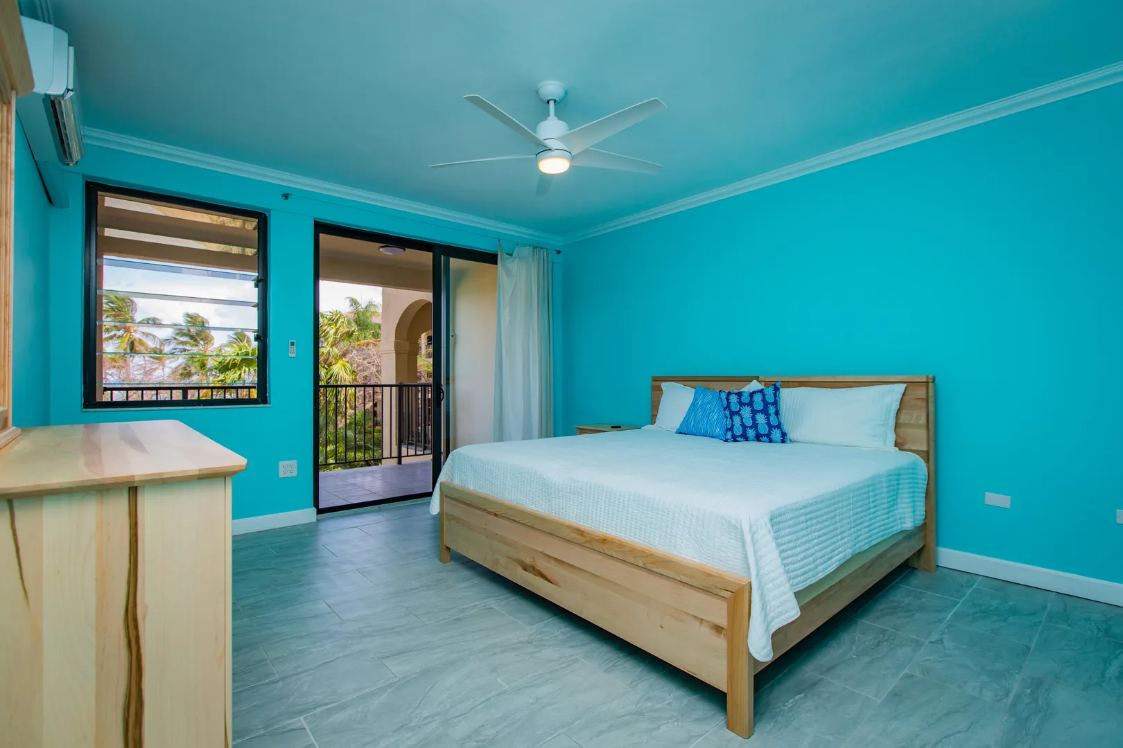 3-bedroom, 3-bath beachfront condo freshly remodeled from floor to ceiling - new everything!! Never rented - owner occupied! MOVE IN READY!! Brand new tile throughout, light fixtures, plumbing, ceiling fans, smoke detectors, garbage disposal, appliances, quartz countertops in both kitchen and baths. Main and 2nd bedrooms have sliders which open to the extra-long gallery and the ocean views - This condo has the BEST location in the American building! Pelican Cove is a well maintained, gated complex located just down the beach from The Palms at Pelican Cove Hotel with its bar and restaurant, or a quick 10-minute drive to downtown Christiansted. Make this your island home or vacation rental investment property