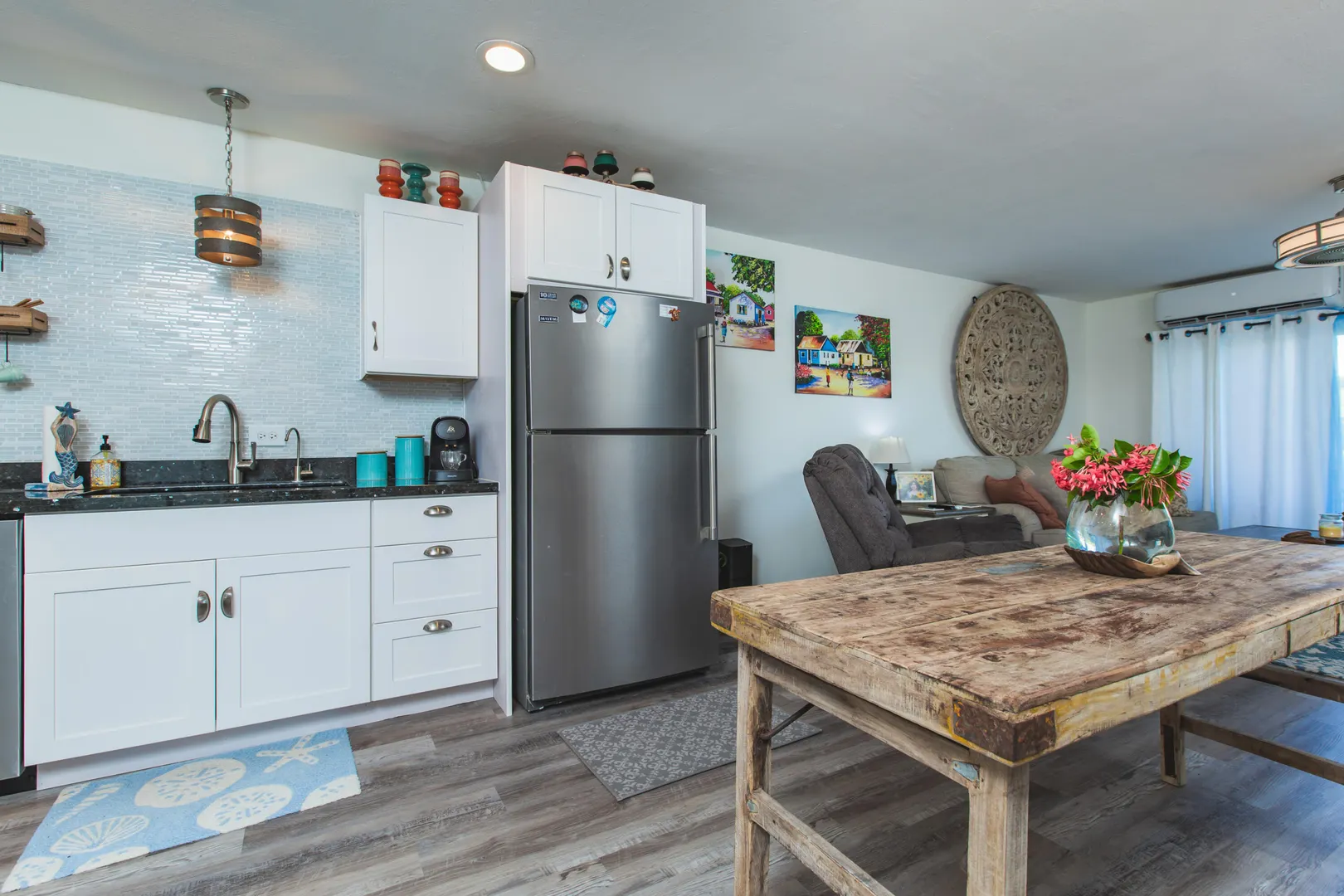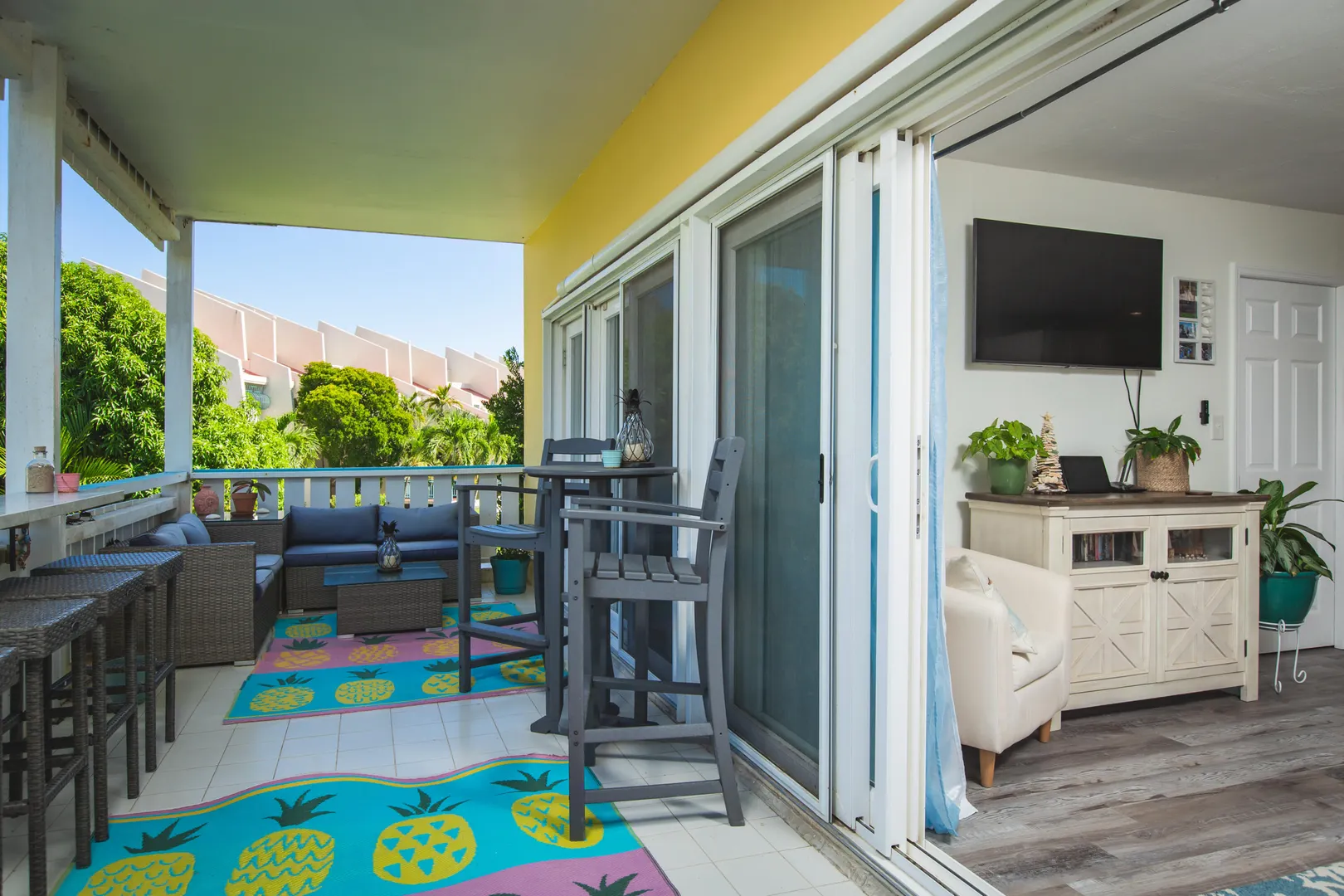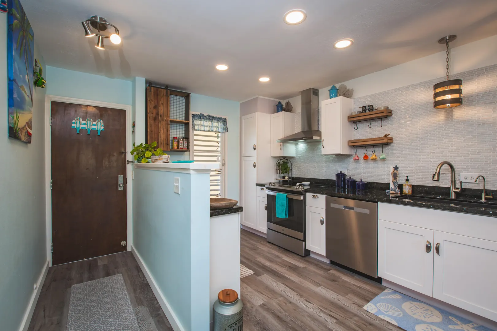 Let's talk about LOCATION! This 2-bedroom, 2-bath, upper END UNIT offers privacy and sweet sea views! Recently remodeled from top to bottom with new tile floors, new kitchen w/ granite countertops, soft-close cabinetry, tiled backsplash, water filtration & reverse osmosis, relocated W/D out of kitchen to add space, new sliders, new windows in MBR/MBA, new light fixtures, opened the enclosed gallery, new Split A/C's and even installed a Kegerator! This gated beachfront complex is surrounded by lush tropical foliage and is convenient for local area shopping, restaurants, gym and a quick drive downtown to Christiansted which is located just across the harbor!