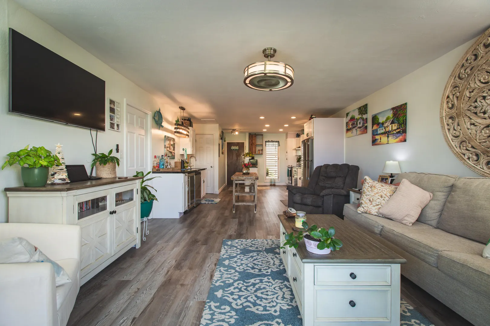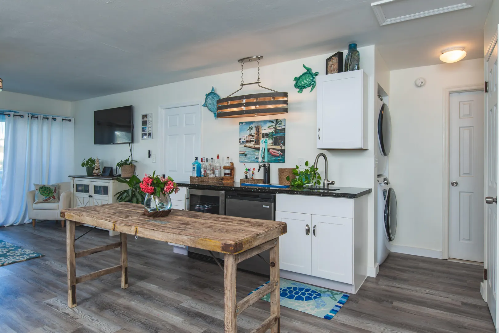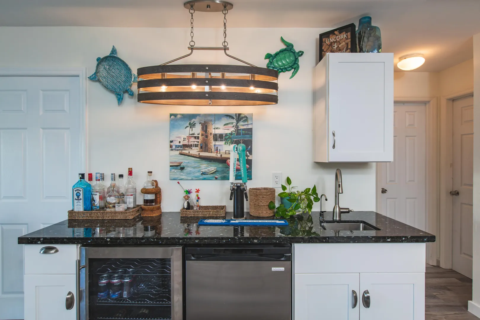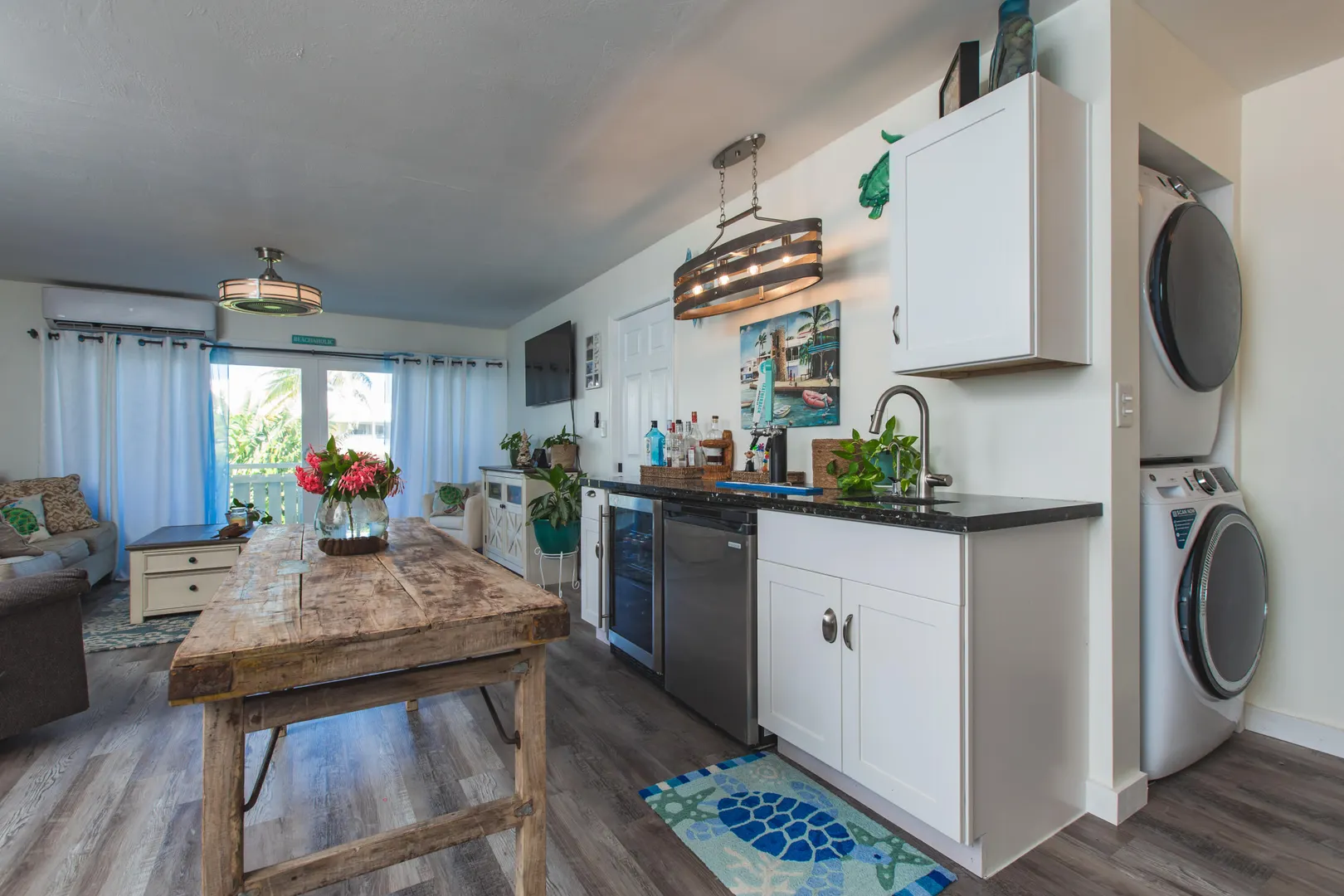 Let's talk about LOCATION! This 2-bedroom, 2-bath, upper END UNIT offers privacy and sweet sea views! Recently remodeled from top to bottom with new tile floors, new kitchen w/ granite countertops, soft-close cabinetry, tiled backsplash, water filtration & reverse osmosis, relocated W/D out of kitchen to add space, new sliders, new windows in MBR/MBA, new light fixtures, opened the enclosed gallery, new Split A/C's and even installed a Kegerator! This gated beachfront complex is surrounded by lush tropical foliage and is convenient for local area shopping, restaurants, gym and a quick drive downtown to Christiansted which is located just across the harbor!