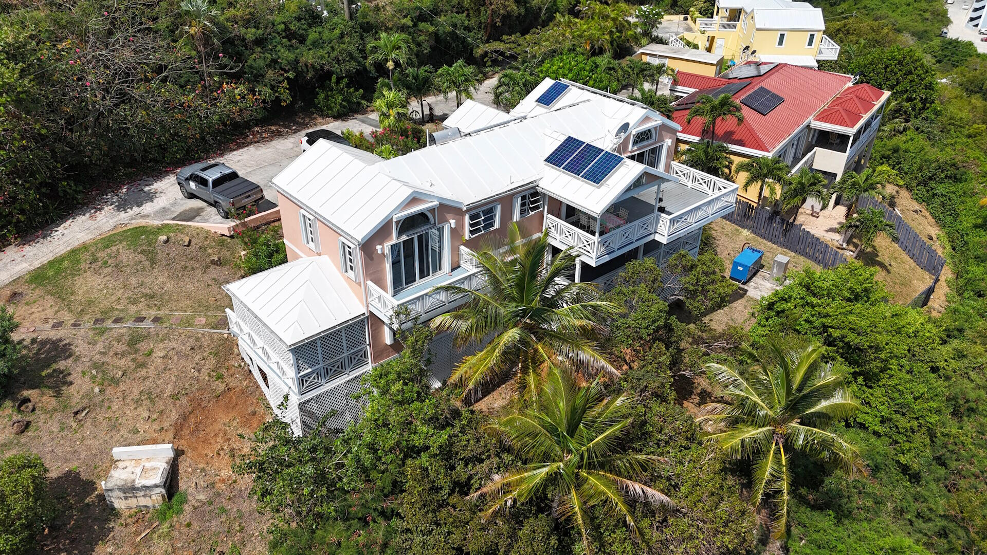 Charming Three Bedroom Three Bath Home with pretty Magen's Bay views, great breezes, a cozy apartment and solar! Centrally located on the cool north side, this family home is minutes to the beach, restaurants, shops and town. Priced to sell. Come take a look today!
