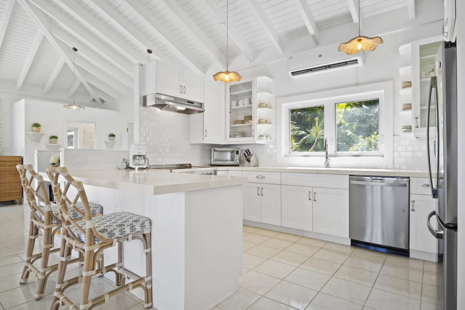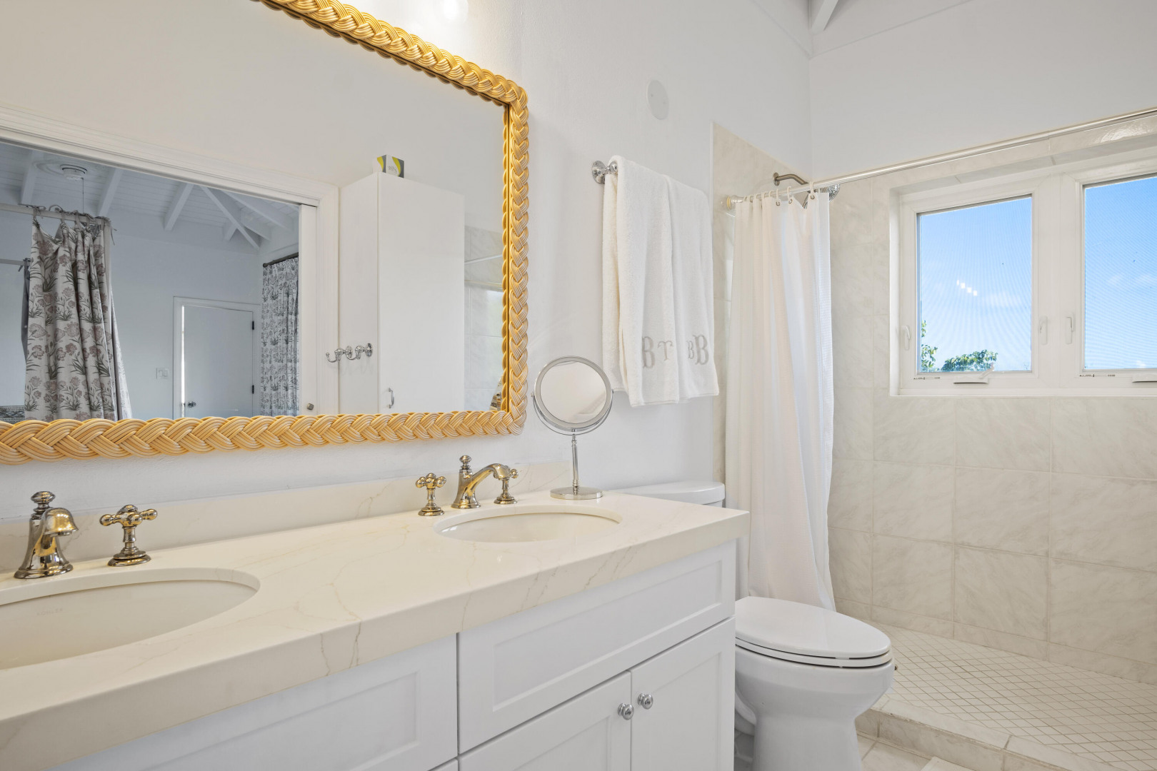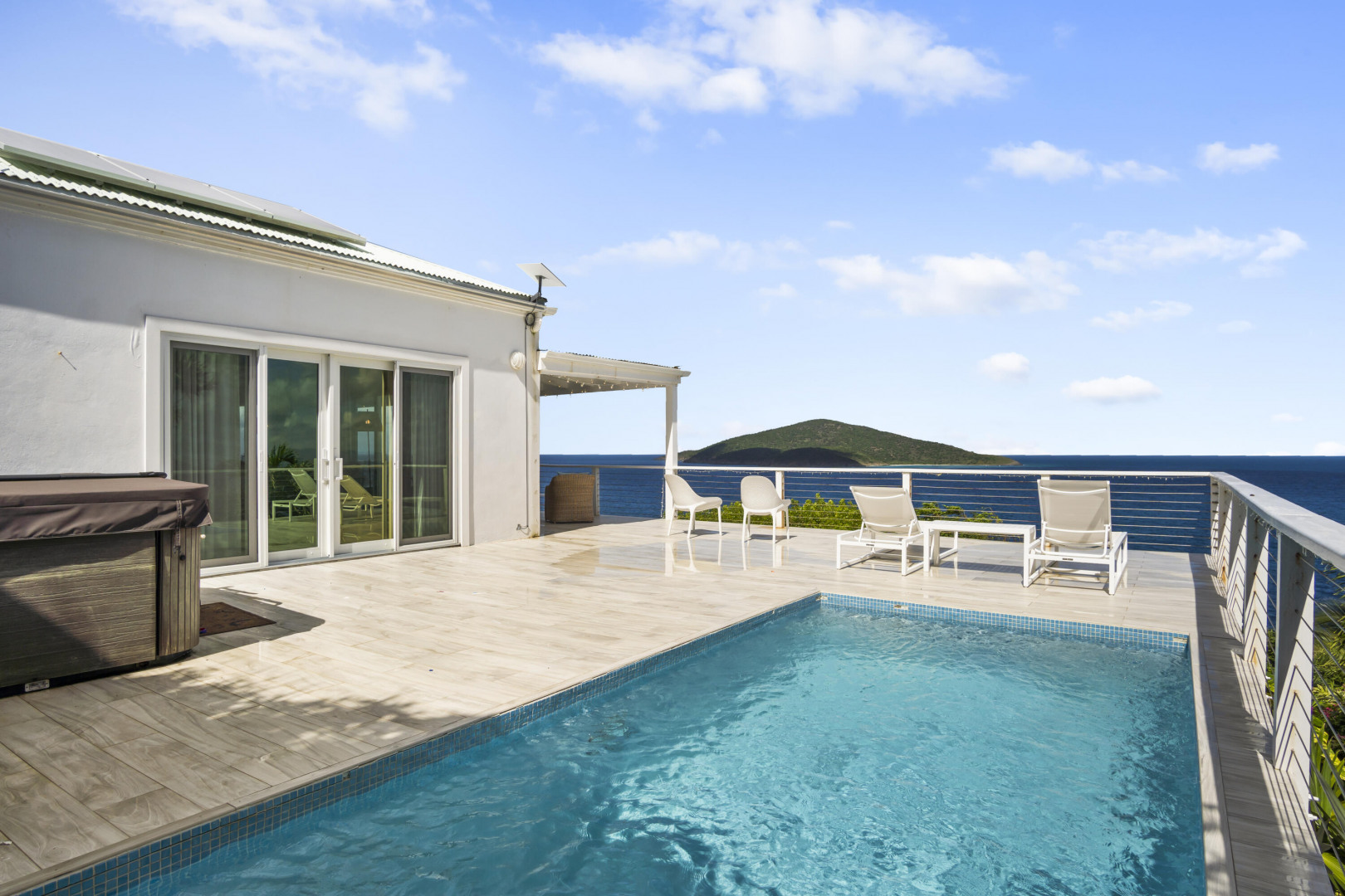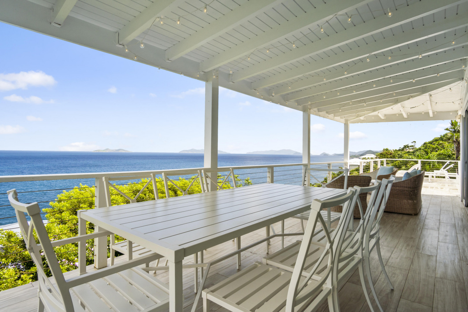 Located in the gated neighborhood of Mahogany Run, this beautifully updated 3-bedroom, 3.5-bath home offers breathtaking down-island views. Designed with energy efficiency in mind, the property features 31 solar panels, three Tesla power walls, and a solar hot water heater. The home boasts new impact windows, a remodeled kitchen and bathrooms, and professionally decorated interiors, creating a stylish and inviting living space- All conveniently situated under one roof. Step outside to enjoy expansive covered porches, a private pool, and a relaxing hot tub, perfect for taking in the stunning surroundings. Every detail has been carefully considered to enhance your living experience.