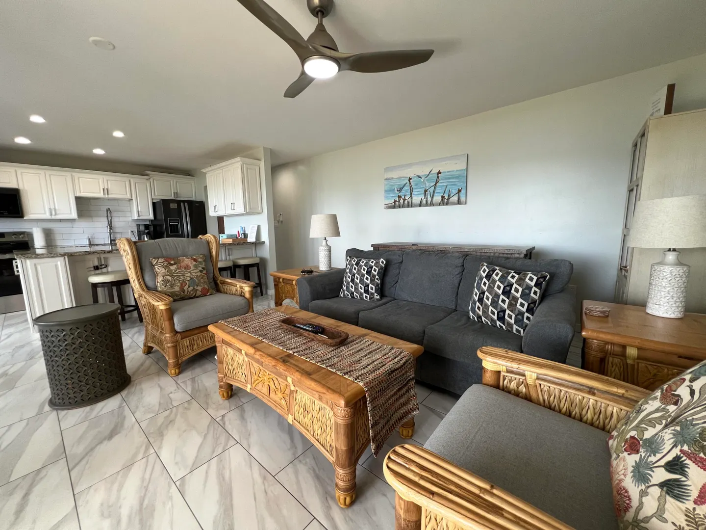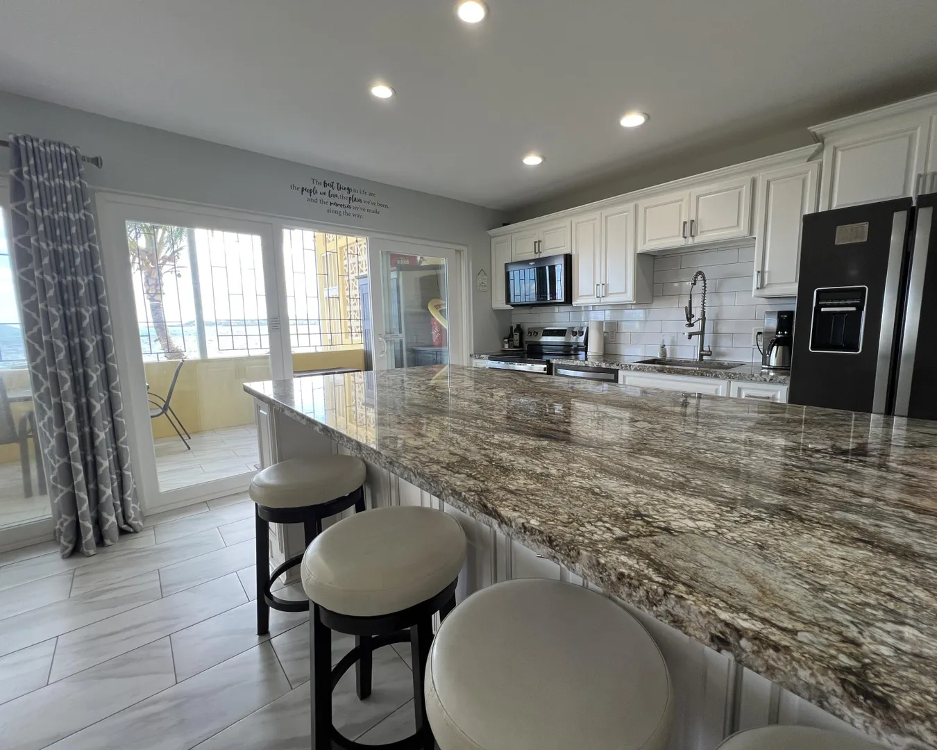 Live your best Caribbean life in this 2/2, ground level, beachfront condo - renovated from top to bottom - everything brand new! Barn doors, granite countertops, tri-zone split A/C system, recessed lighting - the best feature is the 200+ sq ft gallery with direct access to the beach. This gated complex is located across the harbor from downtown Christiansted, close to restaurants, shops, and Protestant Cay.