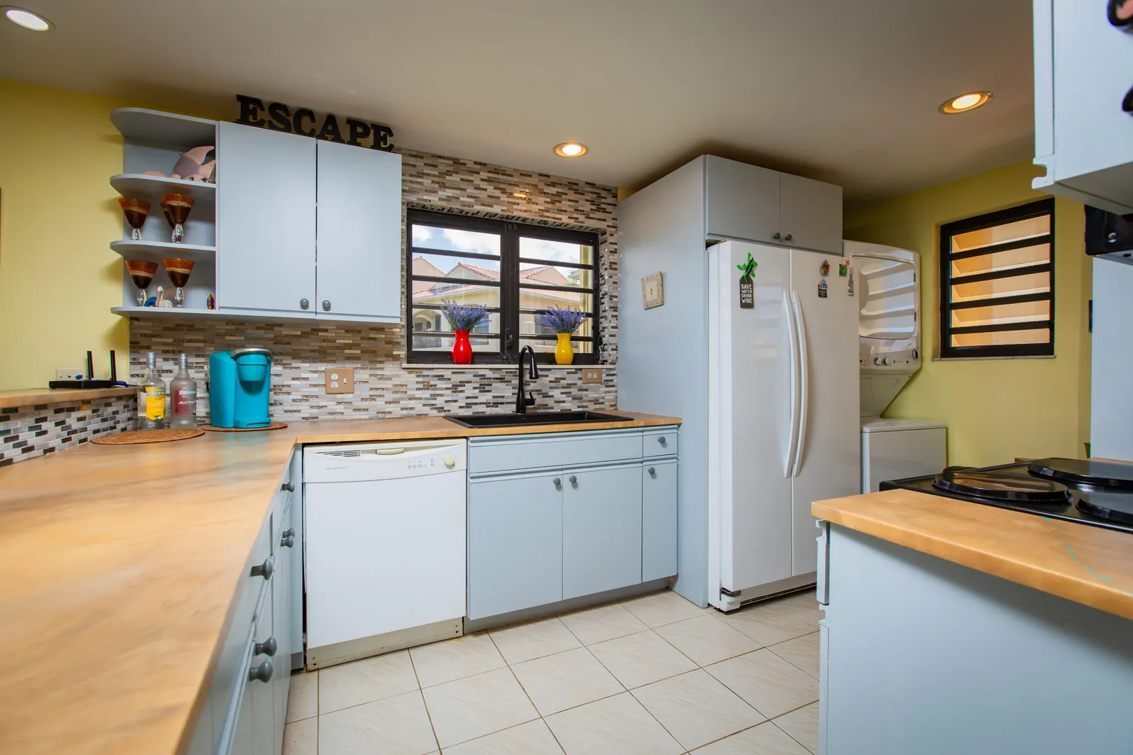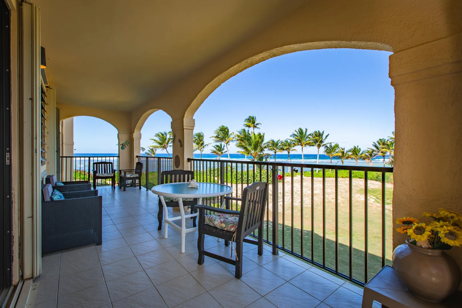 Stunning beachfront condo! Lovingly maintained by owners - never rented! This 2nd floor, corner unit features 2-bedrooms, 2-baths, extra long gallery, washer & dryer in unit, new kitchen countertops & cabinets, farm sink, remodeled baths, crown molding in the living room and is bright, breezy and ready for new owners! This gated community is located beachfront in Estate La Grande Princesse, right next to the Palms at Pelican Cove Resort. The grounds are lush and well maintained, large pool area w/ Jacuzzi, common area and poolside rest rooms. Post office boxes and long term parking area available too!