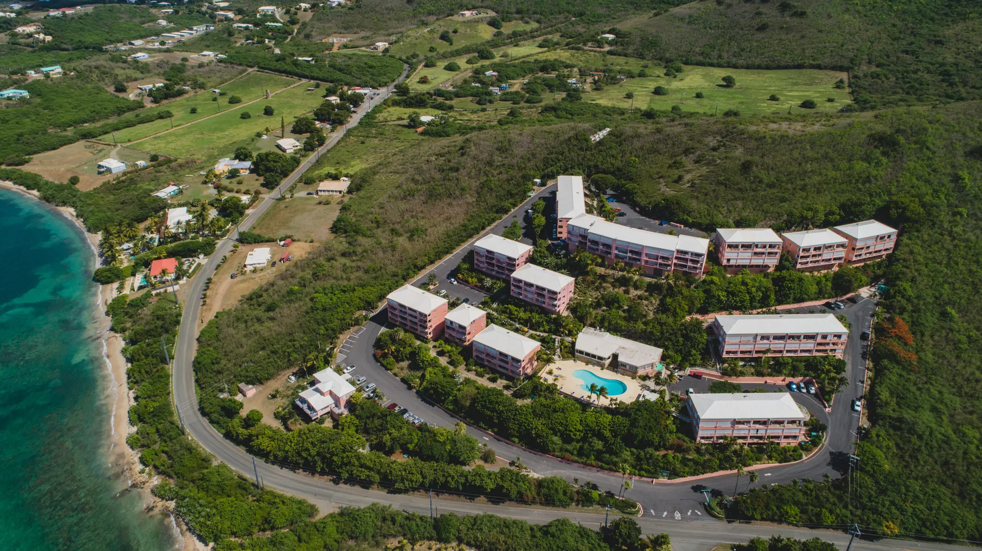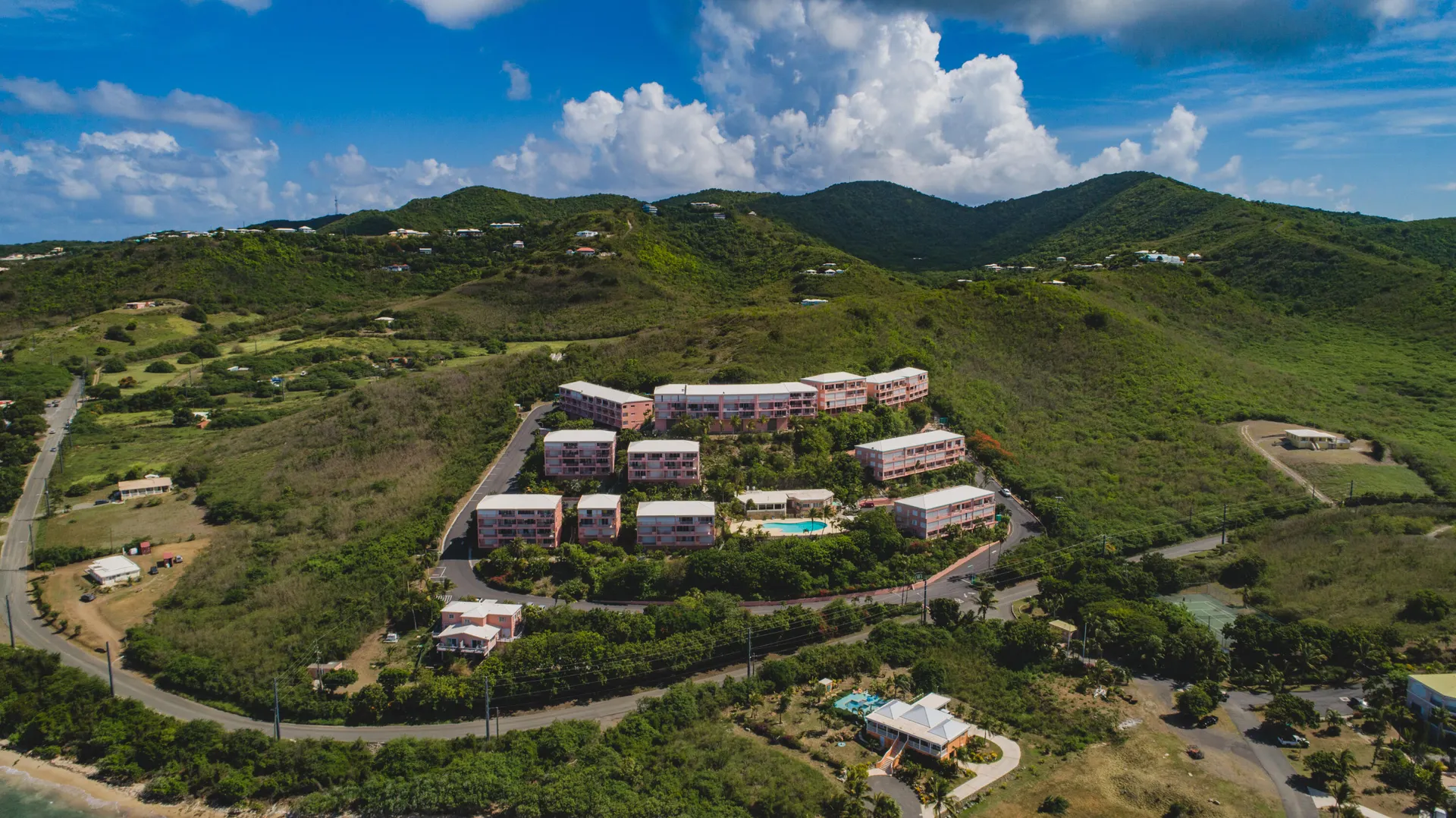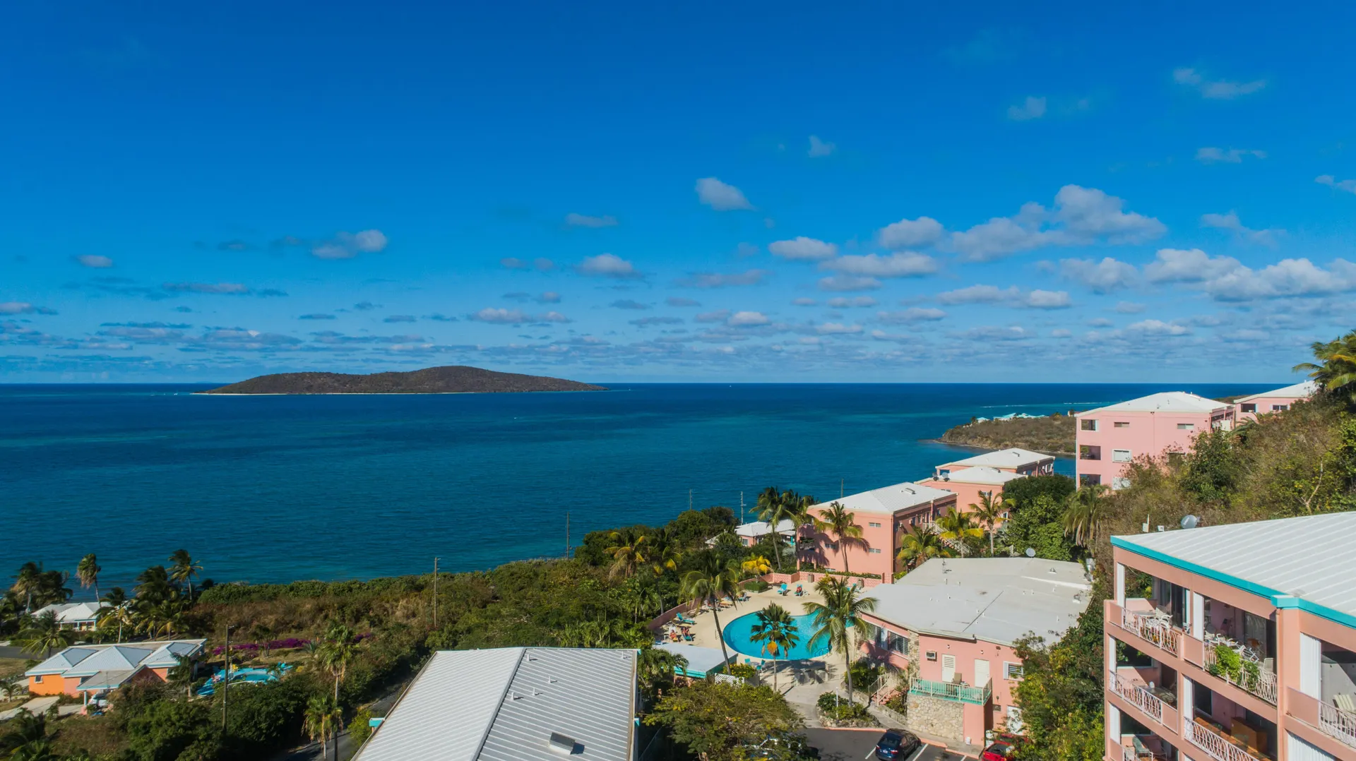 Conveniently located, this 2-bedroom, 2.5 bath, two story condo is the ideal location for your Caribbean winter getaway! This well-maintained end unit condo is a turn-key property and features half bath on upper level, dual galleries, washer & dryer in 2nd BR closet, split A/C units, remodeled walk-in closet in main bedroom and stunning Buck views! Parking located right outside, kitchen & living areas located on upper level, bedrooms on lower.This popular east end complex has a back-up generator and the seasonal restaurant ''Goat Soup & Whiskey'' overlooking the large pool and sundeck.