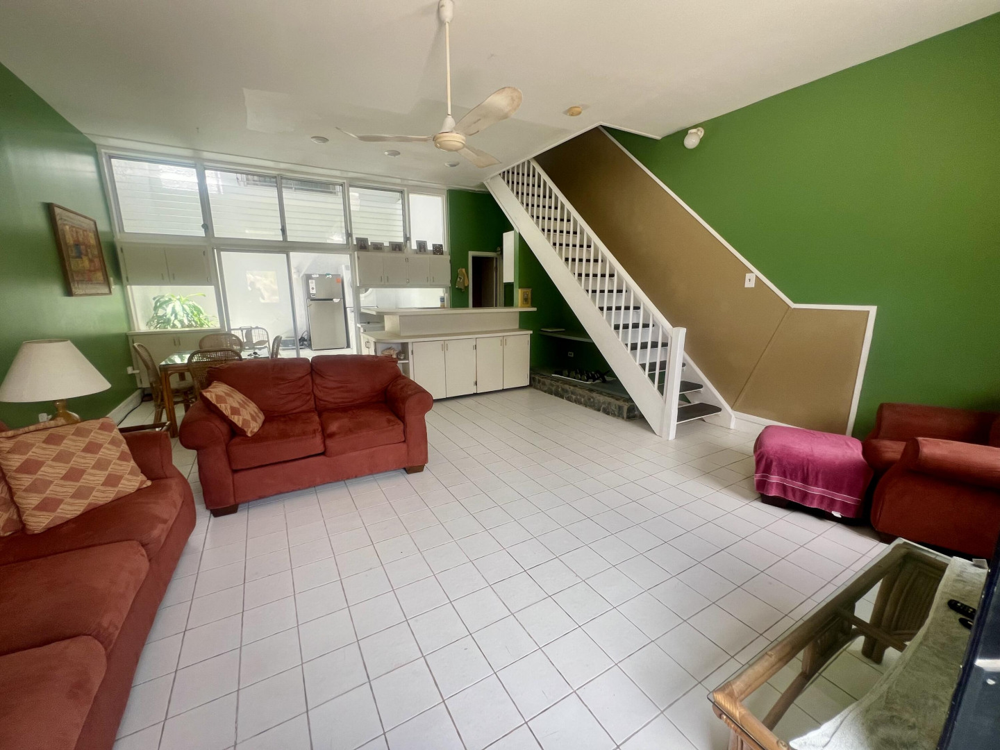 Welcome to this walk-in level 2-bedroom, 2.5-bath condo in the gated and conveniently located Questa Verde community. Bright and airy, the unit is filled with natural light and features a partially enclosed atrium with live plants, bringing a unique touch of tropical charm indoors. Enjoy slight south-facing sea views and the fresh island breezes right from your living space. Designated parking adds convenience, while the large pool area and beautifully maintained landscaping create a peaceful environment to relax and unwind. Perfect as a full-time residence or island getaway, this move-in-ready condo offers the best of easy Caribbean living. Don't miss your chance to call Questa Verde home! Located just minutes from downtown Christiansted, grocery store, St. Croix Tennis Club and beaches.