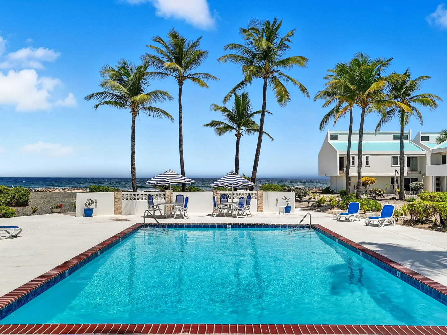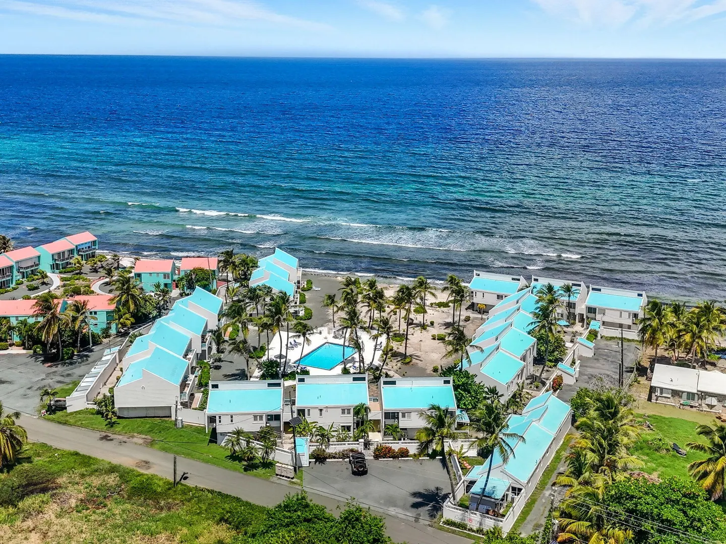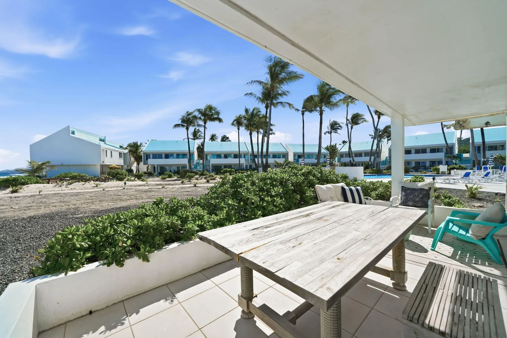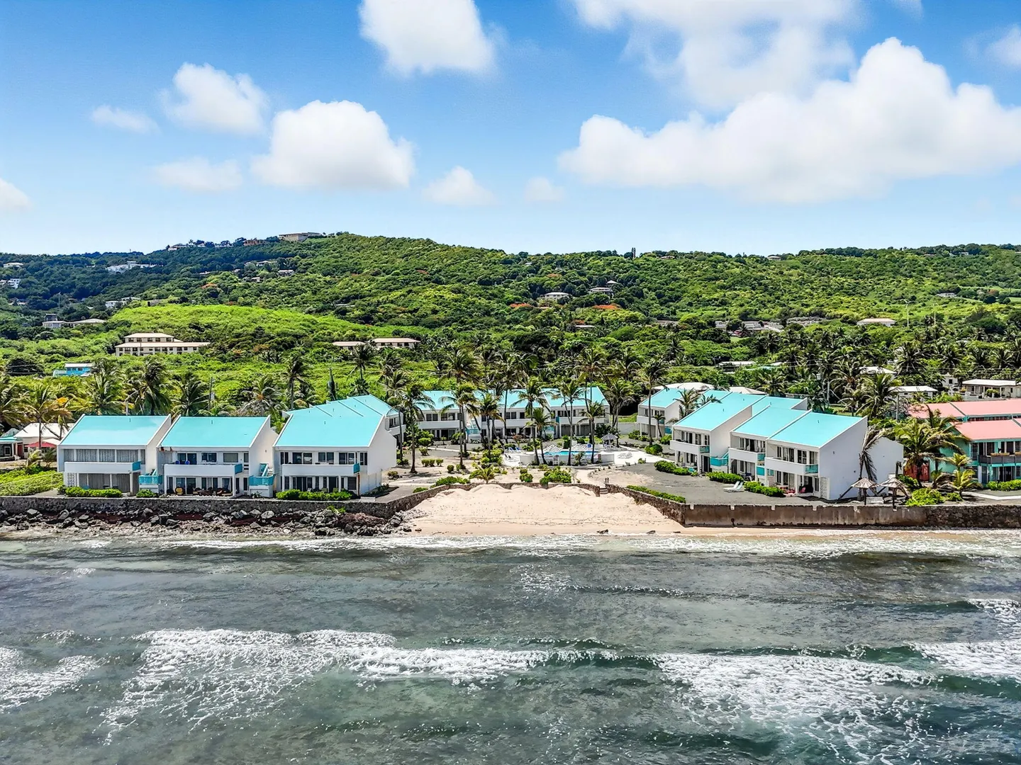 Ground-floor one-bedroom beachfront condo at Cruzan Princess with Buck Island and Caribbean Sea views from both the living room and bedroom. Steps from the pool and sandy beach, this fully furnished, turnkey unit is ideal as an immediate income-producing vacation rental or a move-in-ready personal retreat. Hurricane-rated sliding glass doors open to a spacious covered gallery, allowing seamless indoor-outdoor living with air conditioning or cooling trade winds. Northeast exposure provides steady breezes and beautiful sunrises. Tastefully furnished in a modern, understated coastal style, this condo offers effortless island living with proven rental success.Offered fully furnished, this unit is thoughtfully equipped for easy ownership and immediate vacation rental use, including backup linens and a well-stocked kitchen setup. Air conditioning, on-site laundry, and a compact, efficient kitchen with solid concrete countertops enhance comfort and functionality. Additional features include a tiled walk-in shower, tankless water heater, and a large walk-in closet with generous storage.