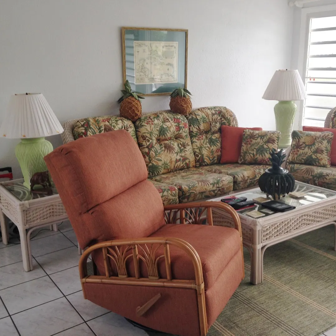 Easy access to this very nice 1st floor condo in excellent condition. Kitchen and bathrooms recently re-done, nice breezy unit with excellent sea views including Buck Island. Fully furnished, ready to move into and perfect for short term rentals or year round living.