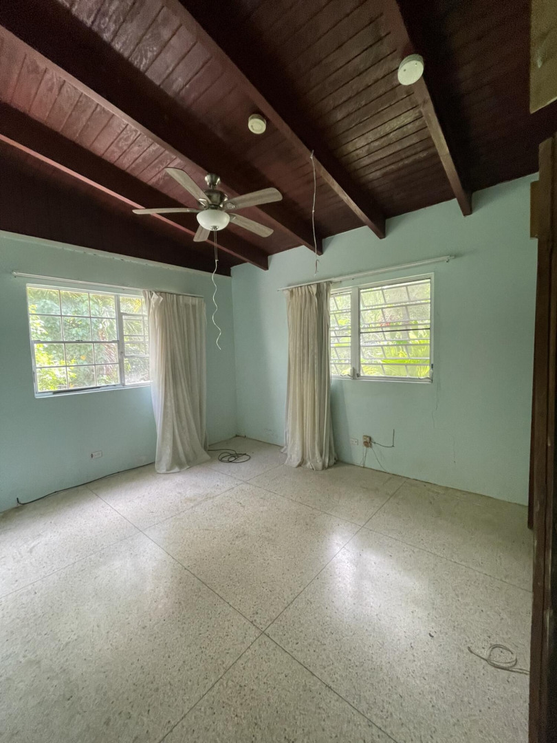 Delightful view over Magens Bay, three bedroom/two bath home centrally located for convenient access to town, beaches and shopping. Come put some shine on this property with a spacious kitchen, living room and a breezy covered porch to enjoy the view of turquoise Magens Bay. Below, a separate 2-bedroom/two bath apartment offers excellent rental income potential or space for guests. Don't miss the opportunity to own a piece of paradise.