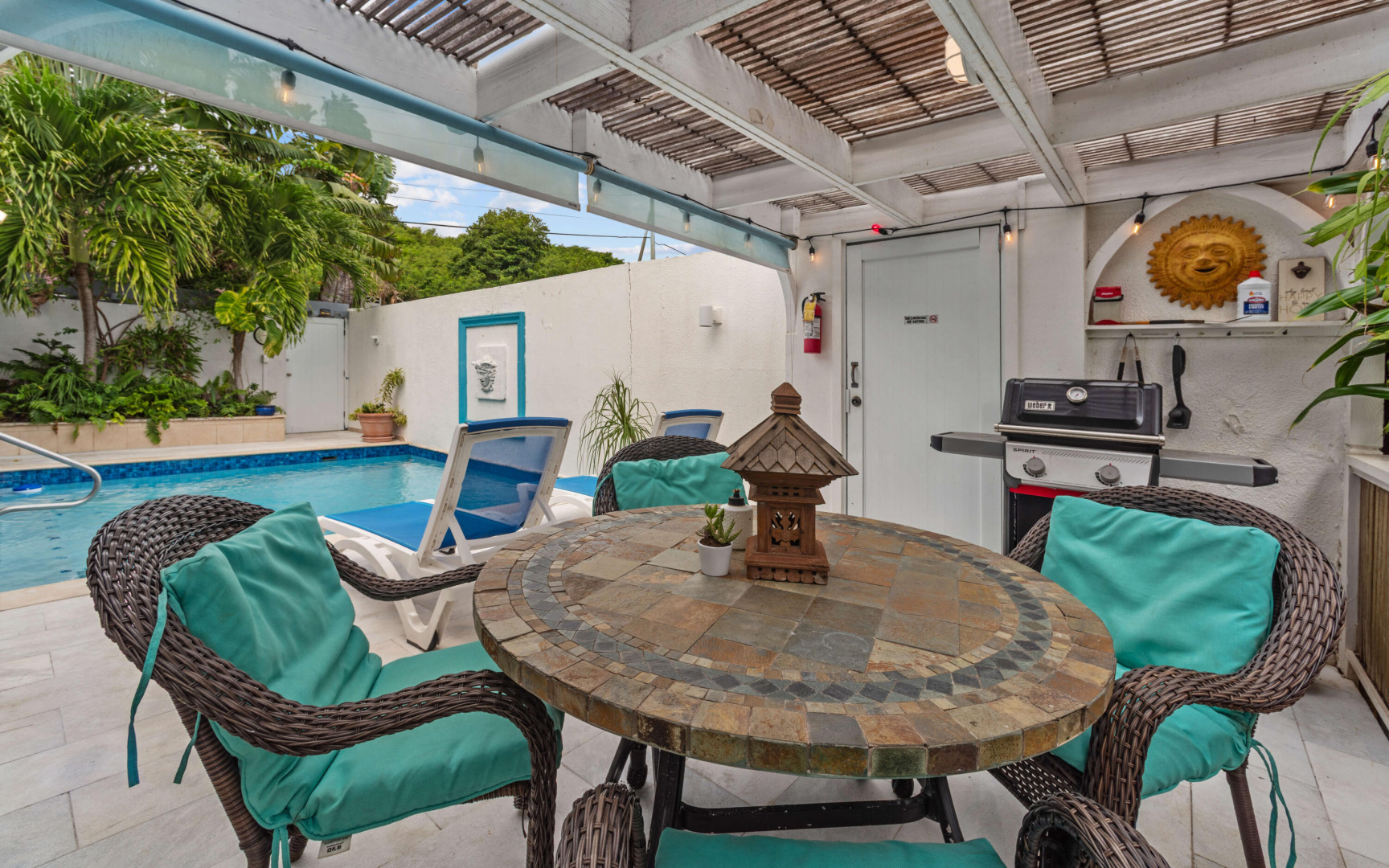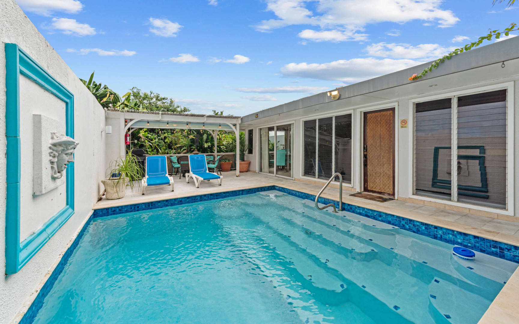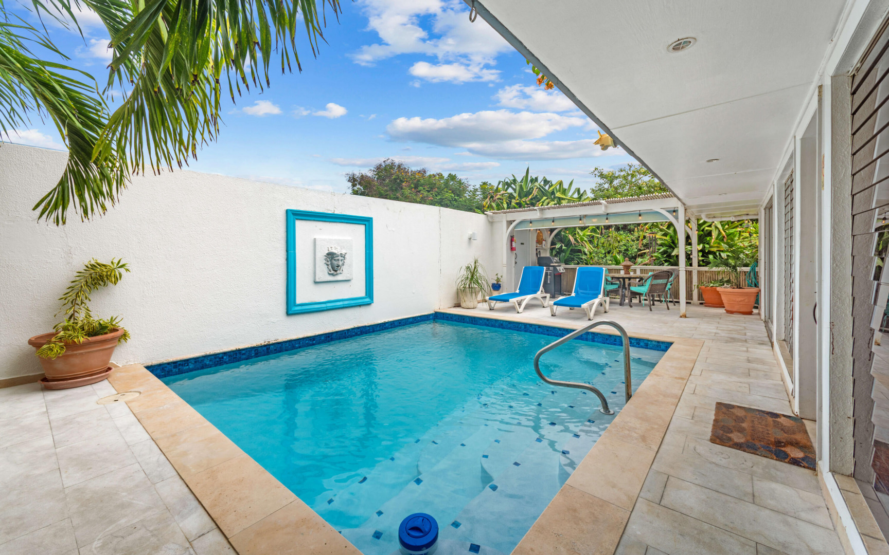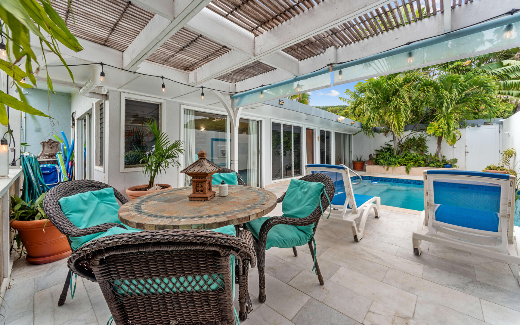 Welcome to Pavilions and Pools, perfectly positioned on St. Thomas's desirable East End between Sapphire Beach and Lindquist Beach. This fully furnished, turnkey villa is one of the closest units in the complex to the soft sands of Sapphire Beach, offering both convenience and privacy in a lush, tropical setting.Just refreshed, the villa's private pool has been completely resurfaced with new coping tiles, waterline tiles, and a Diamond Brite finish. Inside, the home has been freshly painted and enhanced with a few new furniture pieces, creating a bright, inviting coastal atmosphere.Designed for comfort and seclusion, this villa features marble tile decking, vibrant landscaping, and its own private pool--ideal for relaxing or entertaining. Located just minutes from the Red HookFerry Terminal and the area's popular restaurants and shops, you'll enjoy the best of island living right at your doorstep.
