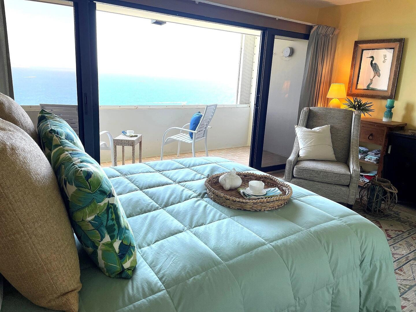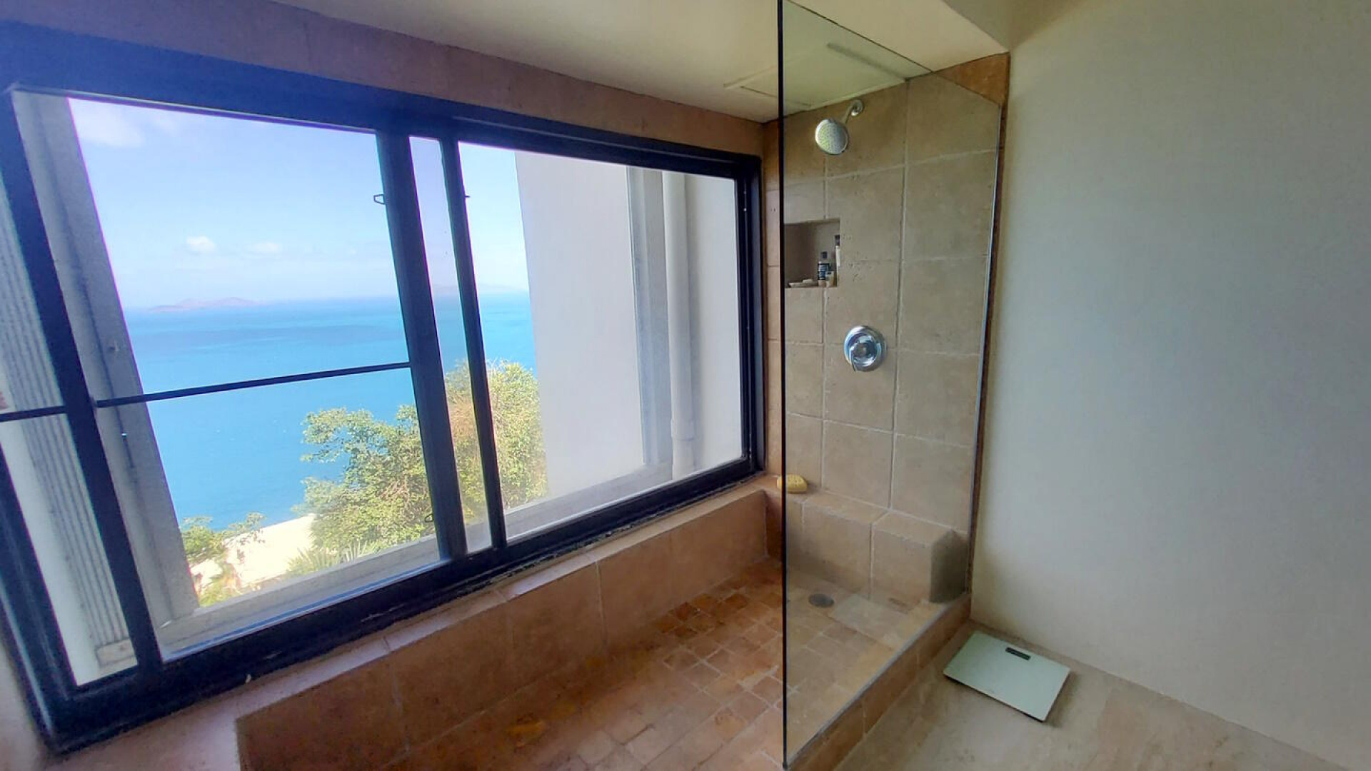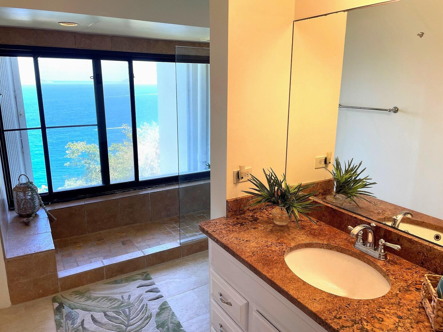 AN OCEAN VIEW FROM EVERY ROOM. This quiet and very private one bedroom condominium offers stunning ocean and down island views. The remodeled kitchen features Cambria quartz counter tops, custom cherry cabinets and stainless steel appliances. The remodeled bath has a granite vanity top and large walk-in shower overlooking the ocean. This freshly painted condo also features Italian porcelain tile floors, 2 Hunter original ceiling fans, 2 Mitsubishi mini-split air-conditioners and heavy duty accordion hurricane shutters. A 40Kw diesel generator powers all 3 units in the building when the power goes out. Designer furnishings by Silk Greenery, Ballard and other fine furniture makers. A short walk takes you to the Sanderling Court swimming pool. Owner is a licensed VI Realtor.Some owners at Mahogany Run have opted, at their expense, to replace some or all of their sliding glass doors and windows. Call Marsha for more information on current pricing. Please note that reduced price reflects that cost.