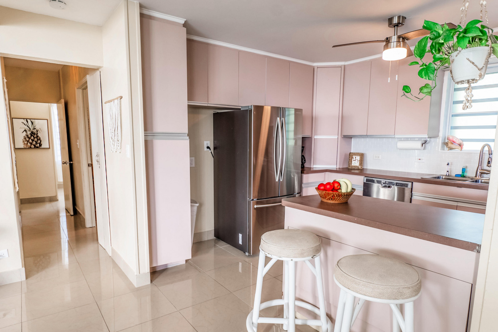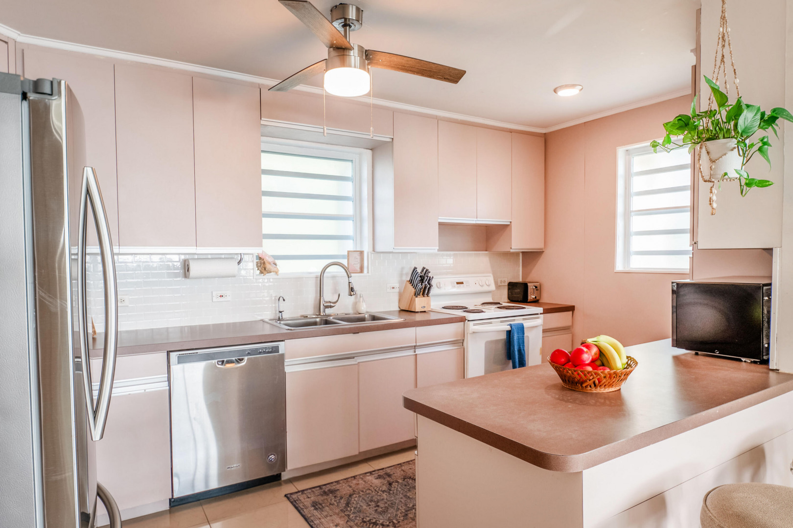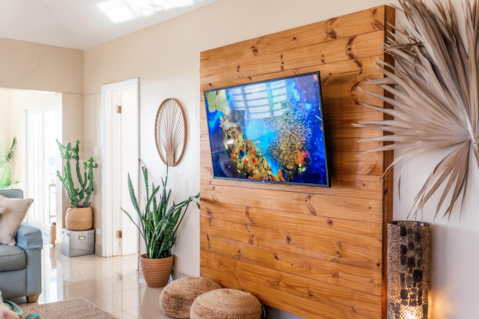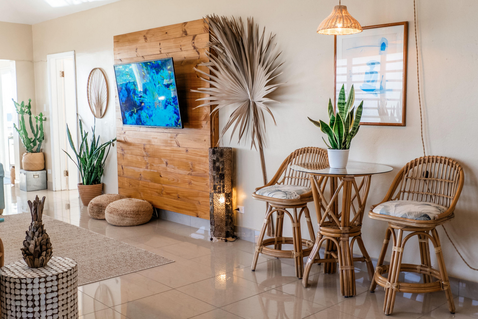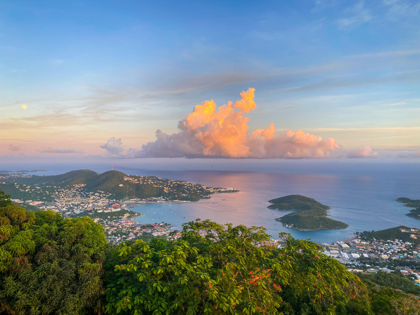 Nestled in an tropical oasis, this spacious 3-bedroom, 2-bathroom condo offers the perfect blend of comfort and convenience. Just steps away from the world-renowned Mountain Top, you'll enjoy panoramic views that stretch from the British Virgin Islands and St. John to Puerto Rico, St. Croix and Water Island. Inside, the open-concept living space is flooded with natural light, offering a welcoming atmosphere for both relaxation and entertaining. The interior of the condo is a boho dream! Offering a well-appointed kitchen, modern bathrooms, and perfectly imagined bedrooms ensure that every inch of this home is designed for comfort, style and storage. Additionally there is a generously sized attic space with full stair case, awaiting your finishing touches. Welcome home!