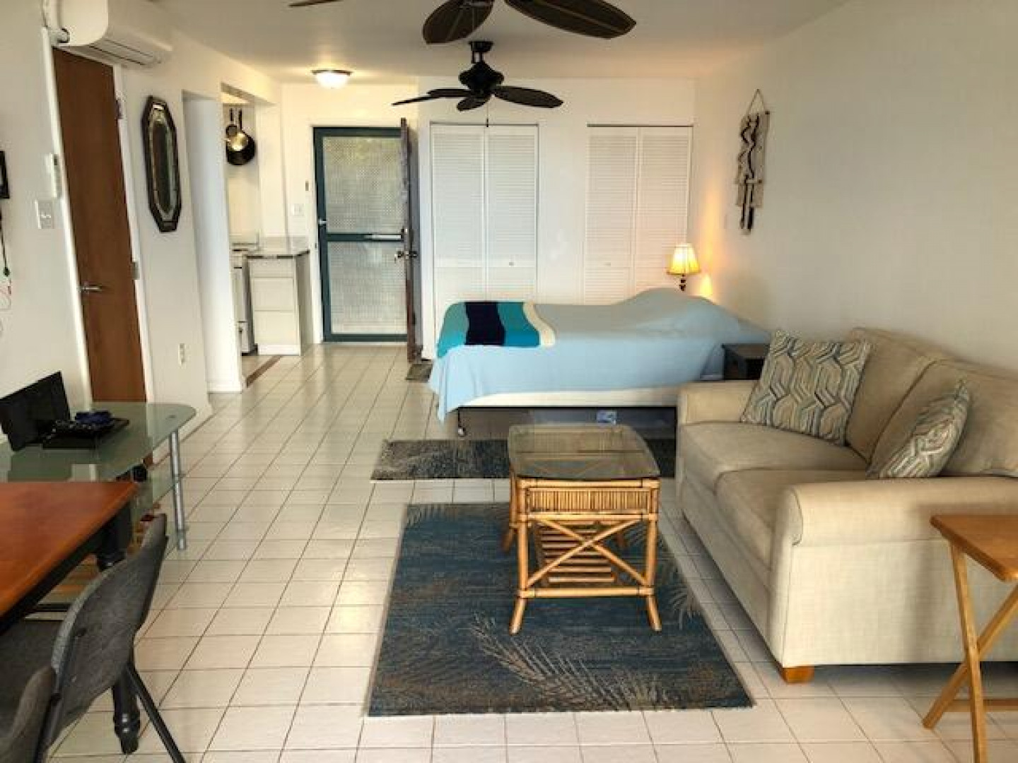 This studio is located in the most sought after building in Sapphire Village. The renovation in 2018 included all new electrical, plumbing drywall, sliding door and hurricane shutters. Sapphire is the perfect location with two pools, Sudi's restaurant and walking distance to the beach. It's less than a mile to Red Hook and the ferry dock. There is mail service and an on site laundry room.