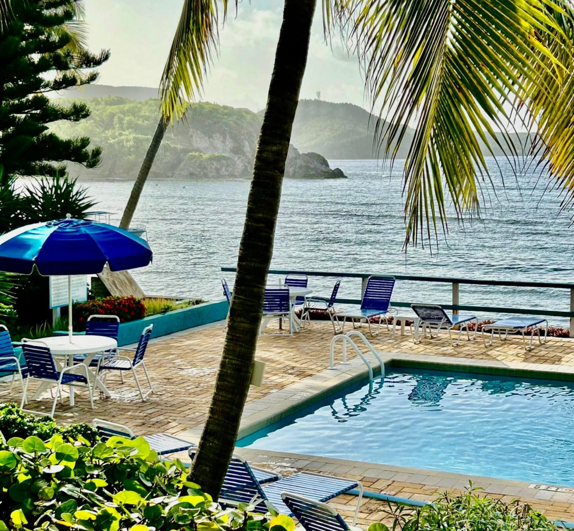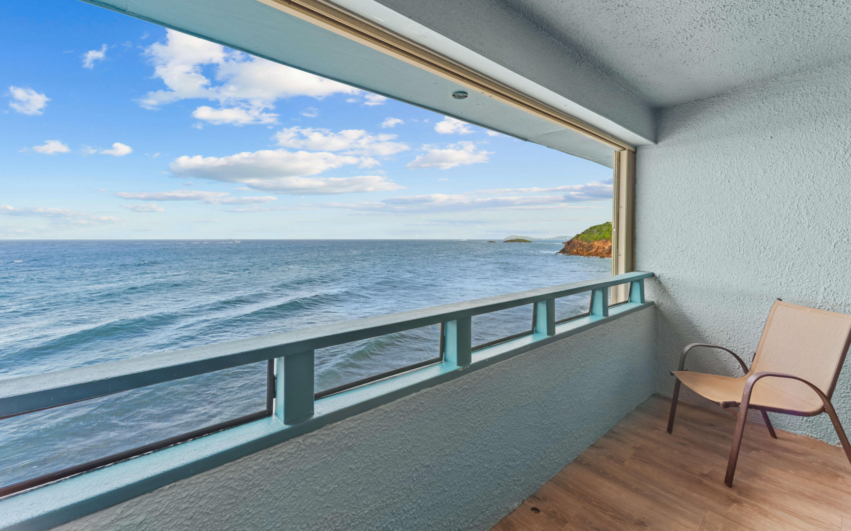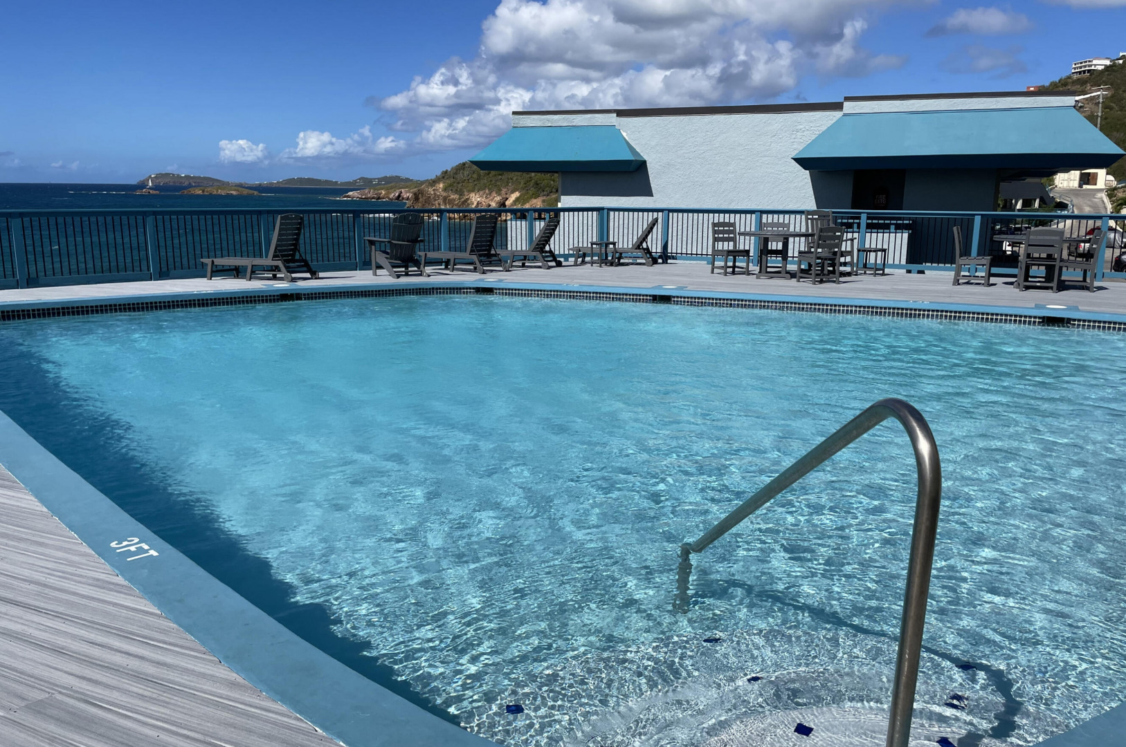 From this TOP FLOOR seaside condominium you'll be surrounded by sweeping, unobstructed views of the Caribbean Sea. The perfect backdrop for island living. Enjoy direct access to three sparkling pools, tennis and pickleball courts, basketball, and nearby Bolongo Bay Beach Resort. Whether you're relaxing on your private balcony, hosting friends for sunset cocktails, or snorkeling off the beach, every day feels like VACATION. PET LOVERS will be happy to know that four-legged friends are welcome (with Board Approval). For those looking to generate income, short-term rentals are permitted. SEA CLIFF VILLAS offers the best of island conveniences and coastal tranquility, all within a gated community that captures the essence of tropical resort living.