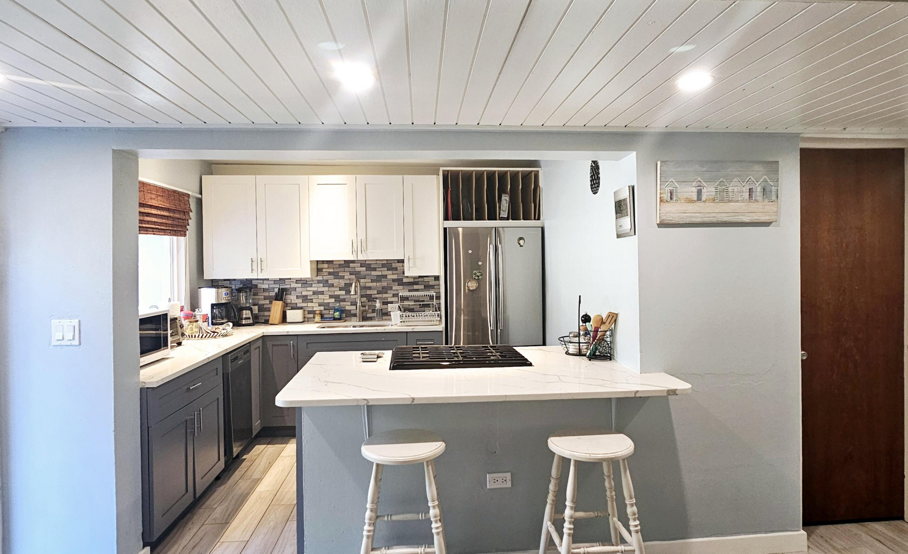 Don't miss this beautifully renovated 3-bedroom, 3-bathroom condo, just steps away from the beach! The main unit currently features 2 bedrooms and 2 bathrooms, with a separate third bedroom that has its own private entrance--perfect for vacation rentals or easily converted back into part of the main space. This property comes fully furnished, making it move-in ready. Enjoy the fresh new landscaping in the courtyard and peace of mind with a 20KW diesel generator ensuring constant power. The HOA dues cover windstorm insurance, trash service, and landscaping beyond the courtyard walls. Residents of Margaritaville Resort enjoy a variety of amenities, including a restaurant, coffee shop, and gym/spa. The condo allows two pets with board approval. Buyer to verify all information.