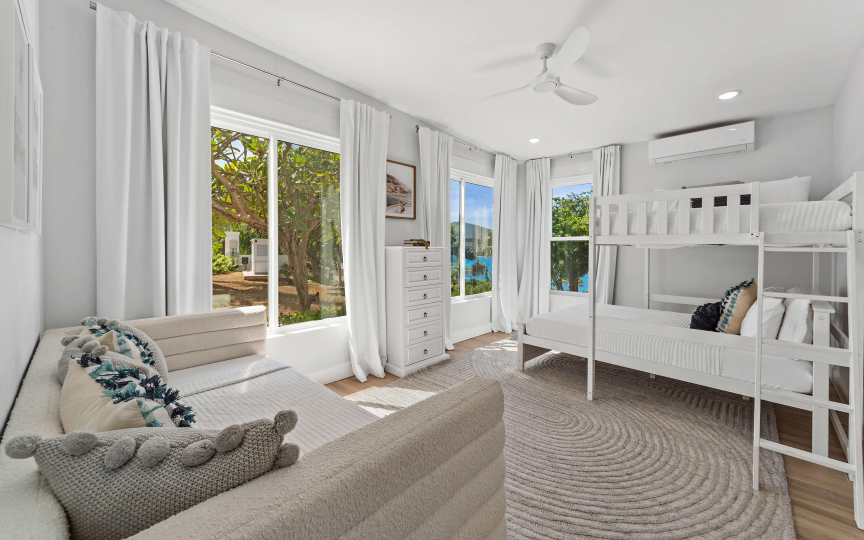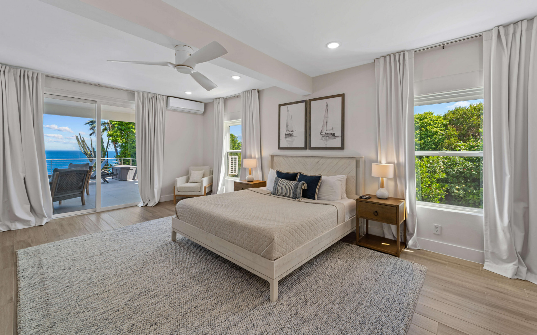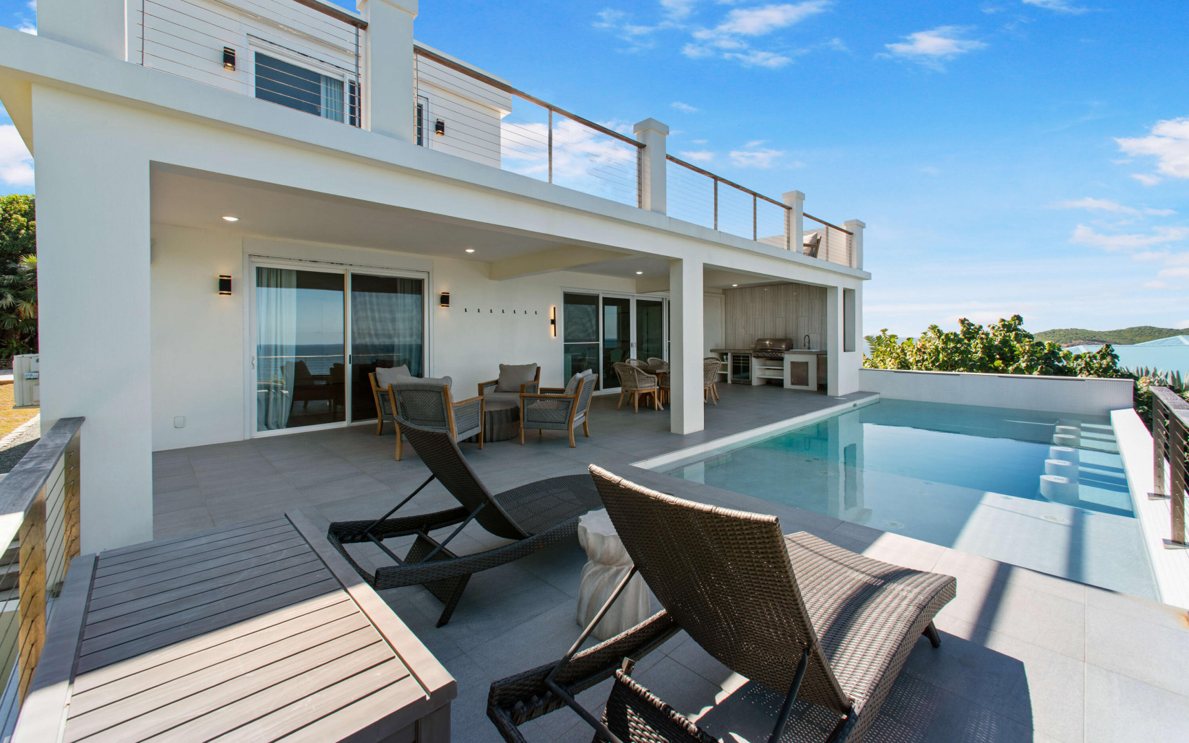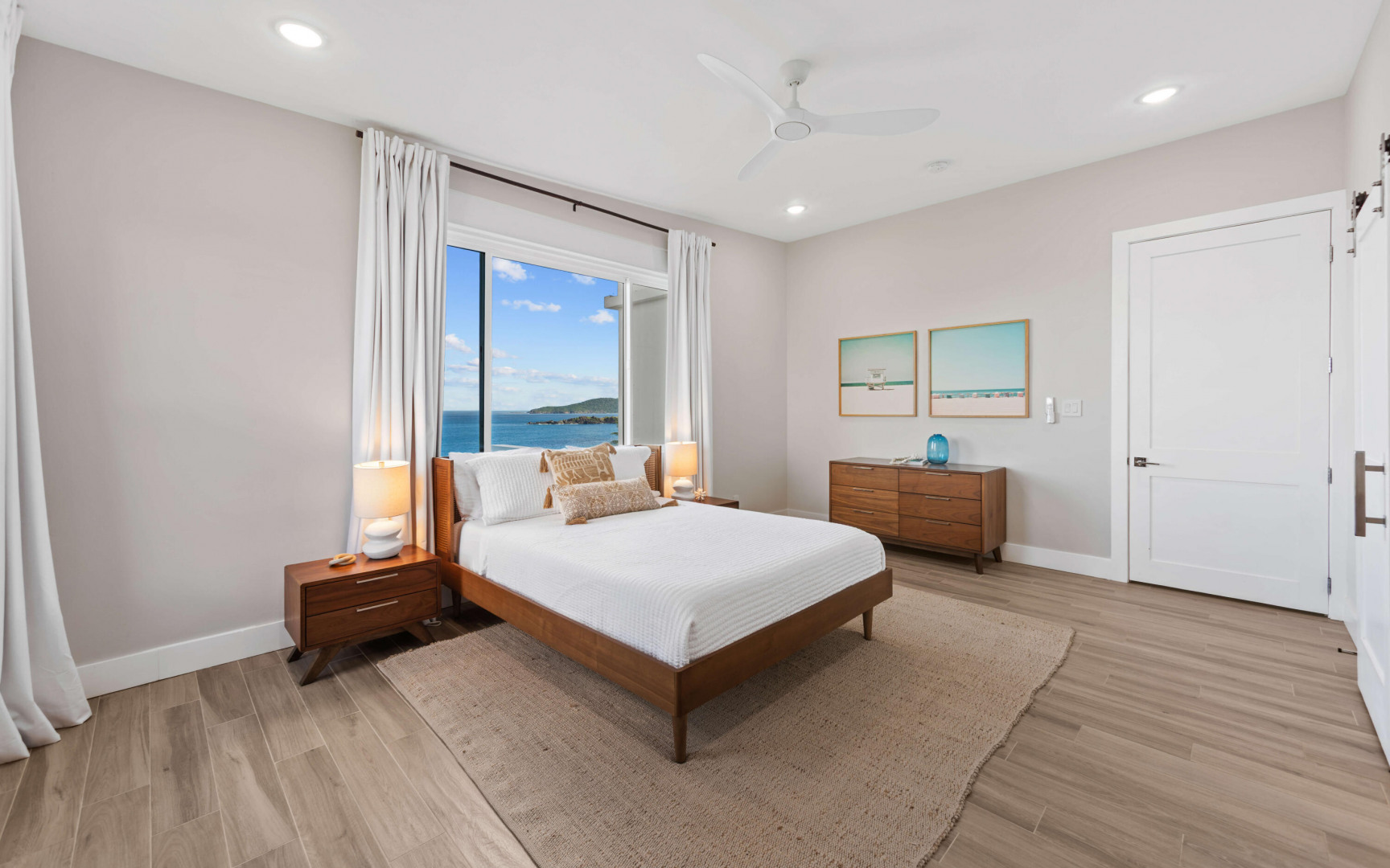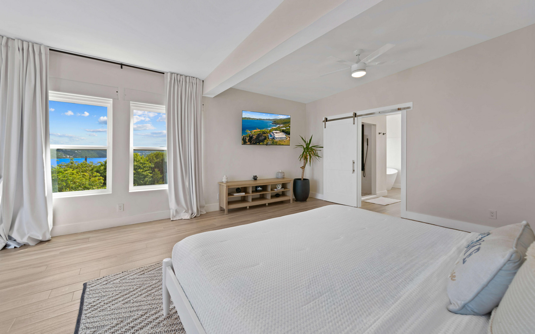 Stunning waterfront home on St. Thomas with panoramic ocean views and over 6,000 square feet of indoor-outdoor living. The main house offers 4 beds and 4.5 baths with more than 3,200 square feet inside. A separate 2-bed, 1-bath unit downstairs adds great flexibility for guests or long-term use. Built of all concrete with a concrete roof, full shutters, and a gated driveway, the home offers strength, privacy, and low-maintenance living. The great room and kitchen open to an unforgettable pool deck, with another private deck off the upper primary with exceptional views. Modern finishes, a backup generator, and the scale of new construction, without the long timelines or today's build costs, make this a standout waterfront property.