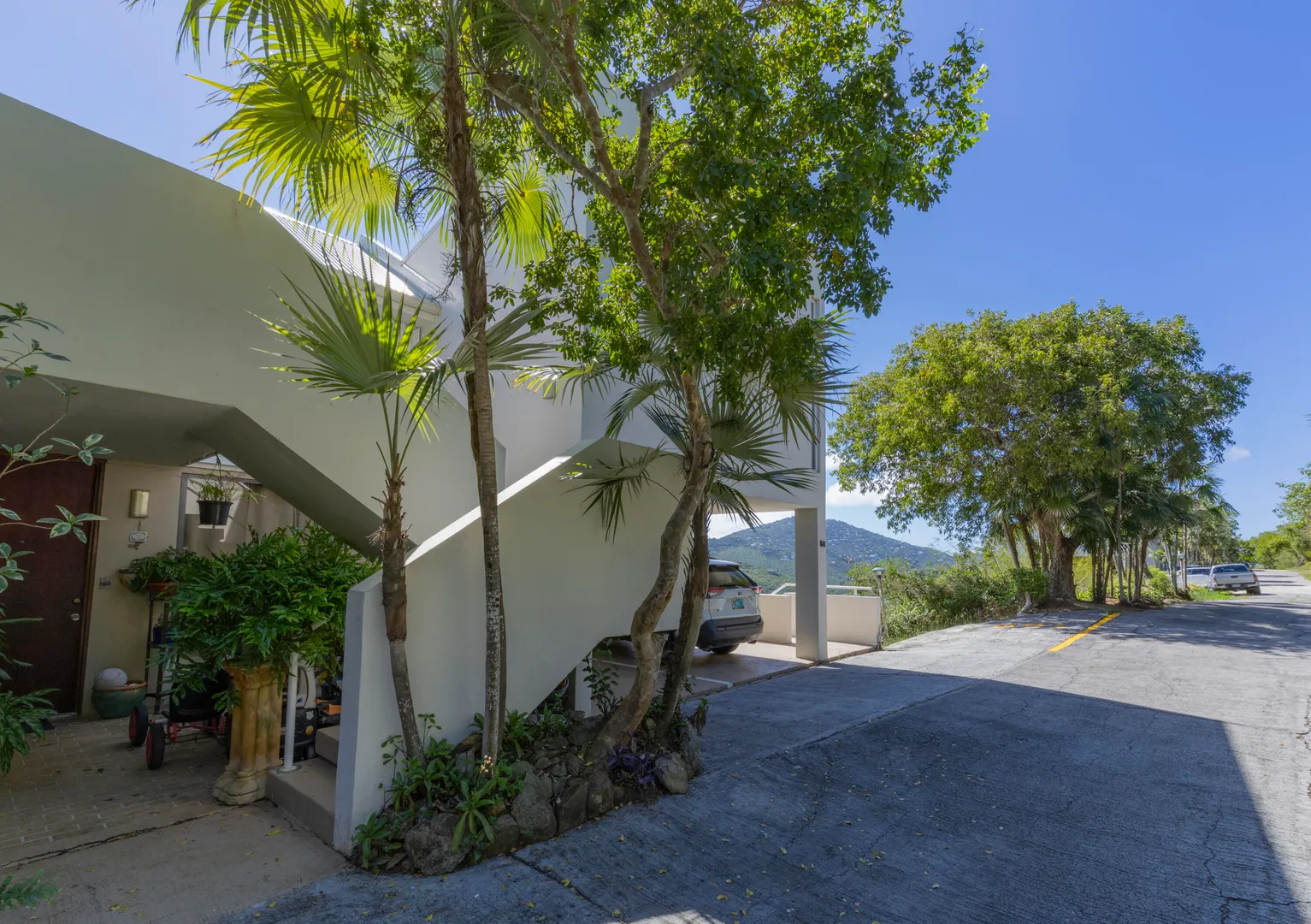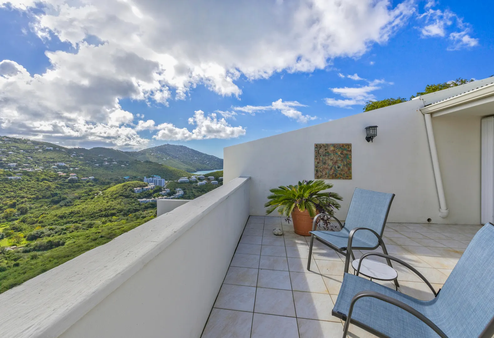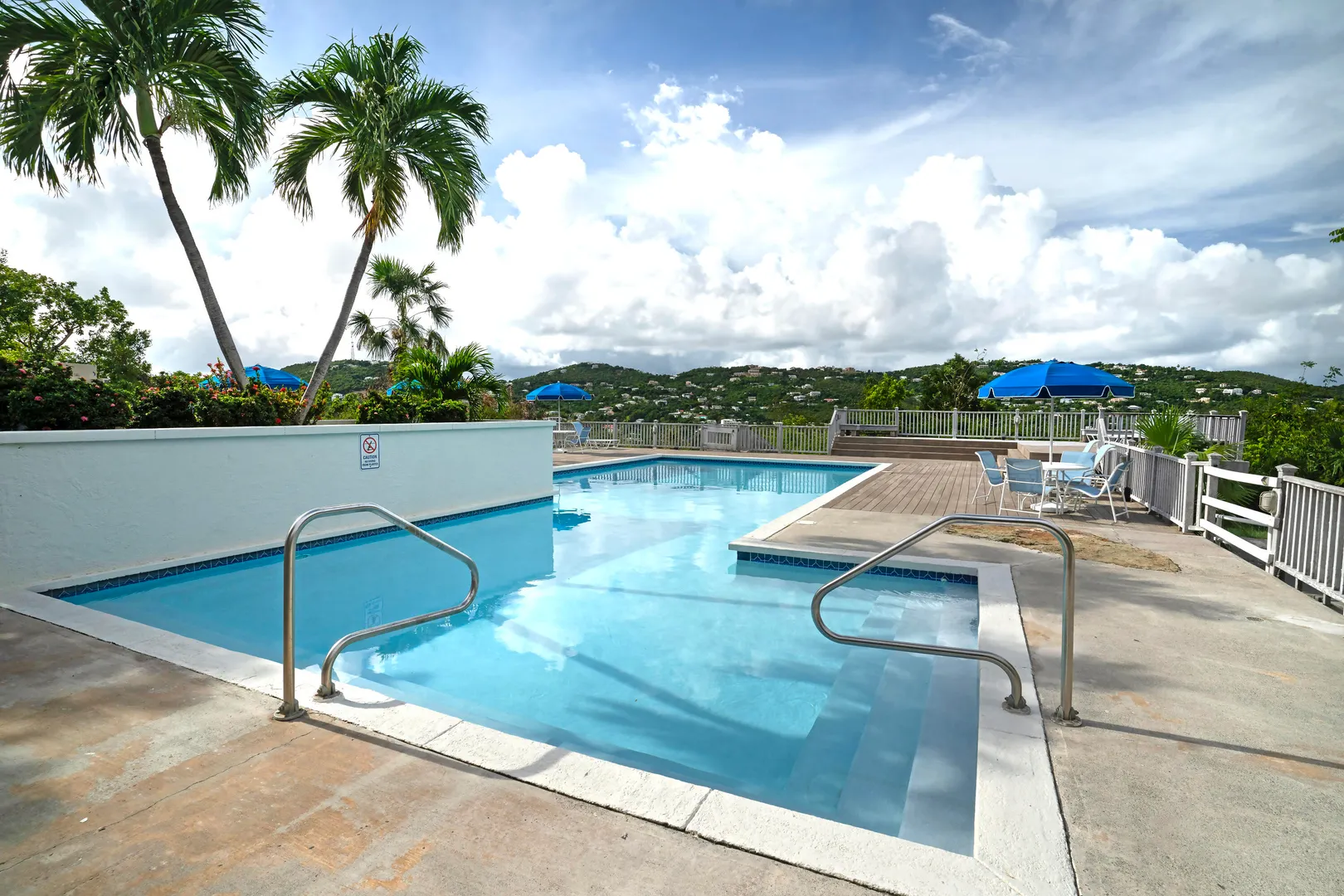This lovely, bright and airy upper level 2 bedroom, 2 bath condo offers spacious rooms within, a large deck unmatched in other complexes for outdoor living, vaulted ceilings and its just a short walk to the Sanderling Pool. It also offers highly prized features like all new impact glass sliders and windows throughout, new accordian shutters, fully rewired in 2018,, a 9 KW Kohler gas generator to cover you during power outages and a reserved space in the carport. The Mahogany Run community is centrally located on St. Thomas north shore and just 5 minute drive to renowned Magens Beach, the go to spot for those looking for a great place to walk or run, kayak, paddle board, swim or just kick back with a book.