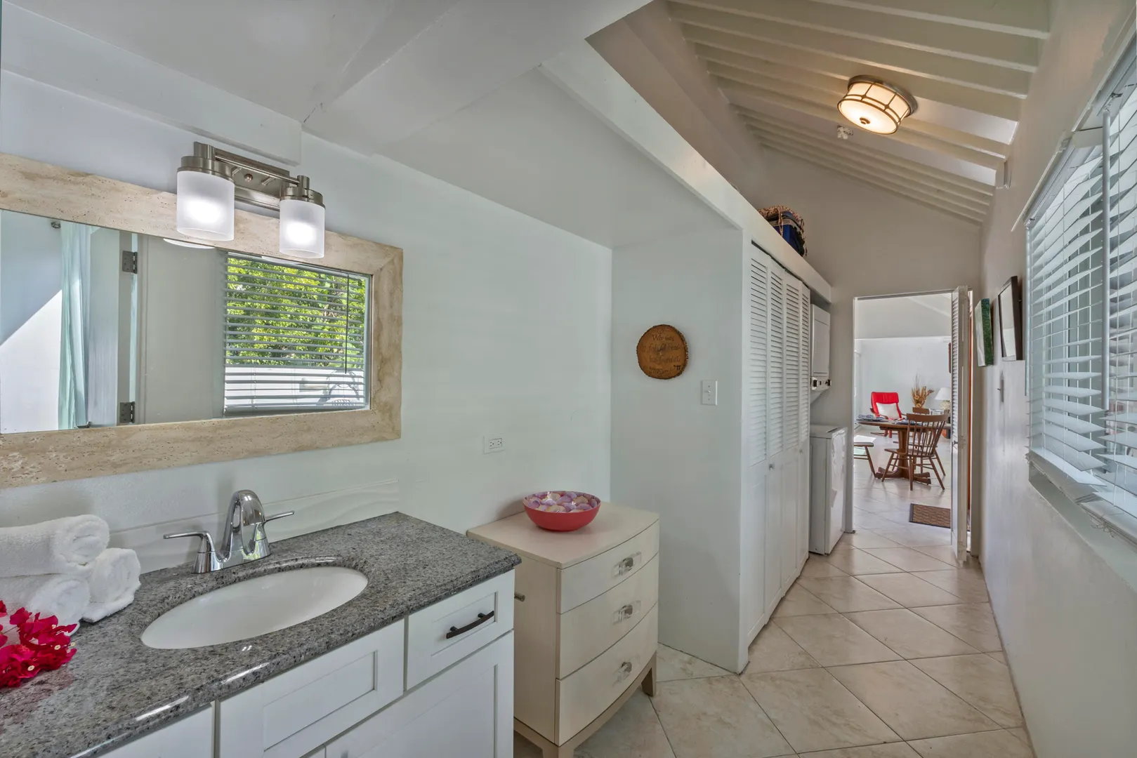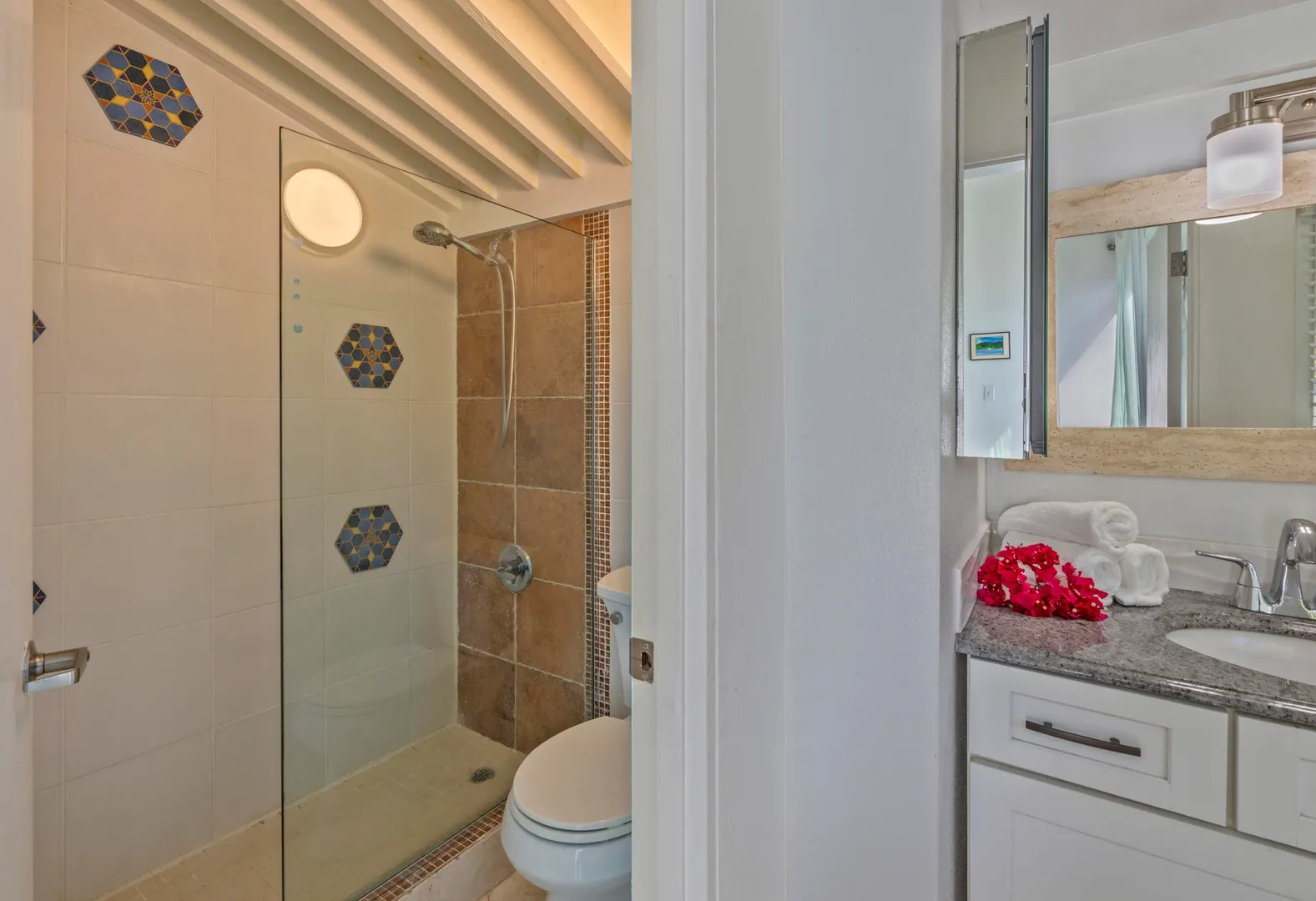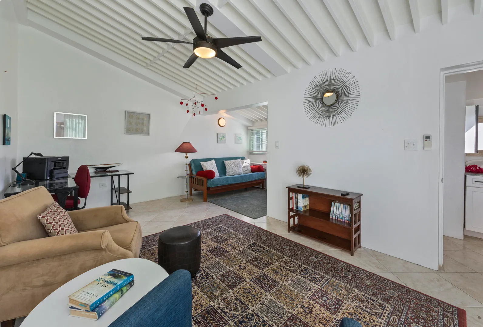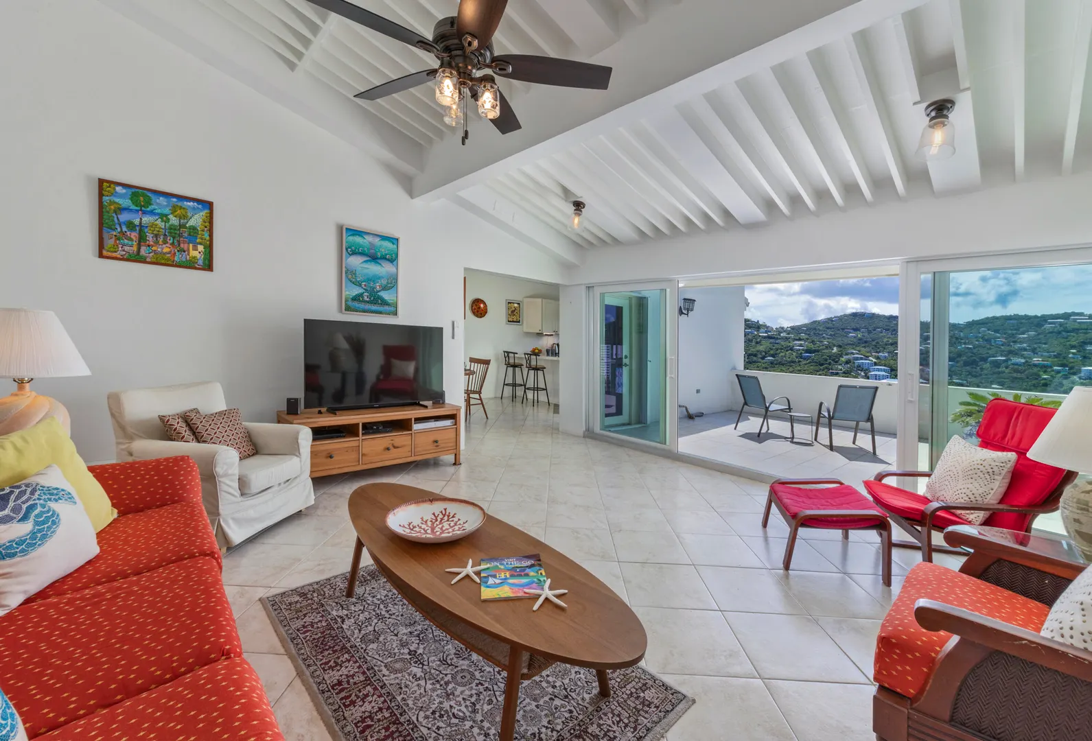 This lovely, bright and airy upper level 2 bedroom, 2 bath condo offers spacious rooms within, a large deck unmatched in other complexes for outdoor living, vaulted ceilings and its just a short walk to the Sanderling Pool. It also offers highly prized features like all new impact glass sliders and windows throughout, new accordian shutters, fully rewired in 2018,, a 9 KW Kohler gas generator to cover you during power outages and a reserved space in the carport. The Mahogany Run community is centrally located on St. Thomas north shore and just 5 minute drive to renowned Magens Beach, the go to spot for those looking for a great place to walk or run, kayak, paddle board, swim or just kick back with a book.