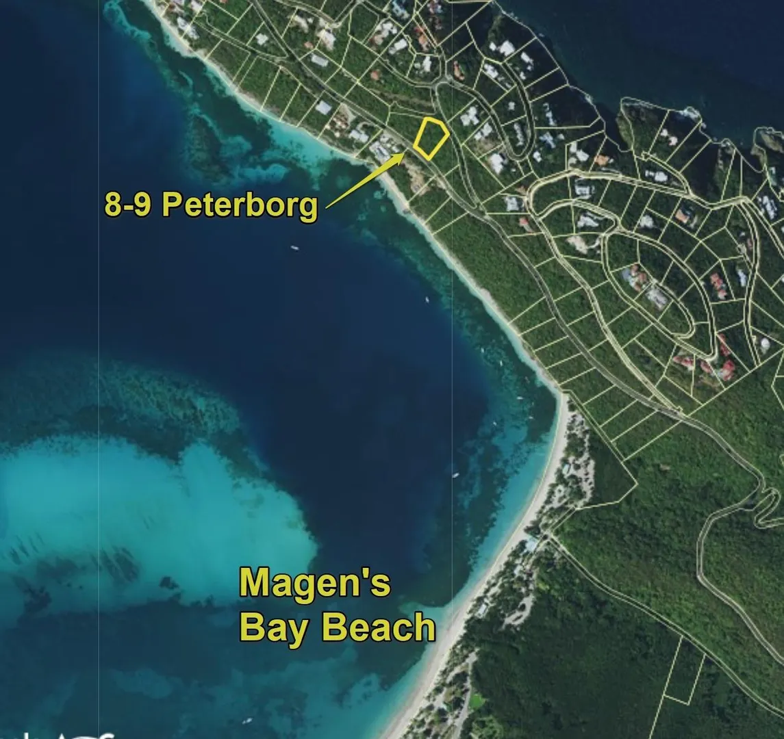 Beautiful views from this very accessible lot in sought after Peterborg neighborhood. Every room of your dream home can have gorgeous views of either Magen's Bay Beach, Inner and Outer Brass Islands OR BOTH!! Enjoy your morning coffee while gazing at the many different blues Magen's Bay has to offer. Lot is very build-able with access from 3 sides