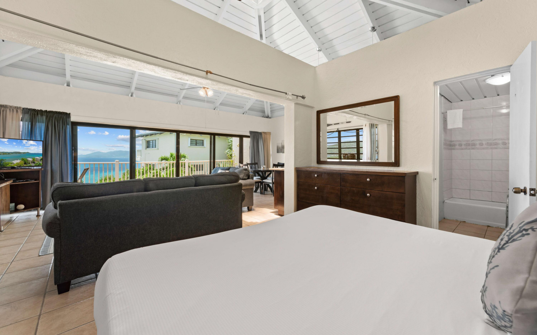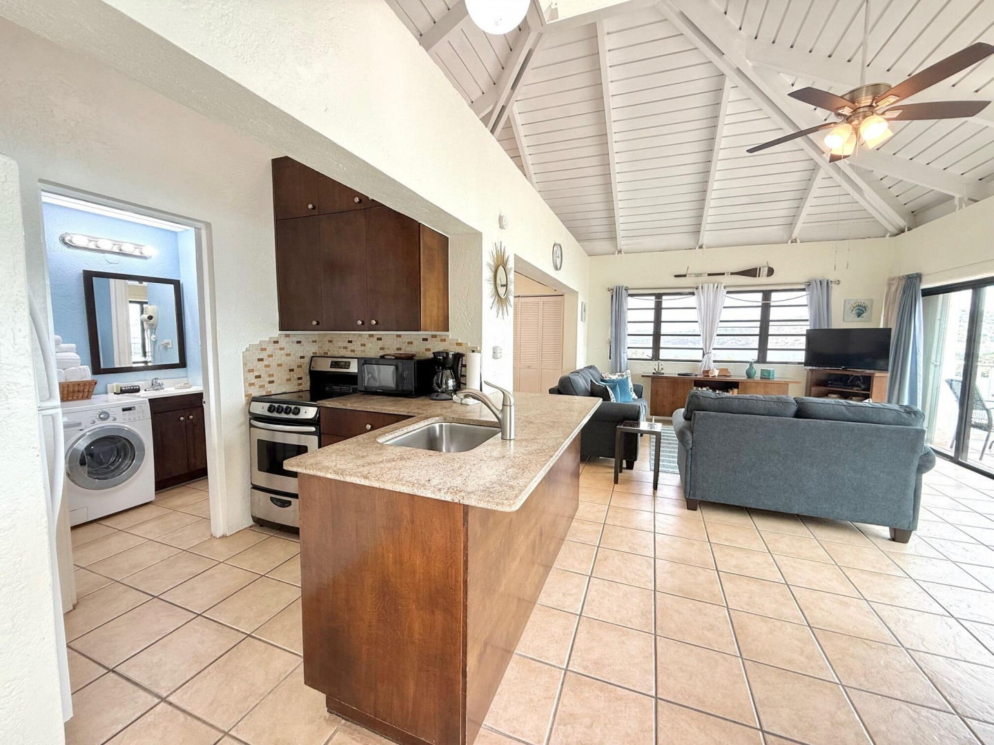 Welcome to your island escape! This beautifully maintained 1-bedroom, 1-bathroom condo at Point Pleasant Resort offers vaulted cathedral ceilings that create a bright and airy ambiance, compled with breathtaking views of the ocean, Water Bay and neighboring islands.Enjoy your morning coffee or evening cocktails from your private balcony, where the ocean breeze and tropical foliage offer a serene retreat. This unit features easy, near-level access to parking--no steep hill climbs--making coming and going a breeze. The spacious layout includes an open-concept living and dining area, a full kitchen, and a generously sized bedroom with ample storage.Point Pleasant Resort offers 24/7 security, 3 swimming pools, 2 on-site restaurants, a nature trail and access to a beautiful,hidden beach where you will find yourself alone at what feels like your very own private beach. Whether you're looking for a vacation rental investment, a full-time residence, or your private getaway, this unit checks all the boxes. Short-term rentals are allowed, and you can self-manage, use the popular in house rental program or use a local property manager.
