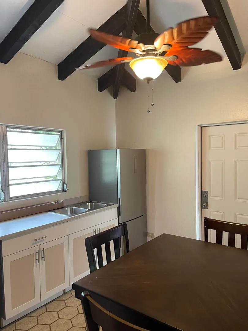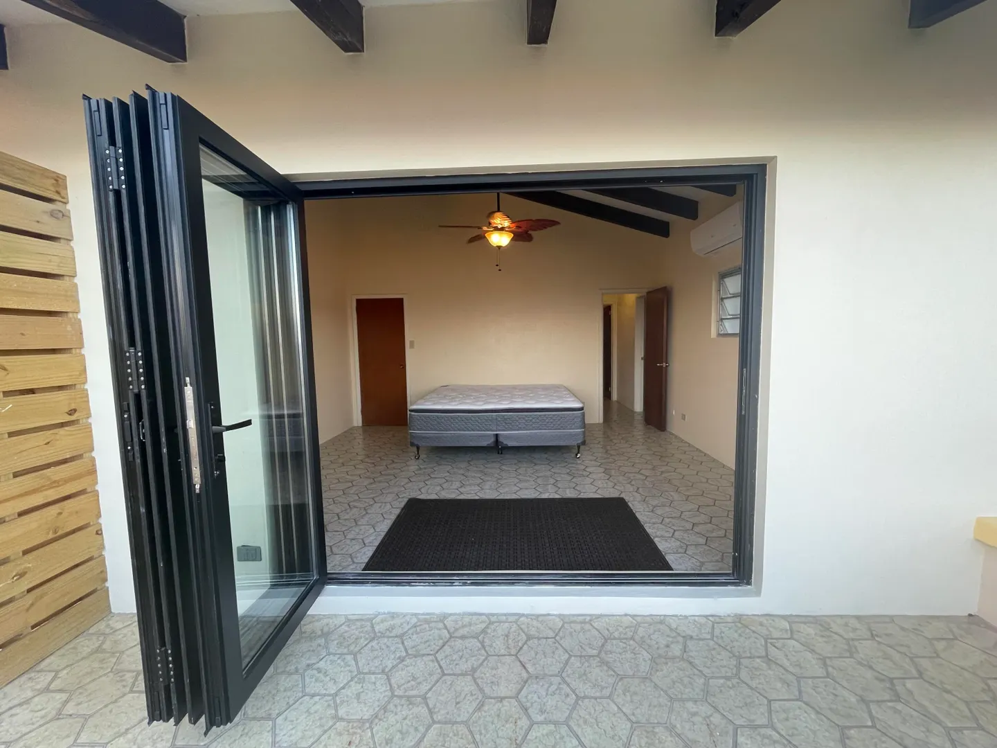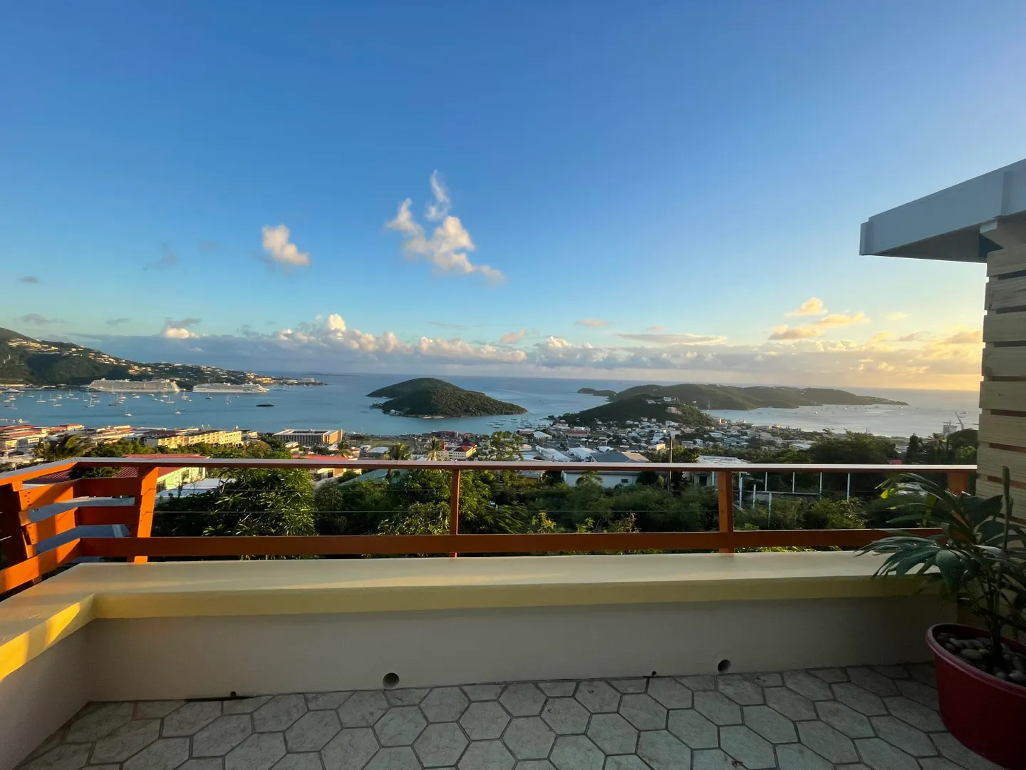 Available Dec 1. This upper level 1 bedroom 1 bath furnished apartment has expansive harbor views that extend from Havensight to Crown Bay with St. Croix on the horizon. Huge porch off the bedroom with brand new accordion sliding door and a good sized walk in closet. Bedroom also comes with a king sized bed and a 42'' TV. Brand new stainless steel appliances. The house is solar powered with battery backups to help mitigate the frequent power outage. Electricity is included in addition to wireless internet. There is a shared washer and dryer on property. Conveniently located in Solberg with a short commute to town, there is off-street parking for 1 vehicle behind the electric gate.