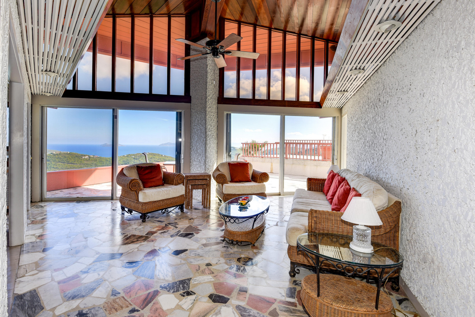 Live the dream in gated Estate Misgunst. You will have the most sought after amazing views of Magens Bay and Down Island. Sit on your porch and relax looking out over Magens Bay it is a view that is highly sought after. Located on St. Thomas lush Northside. You are only minutes from the beach and town! This wonderful home has 2X2 upstairs and a 1x1 downstairs. There are two cisterns 1) 20,000 gallon 2) 10,000 gallon. There is slight storm damage to the railing and some siding. Low $500 per year HOA fee.Sellers disclosed some fascia missing and a few deck railings have fallen off, but are on the deck for Buyer to reattached.
