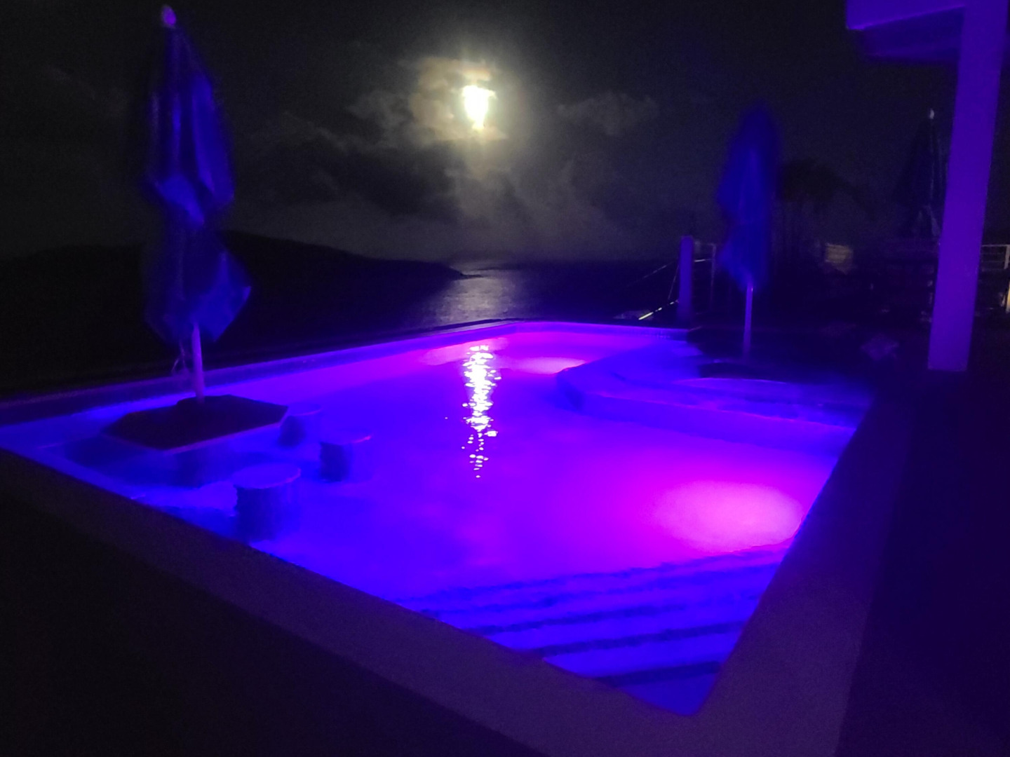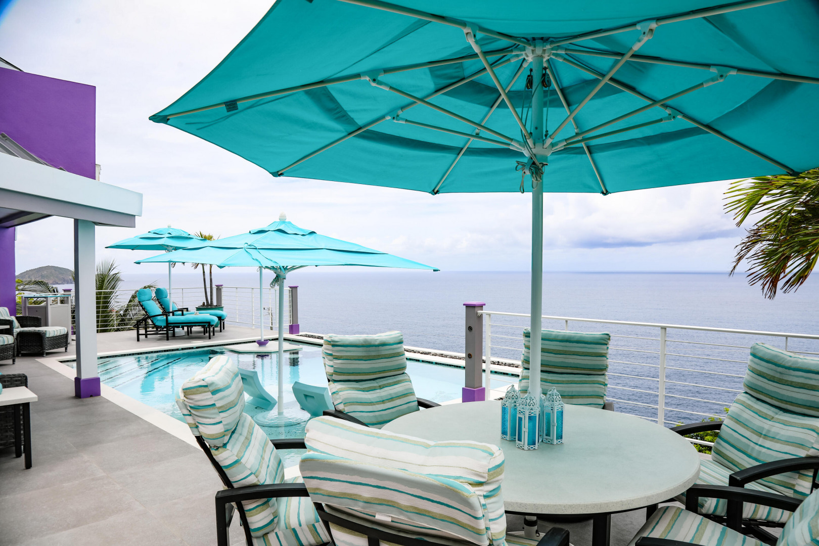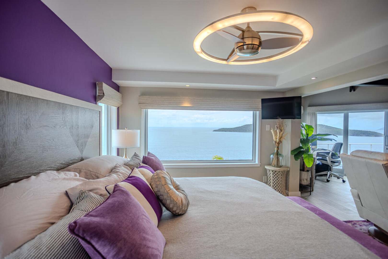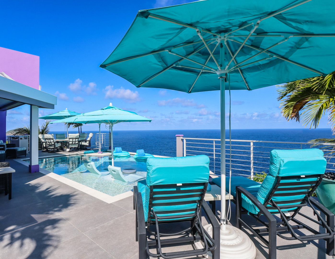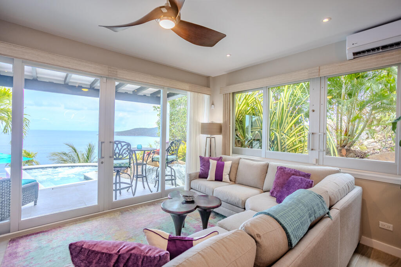 EXQUISITE! Purple Paradise is luxury living at its finest in prestigious Peterborg, St Thomas. Featuring 4 bedrooms, 4.5 bathrooms, 3 custom kitchens, 2 living rooms, and sweeping views of the beautiful ocean view pool and Atlantic Ocean, this custom home is designed with high-end premium amenities, fixtures and landscaping, with a gated/fenced driveway, 2 car garage, 94 solar panels, 6 Tesla batteries, 40KW diesel generator, impact windows, hot tub and heated pool with built-in table and bar stools. Two of the bedrooms are master suites, and the fully equipped gym (4th Bedroom) has a pool table, sauna, shower/bath and kitchen. The modern amenities, along with the professional lighting and tropical landscaping, showcase this property above others. See list of Special Features attached