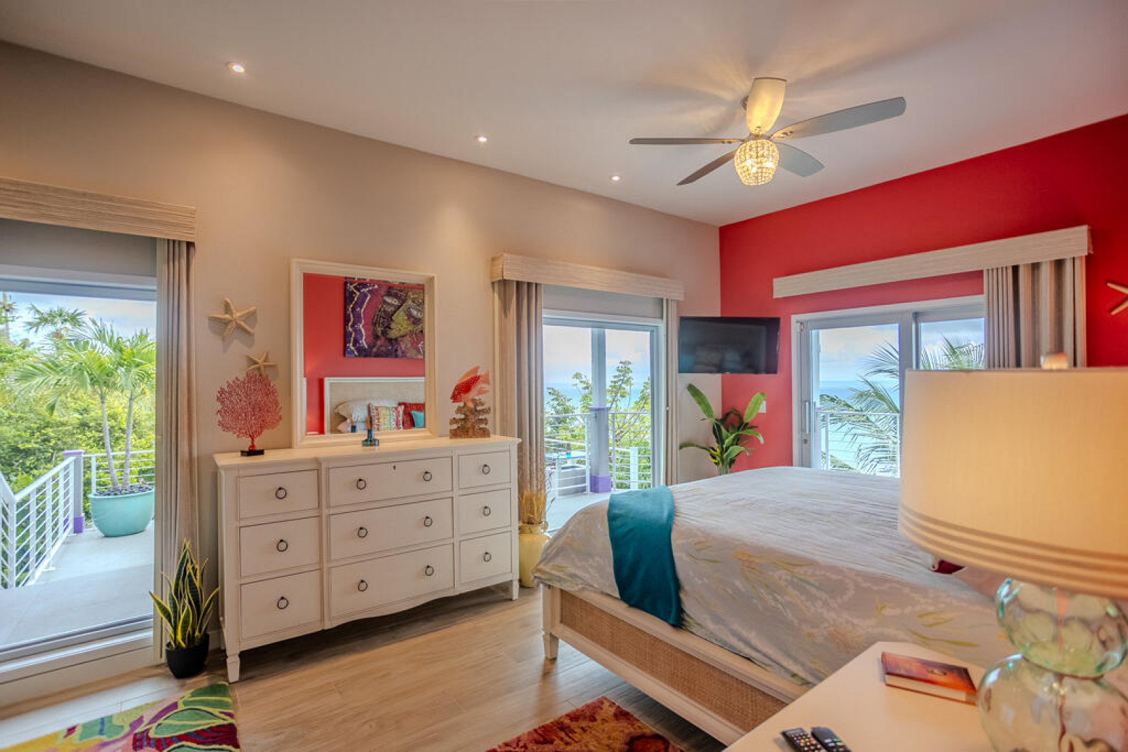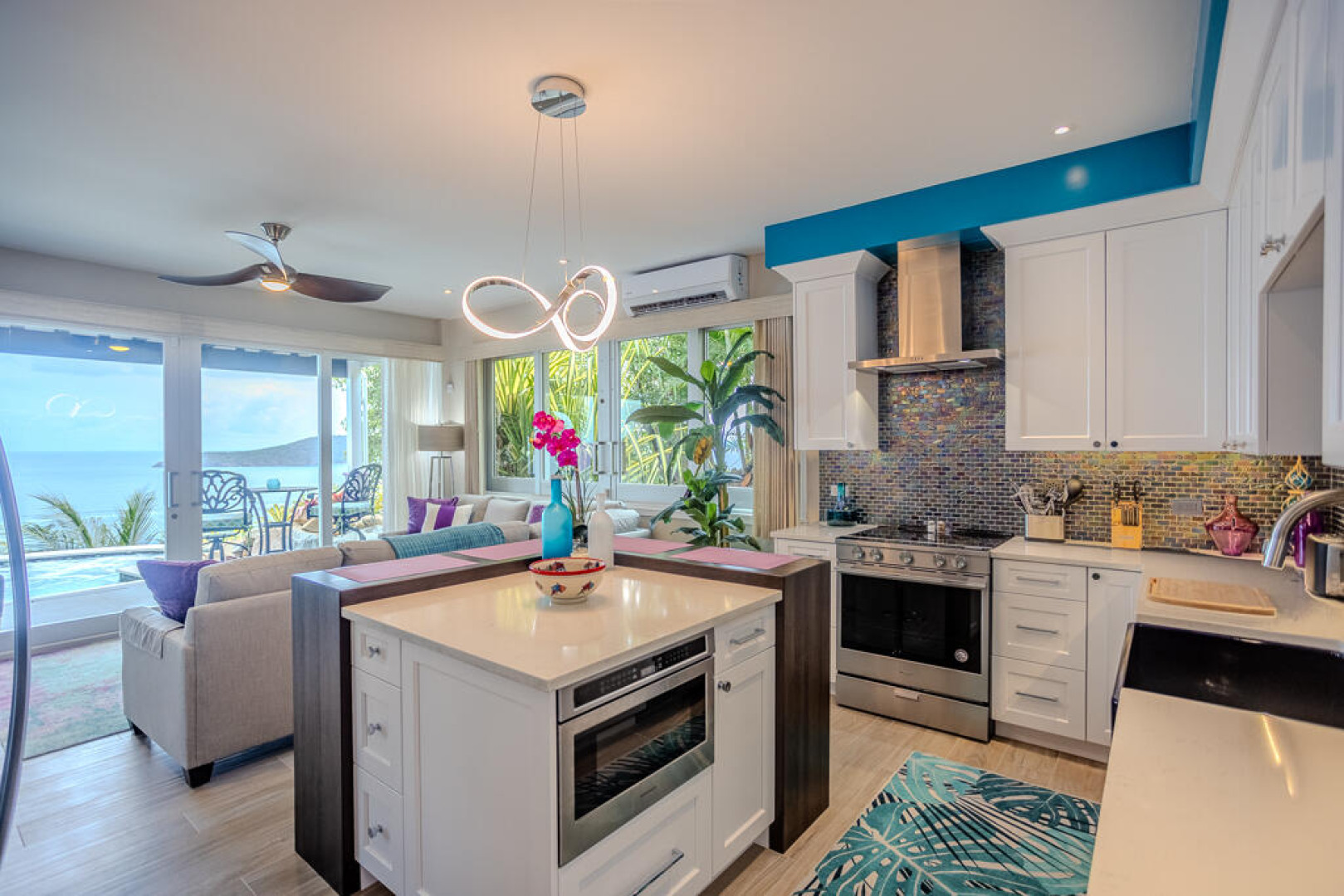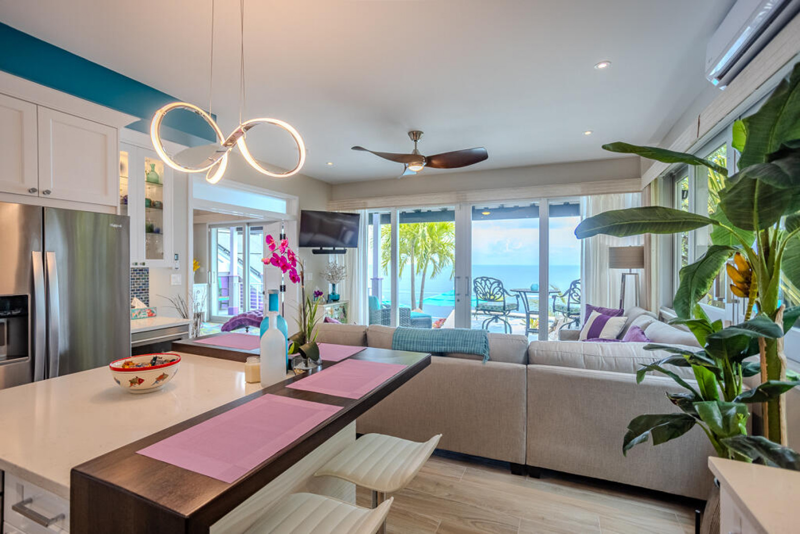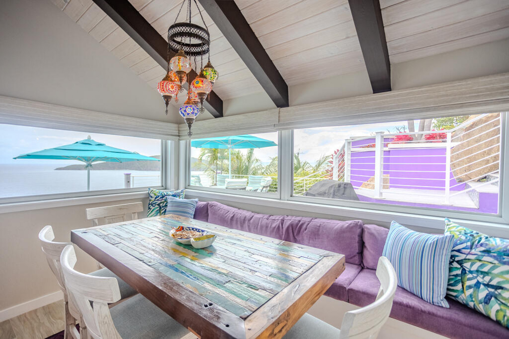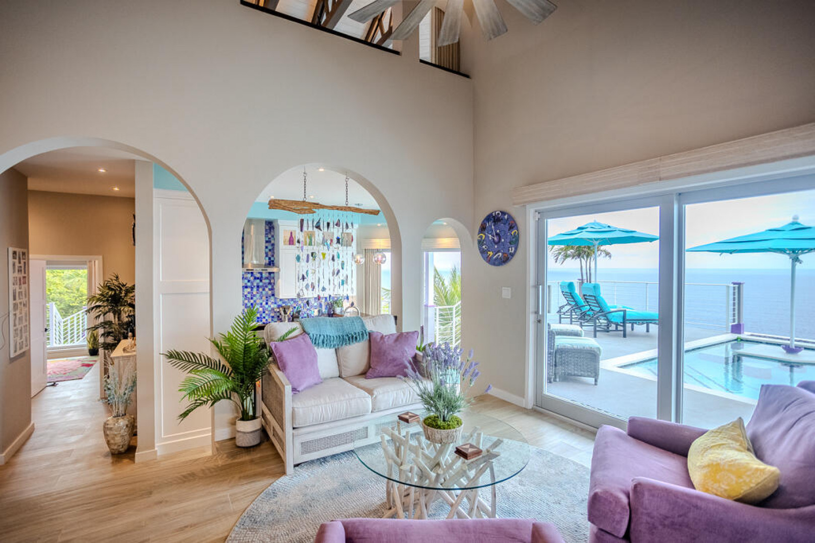 EXQUISITE! Purple Paradise is luxury living at its finest in prestigious Peterborg, St Thomas. Featuring 4 bedrooms, 4.5 bathrooms, 3 custom kitchens, 2 living rooms, and sweeping views of the beautiful ocean view pool and Atlantic Ocean, this custom home is designed with high-end premium amenities, fixtures and landscaping, with a gated/fenced driveway, 2 car garage, 94 solar panels, 6 Tesla batteries, 40KW diesel generator, impact windows, hot tub and heated pool with built-in table and bar stools. Two of the bedrooms are master suites, and the fully equipped gym (4th Bedroom) has a pool table, sauna, shower/bath and kitchen. The modern amenities, along with the professional lighting and tropical landscaping, showcase this property above others. See list of Special Features attached