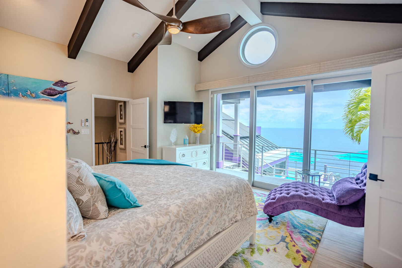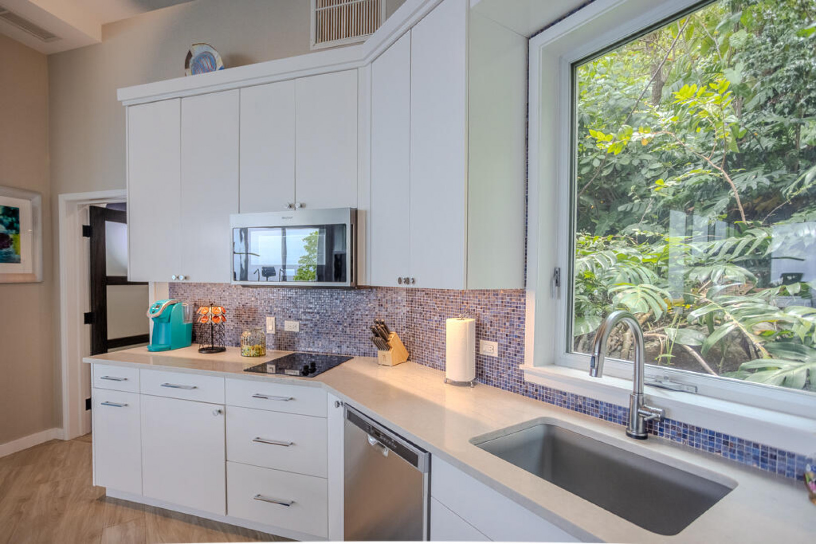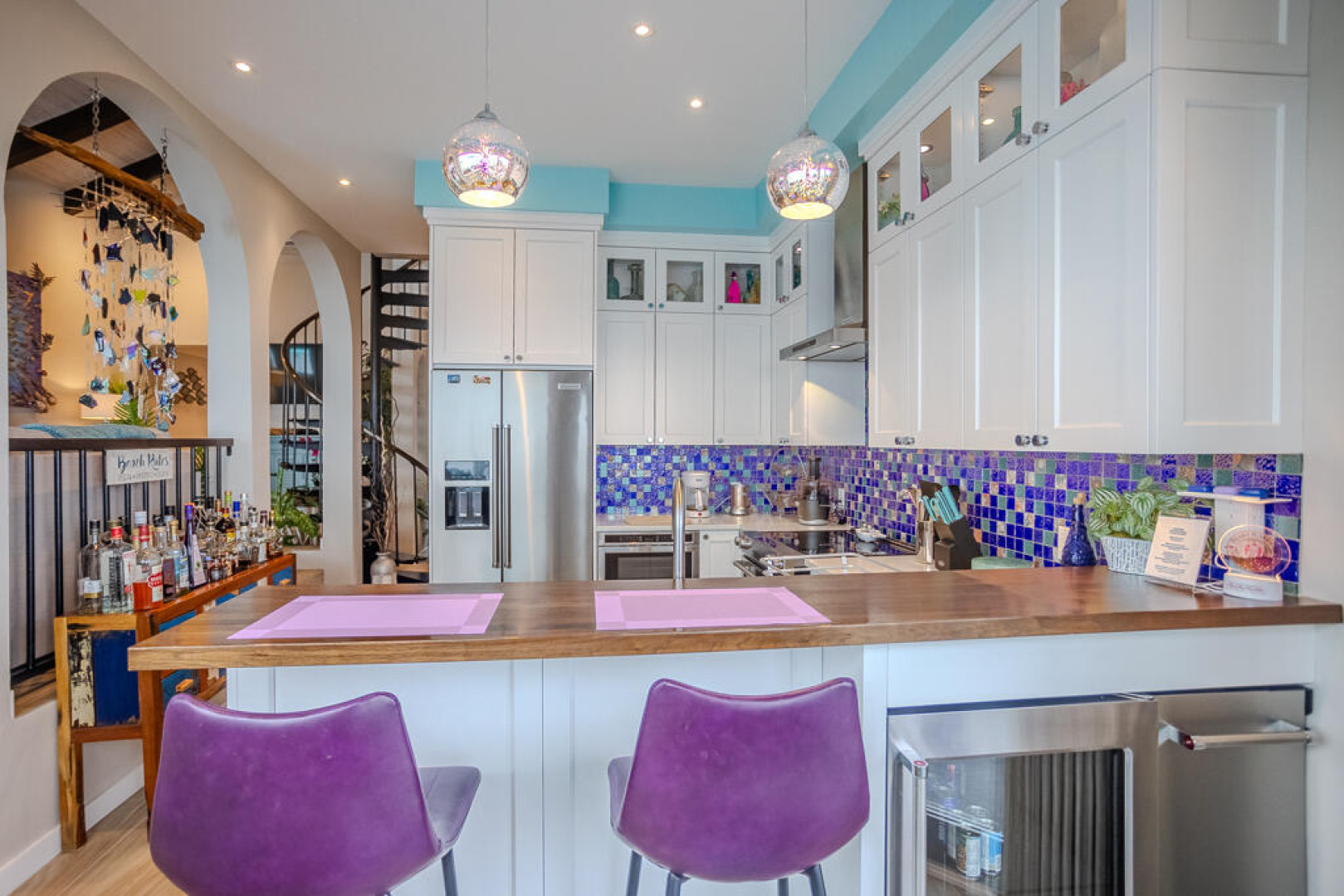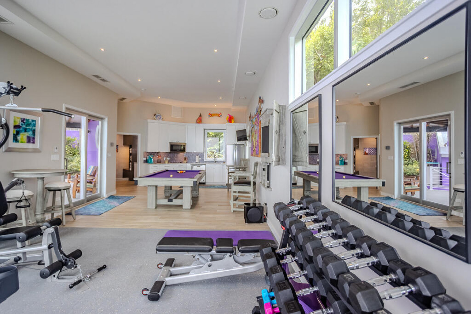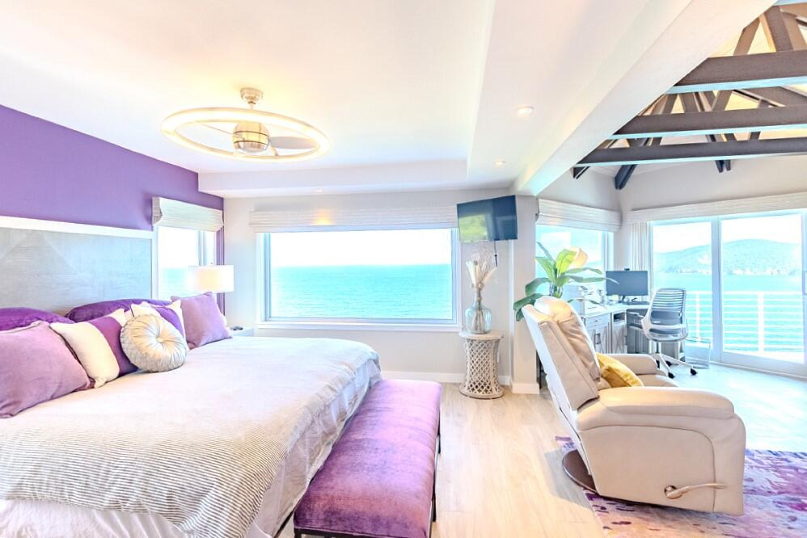 EXQUISITE! Purple Paradise is luxury living at its finest in prestigious Peterborg, St Thomas. Featuring 4 bedrooms, 4.5 bathrooms, 3 custom kitchens, 2 living rooms, and sweeping views of the beautiful ocean view pool and Atlantic Ocean, this custom home is designed with high-end premium amenities, fixtures and landscaping, with a gated/fenced driveway, 2 car garage, 94 solar panels, 6 Tesla batteries, 40KW diesel generator, impact windows, hot tub and heated pool with built-in table and bar stools. Two of the bedrooms are master suites, and the fully equipped gym (4th Bedroom) has a pool table, sauna, shower/bath and kitchen. The modern amenities, along with the professional lighting and tropical landscaping, showcase this property above others. See list of Special Features attached